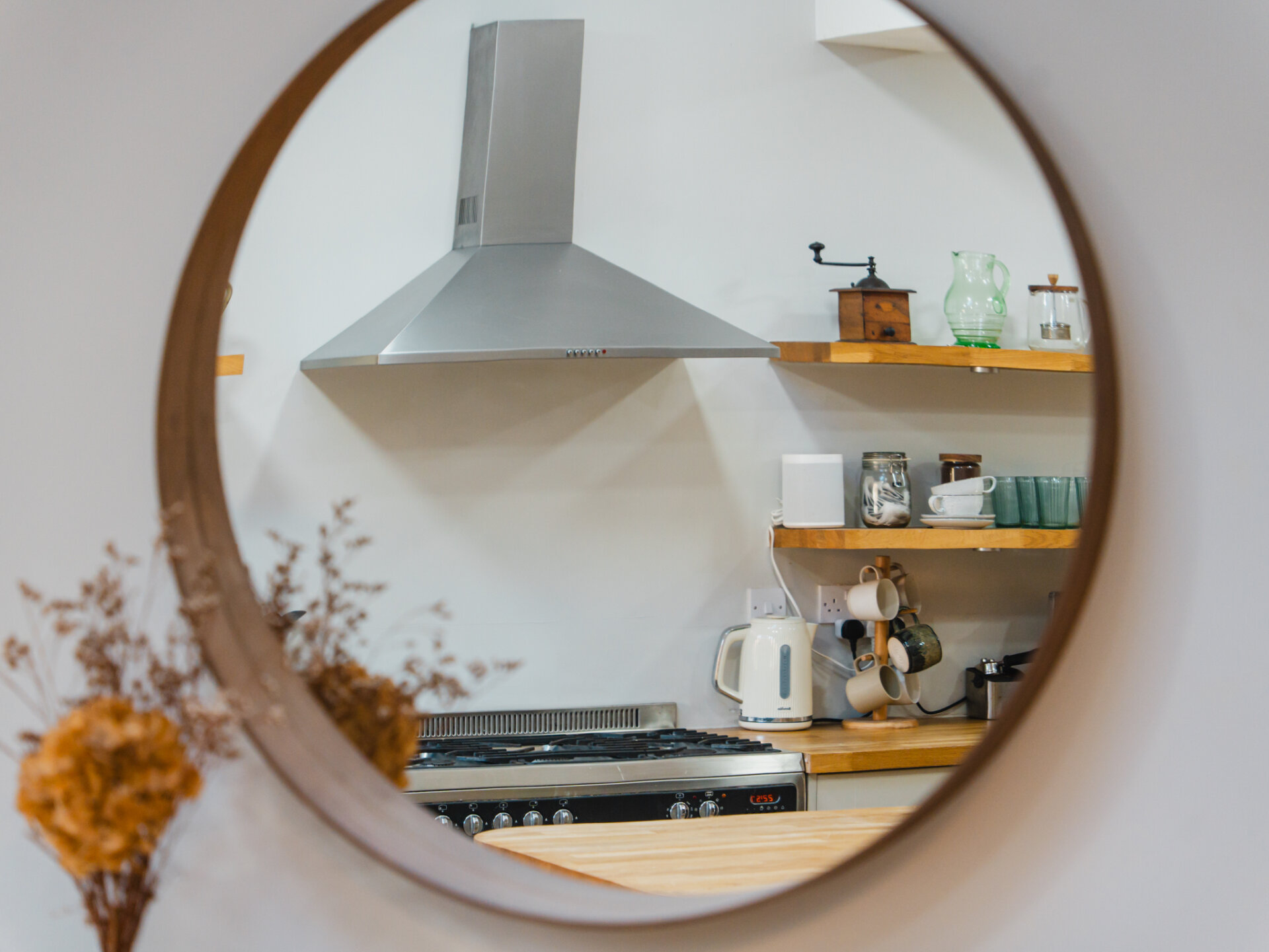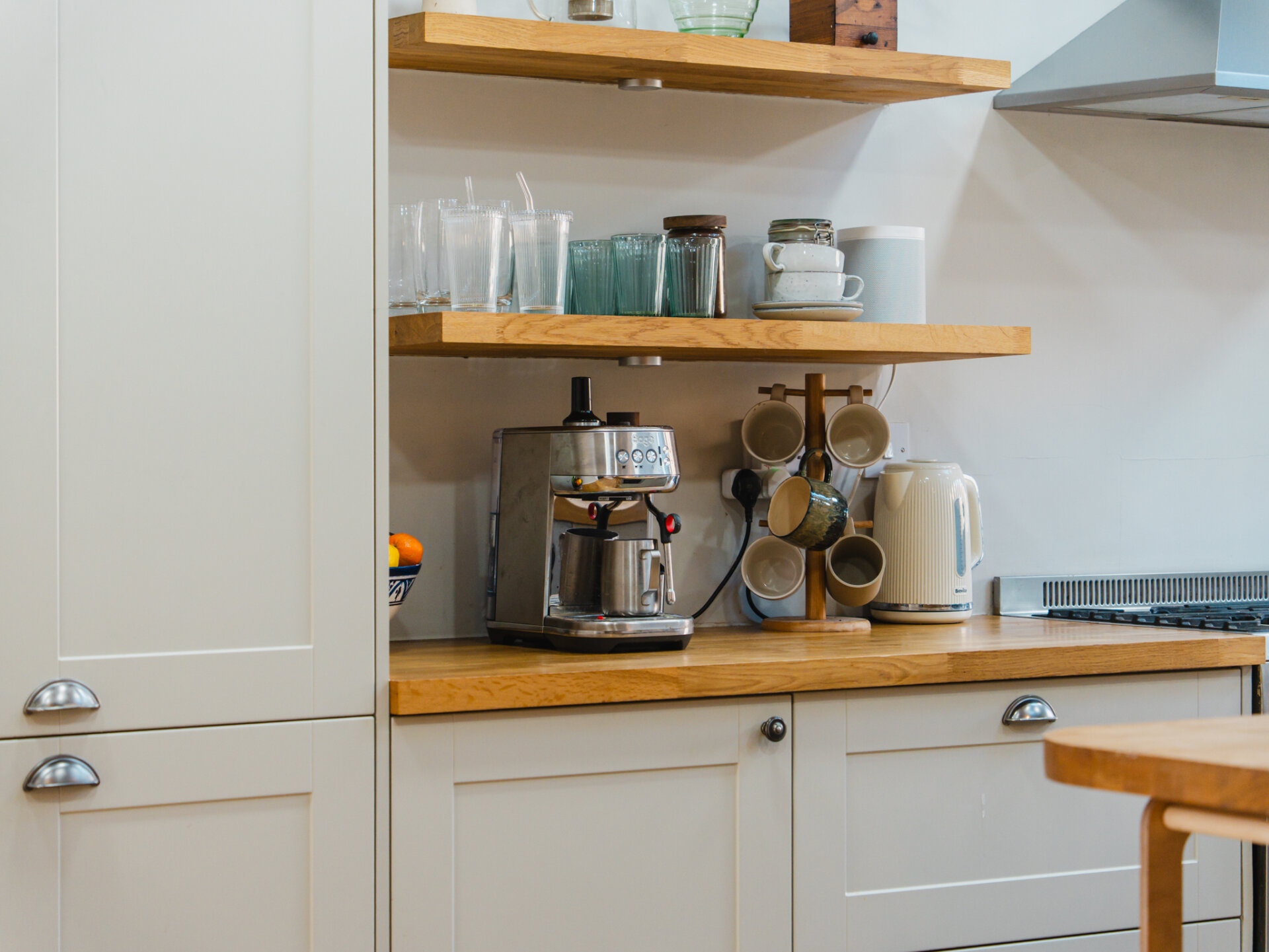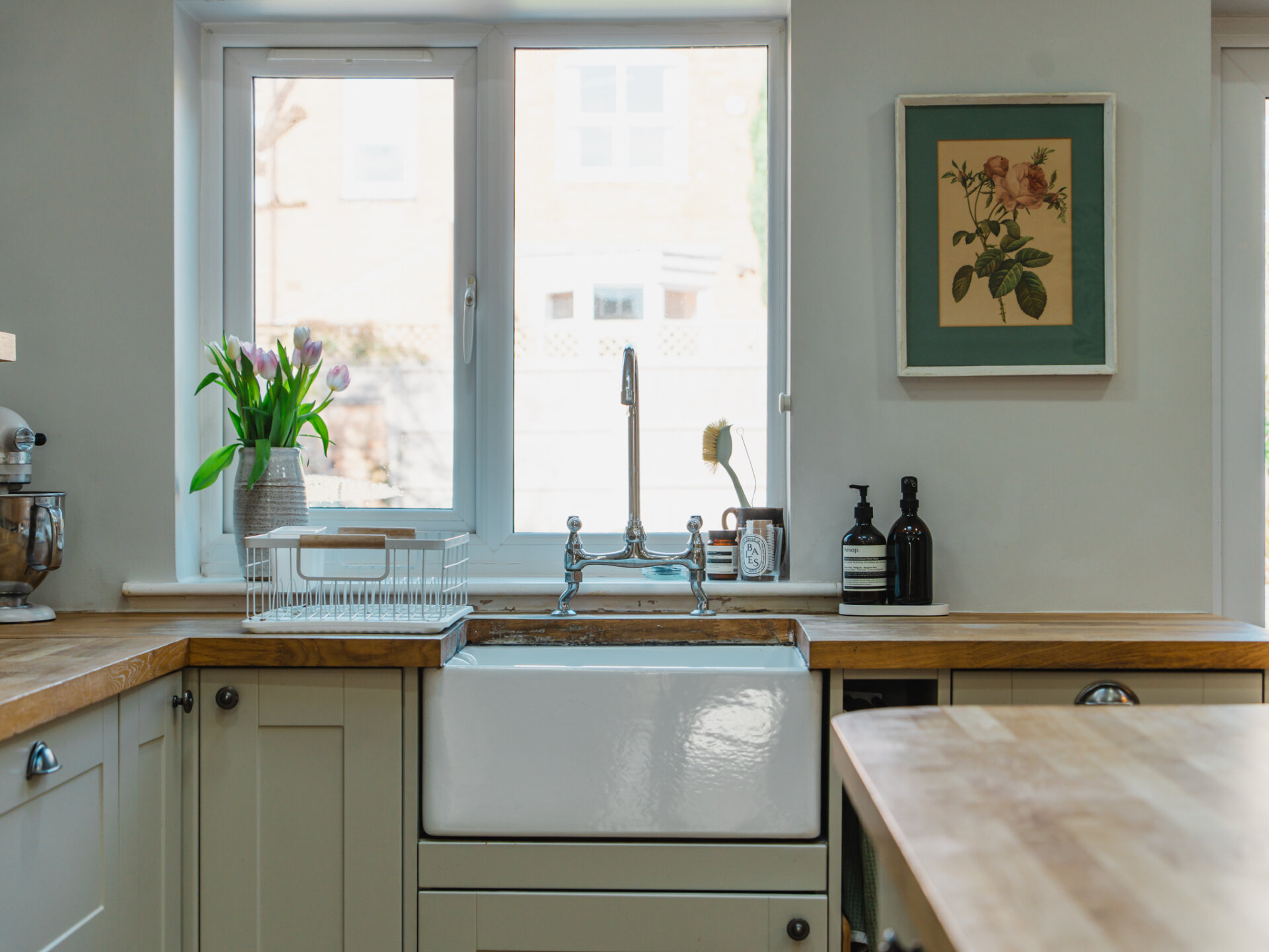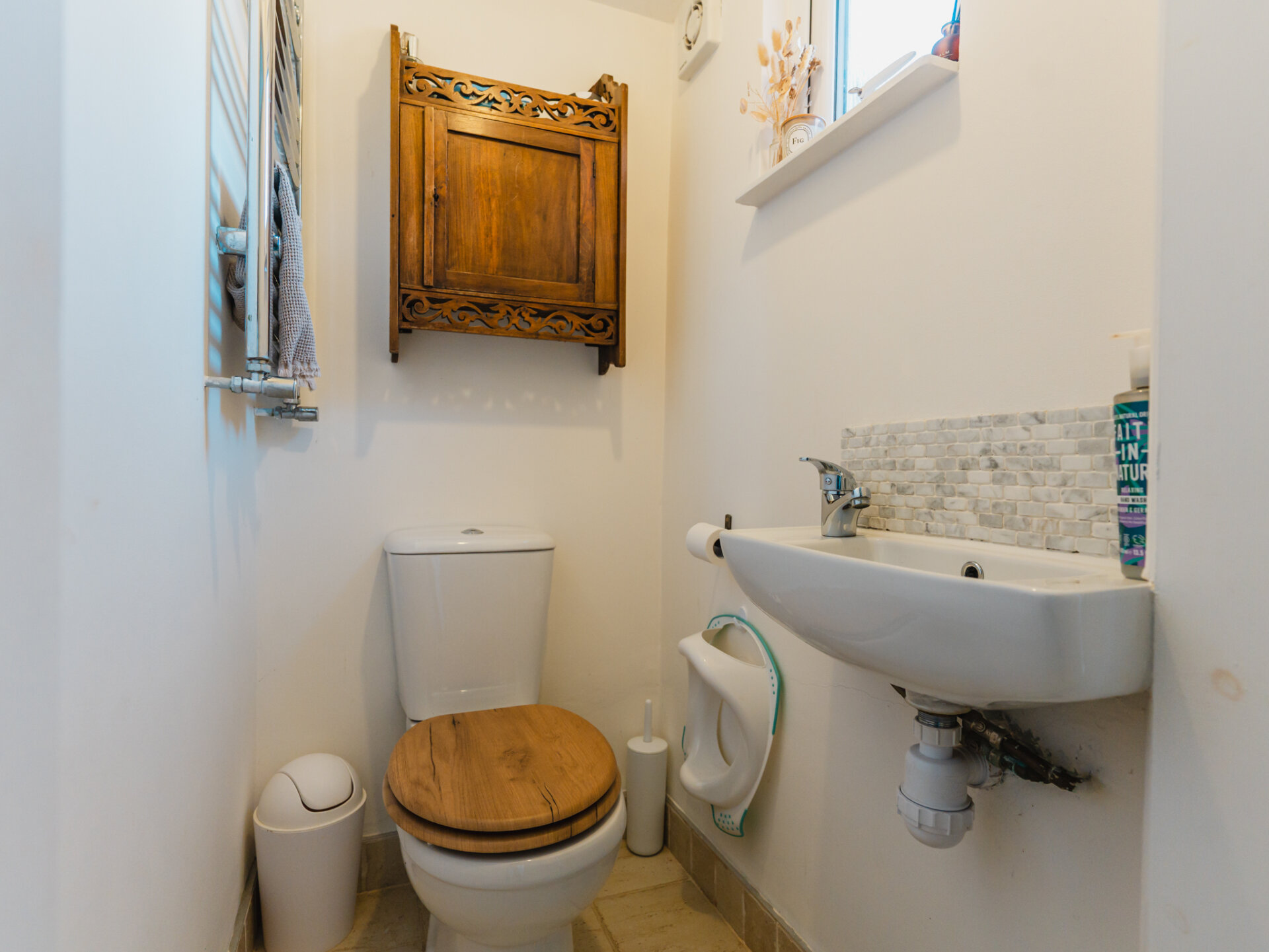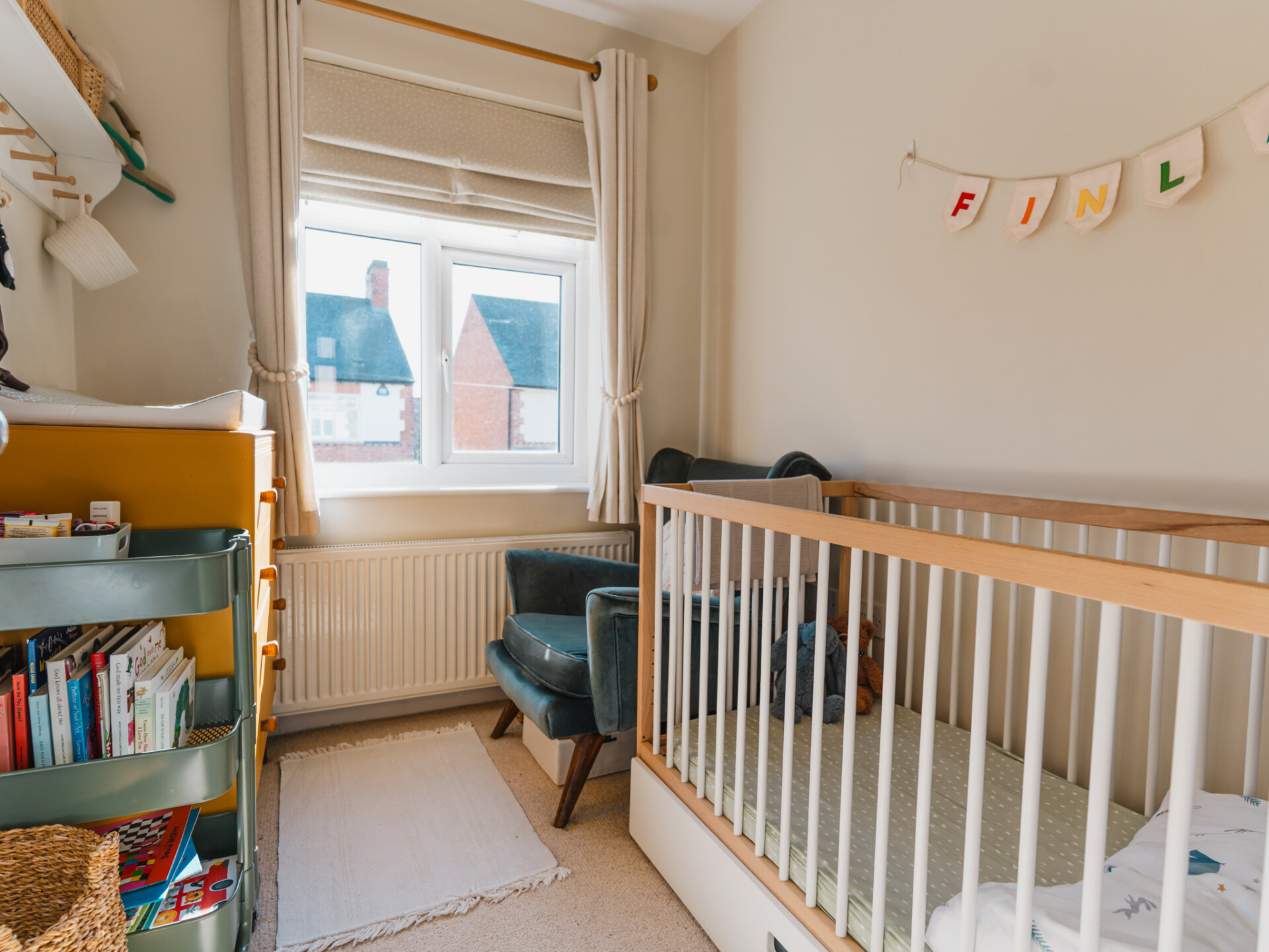 A natural stone pathway leads to a composite leaded stained-glass front door, opening into a spacious entrance hall with Victorian-inspired tiling. The principal reception at the front features a bay window with bespoke shutter-blinds, providing immediate privacy. Built-in shelving and storage occupy the alcoves on either side of a newly fitted log-burner fireplace, creating a dramatic focal point that complements the tasteful colour palette of off-grey and teal blue. To the rear of the ground-floor accommodation, and arguably the standout feature of this fabulous home, is a beautifully presented open-plan breakfast kitchen, featuring hints of teal. Designed for both style and functionality while enabling a sociable space ideal for entertaining, the kitchen includes twin French doors that open to the rear, framing leafy views onto the north-facing garden and paired with twin skylights for an abundance of natural light. The kitchen boasts a Belfast sink with a mixer tap, a range of base units with pan storage, and a tall pull-out larder cupboard, all finished with sleek oak worktops. A matching island unit incorporates additional storage and a built-in microwave. Integrated appliances include a stainless steel range cooker, fridge, freezer, and dishwasher. Additional features include oak floating display shelves with down-lighters and modern oak flooring throughout. A conveniently positioned utility room offers uPVC doors to the rear garden and internal access to the garage. It includes plumbing for a washing machine, space for a condensing dryer, an oak worktop, a wall-mounted unit, a tall laundry/storage cupboard, and a wall-mounted gas boiler, all complemented by a limestone-style tiled floor. A downstairs WC completes the ground-floor accommodation on offer.