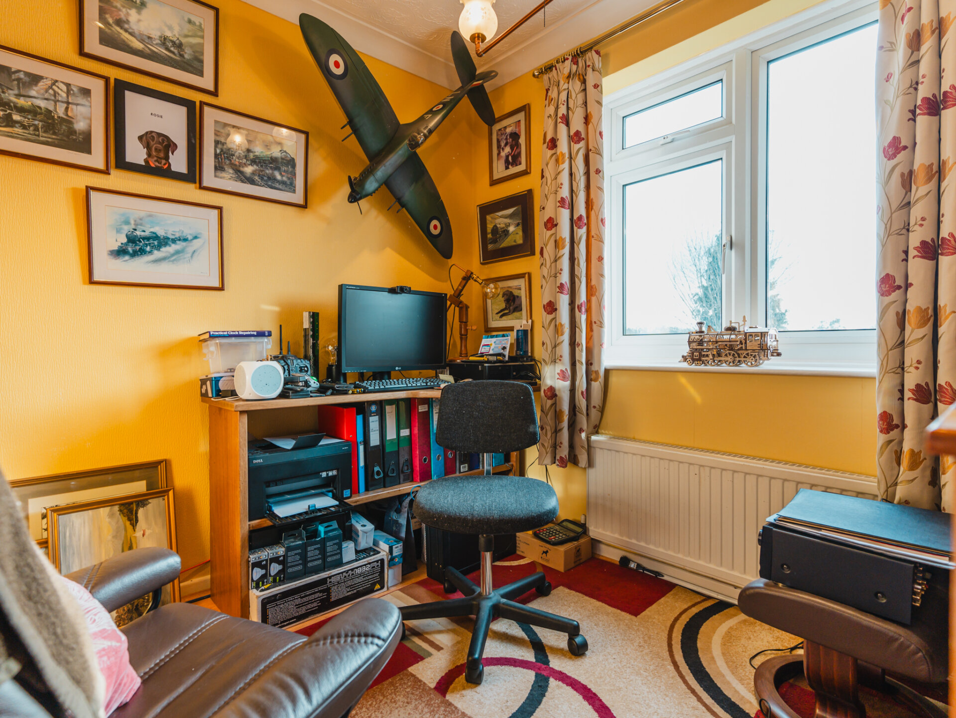 The first floor is equally impressive, with a spacious landing providing access to three well-presented bedrooms. Two of these are generously sized doubles, both benefitting from unspoiled views over the adjoining fields. The third bedroom, a versatile single, is currently utilised as a home office. All bedrooms are serviced by a well maintained three-piece family bathroom, completing the accommodation.