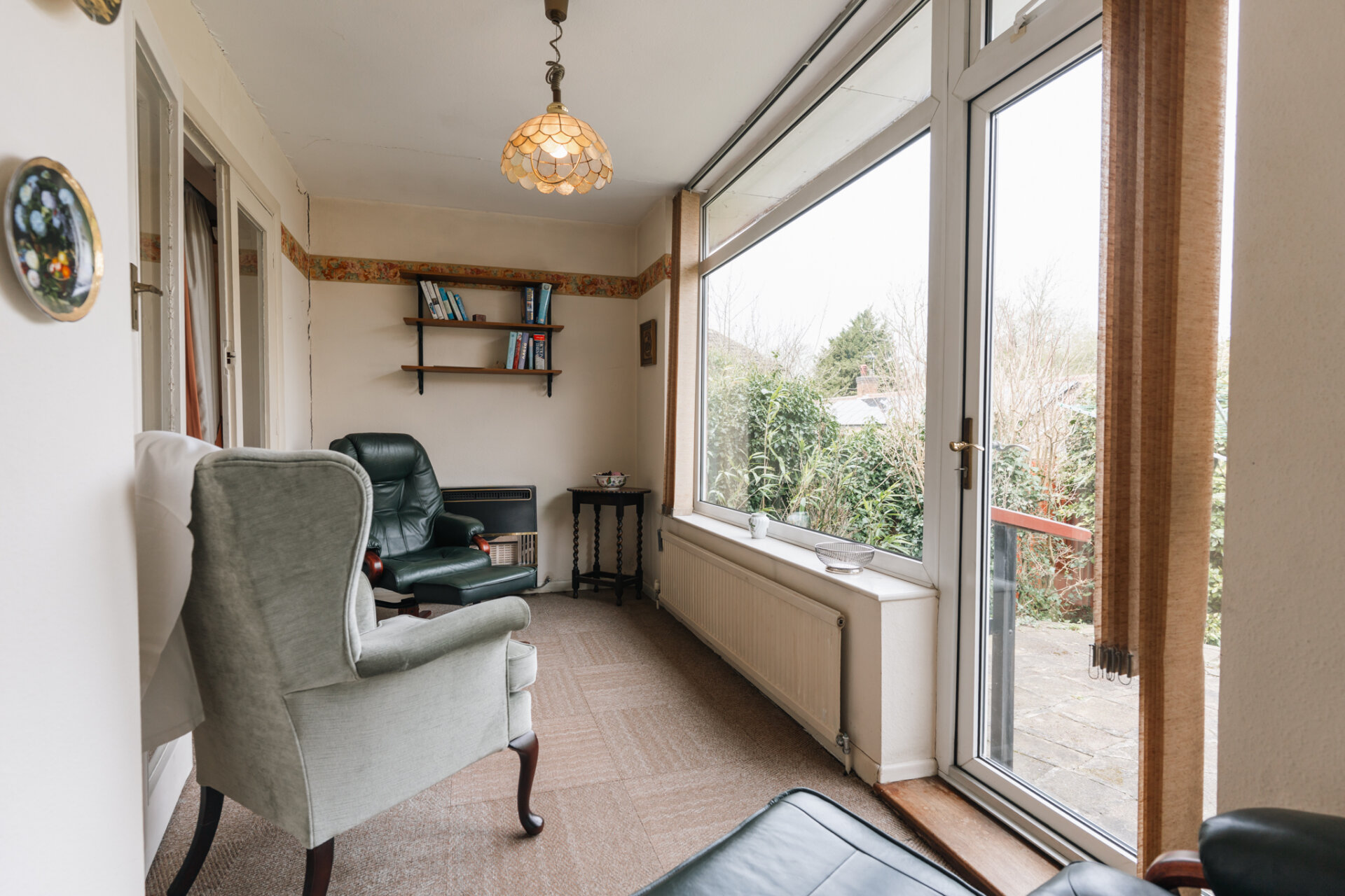 The property has been extended over time, with a two-storey addition to the front dating back to the 1960s/70s, creating a useful entrance porch and ground floor WC, while also increasing the size of the third bedroom above. To the rear, a garden room extension adds further living space and provides a direct connection to the garden.