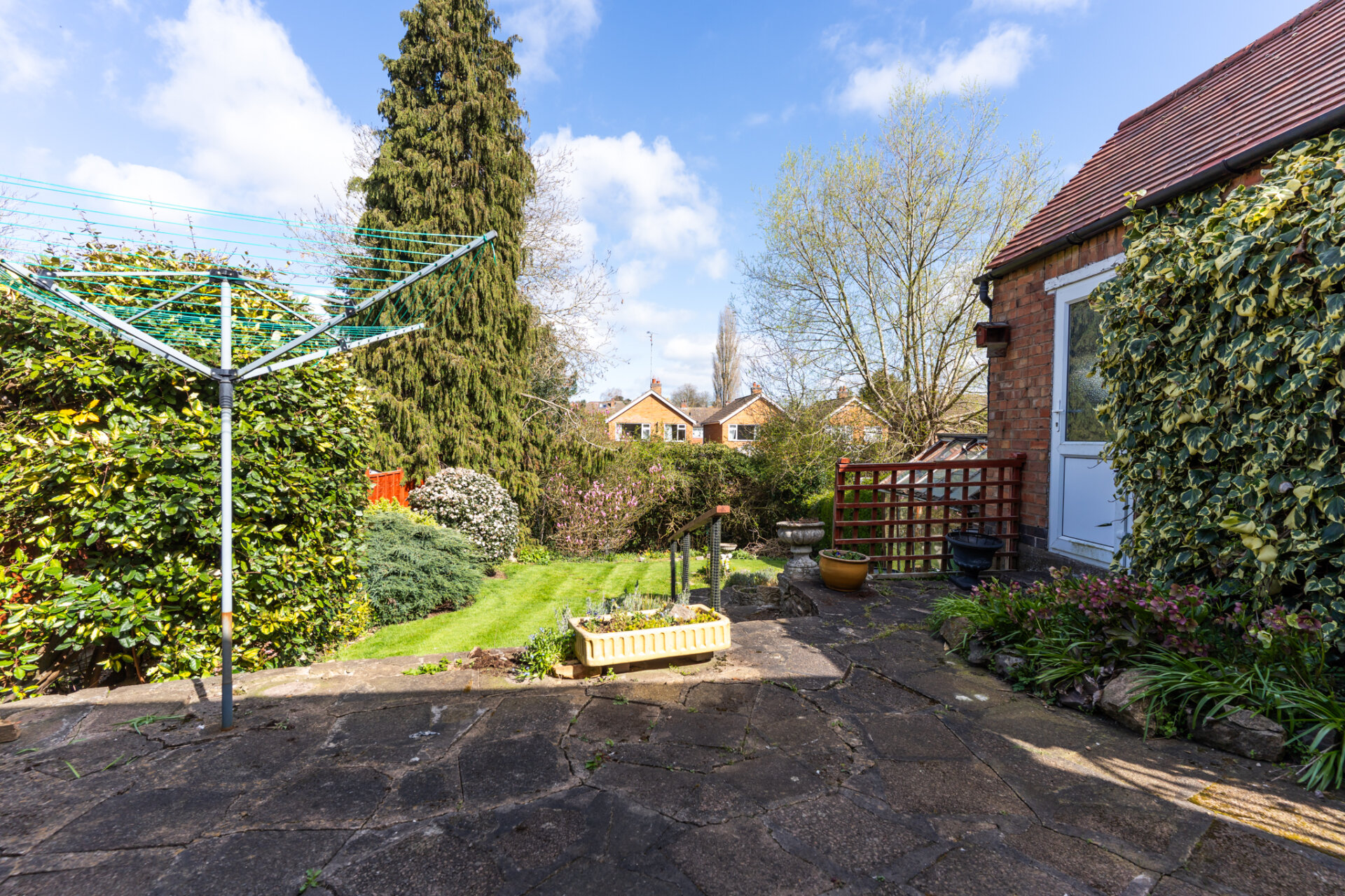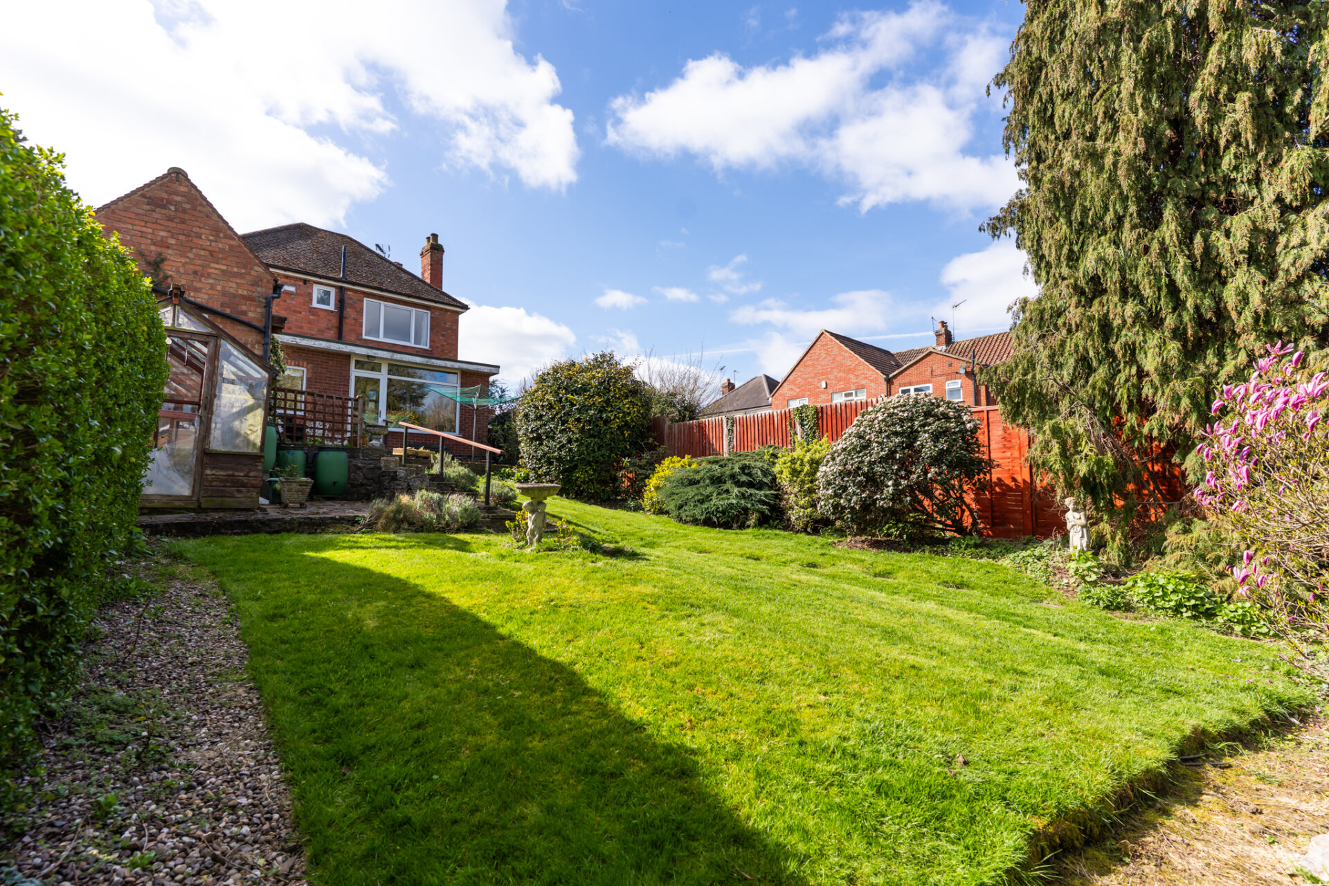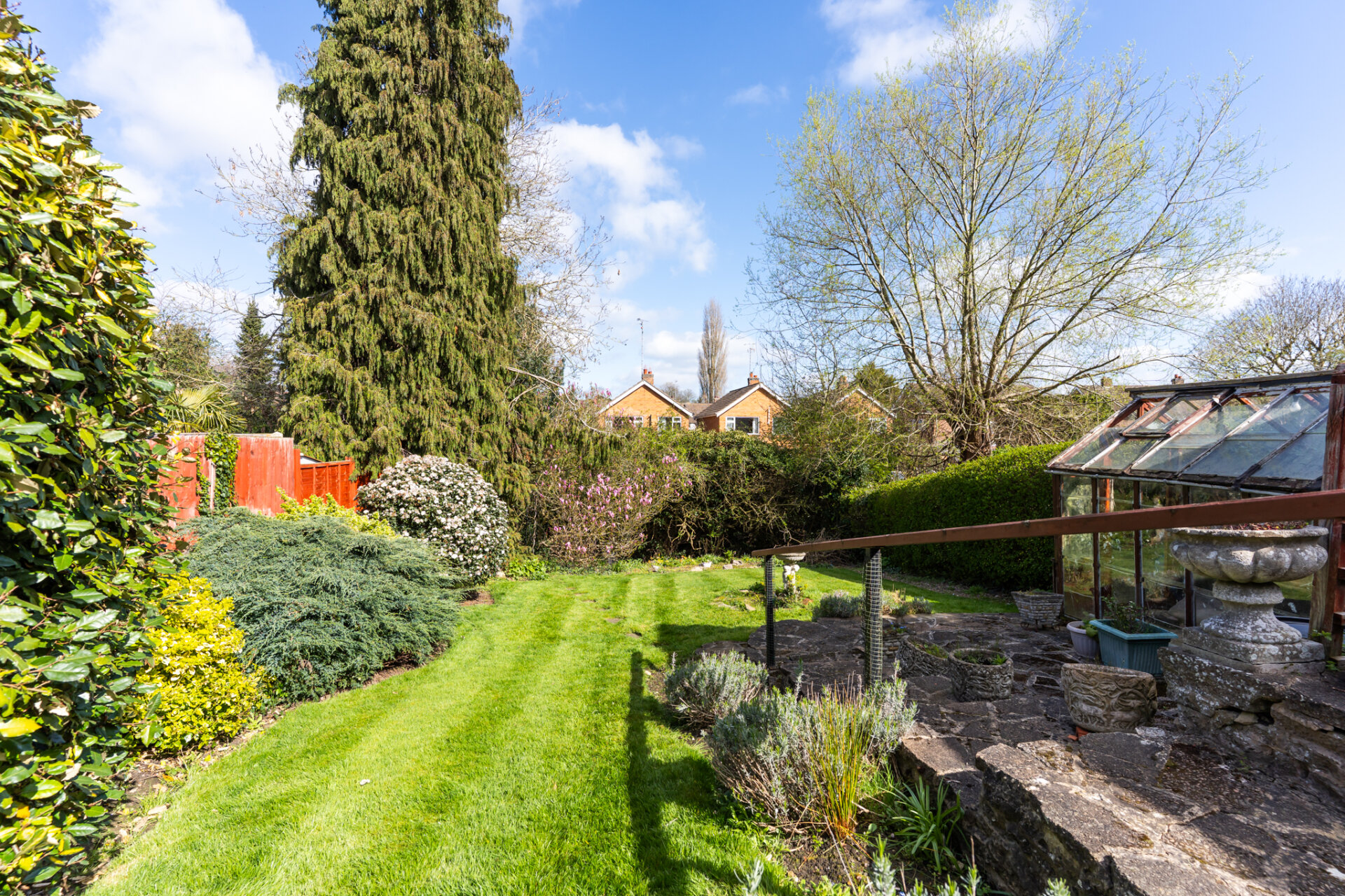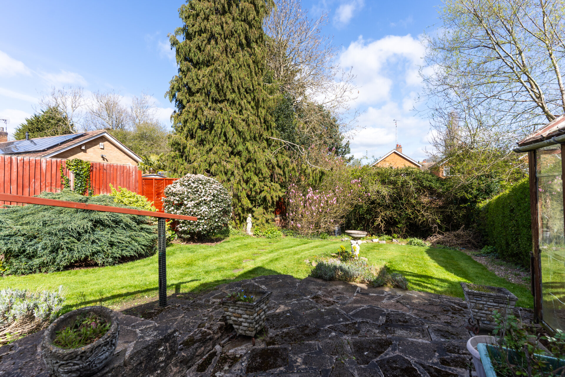 Immediately adjoining the garden room is a patio area, ideal for outdoor seating, which steps down to a further patio space — creating distinct areas for relaxing or entertaining. The remainder of the garden is predominantly laid to lawn, providing a usable and family-friendly outdoor space.