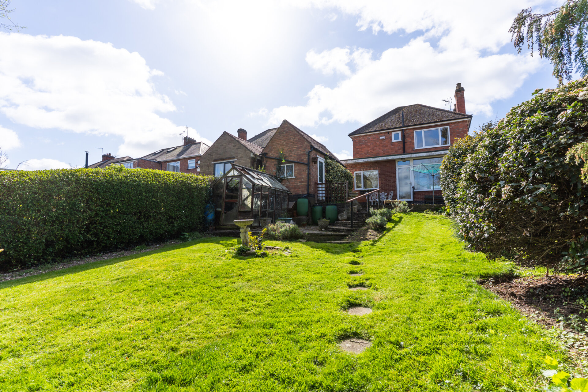 The rear garden is a key feature of the property, extending to approximately 244m² and offering a good degree of privacy, thanks to established borders filled with mature trees and shrubs.