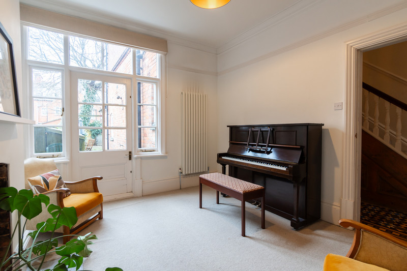 The entrance sits back from the pavement behind a neat shrubbery whilst a wide entrance hall complete with original Minton tiled flooring delicately links the downstairs accommodation together with access to two principle reception rooms and an extended breakfast kitchen/diner. To the left hand side, a large principle drawing room boasts a wide sash-window to the front aspect, a log-burner fireplace centrally positioned proving as an excellent focal point couples with original picture rails and ceiling rose paying homage to the era the home was built in. A second reception room is centrally positioned on the downstairs floorplan and includes timber French doors providing convenient access and most appealing views onto the courtyard garden, complete with an open chimney brick-surround, oak-framed doors and original picture rails. Following a clever extension to the rear, a meticulously designed open plan living/dining split-tier breakfast kitchen follows a neutral colour-theme of soft grey and white is complemented with wood-effect flooring and modern spotlights. An extensive range of integrated appliances include fridge-freezer, dishwasher and five-ring gas cylinder hob with concealed extractor hood, sufficient eye-level wall and base units. The addition of VELUX skylights and four double-glazed windows to the side aspect make this space incredibly bright, airy and aesthetically pleasing. A conveniently positioned w/c completes the downstairs accommodation alongside access to a deceptively spacious cellar which subject to necessary consents could be altered to add to the existing living space.