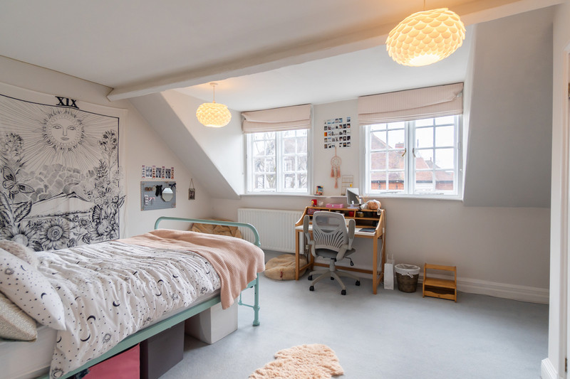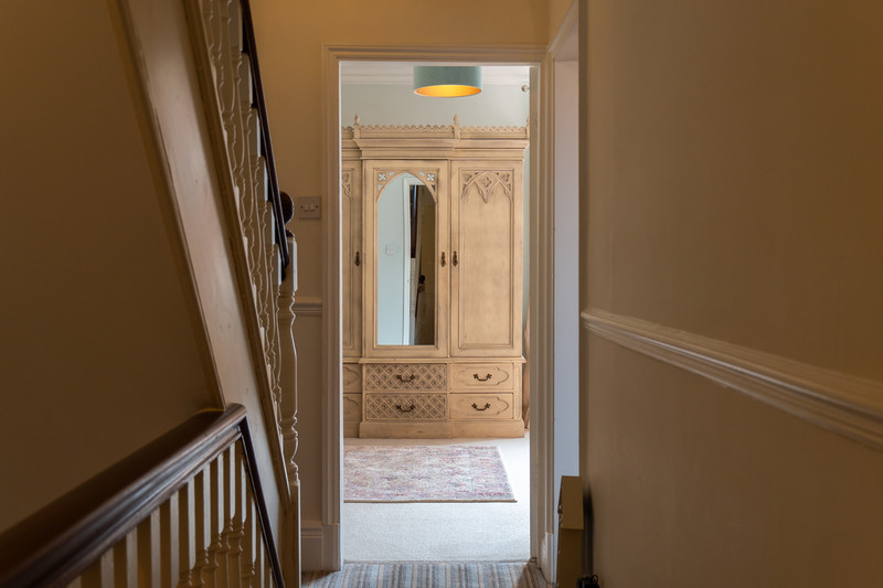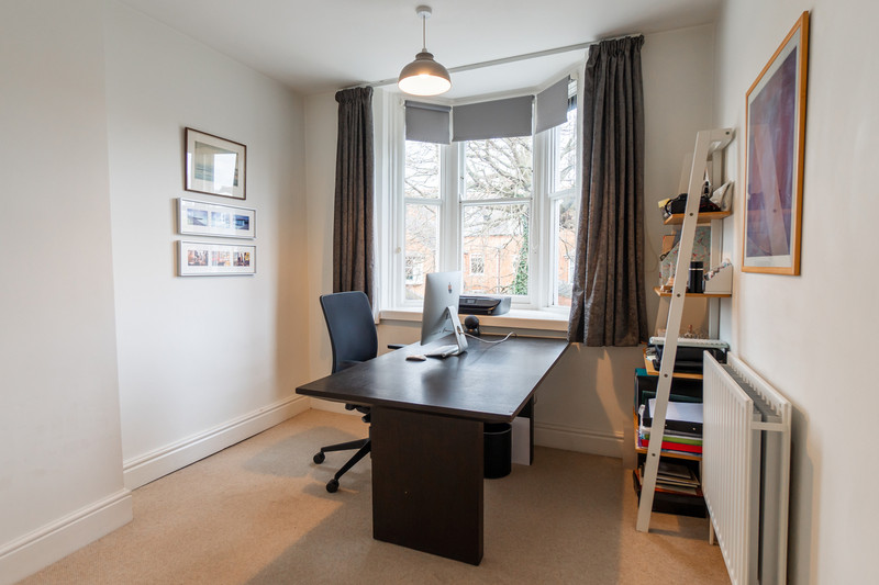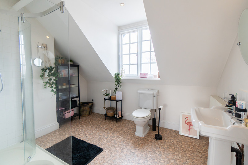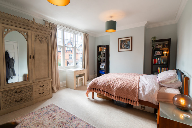 With stairs rising to the first floor, three double bedrooms and a three piece family bathroom can be found. The larger of the three is positioned to the front of the plan, punctuated with a large sash window to the front aspect. Bedroom two is spacious in size offering a leafy aspect through secondary double-glazed sash windows whilst offering built-in cupboard space. A third and final bedroom is positioned to the rear of the landing (configured as an office currently.) Presented in excellent condition with a large sash-bay window and sufficient space for free-standing furniture. A stylishly appointed three piece family bathroom with separate w/c completes the first floor accommodation and follows a bold inclusion of a teal and white colour palette, pairing nicely together. A second flight of stairs ascends to a fourth and final master-bedroom complete with a modern three piece en-suite. Here, two large double-glazed sash windows are positioned to the front offering pleasant views onto the quiet residential road with a large three-piece en-suite shower room, completing the accommodation on offer.