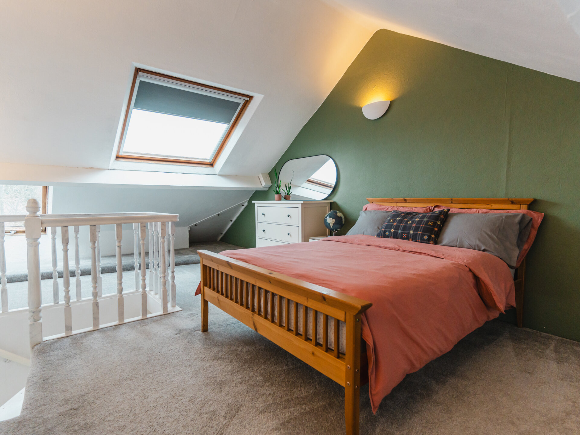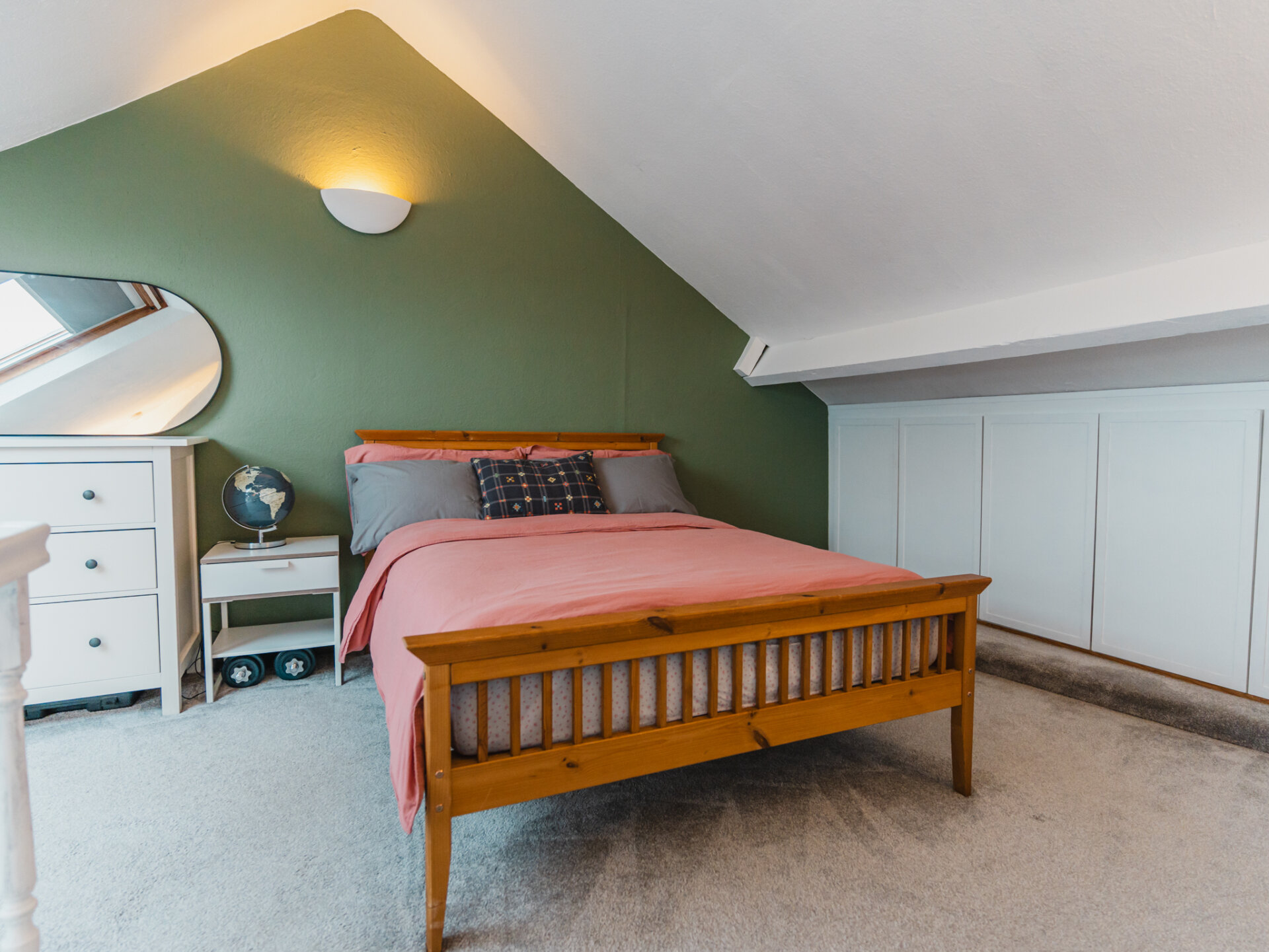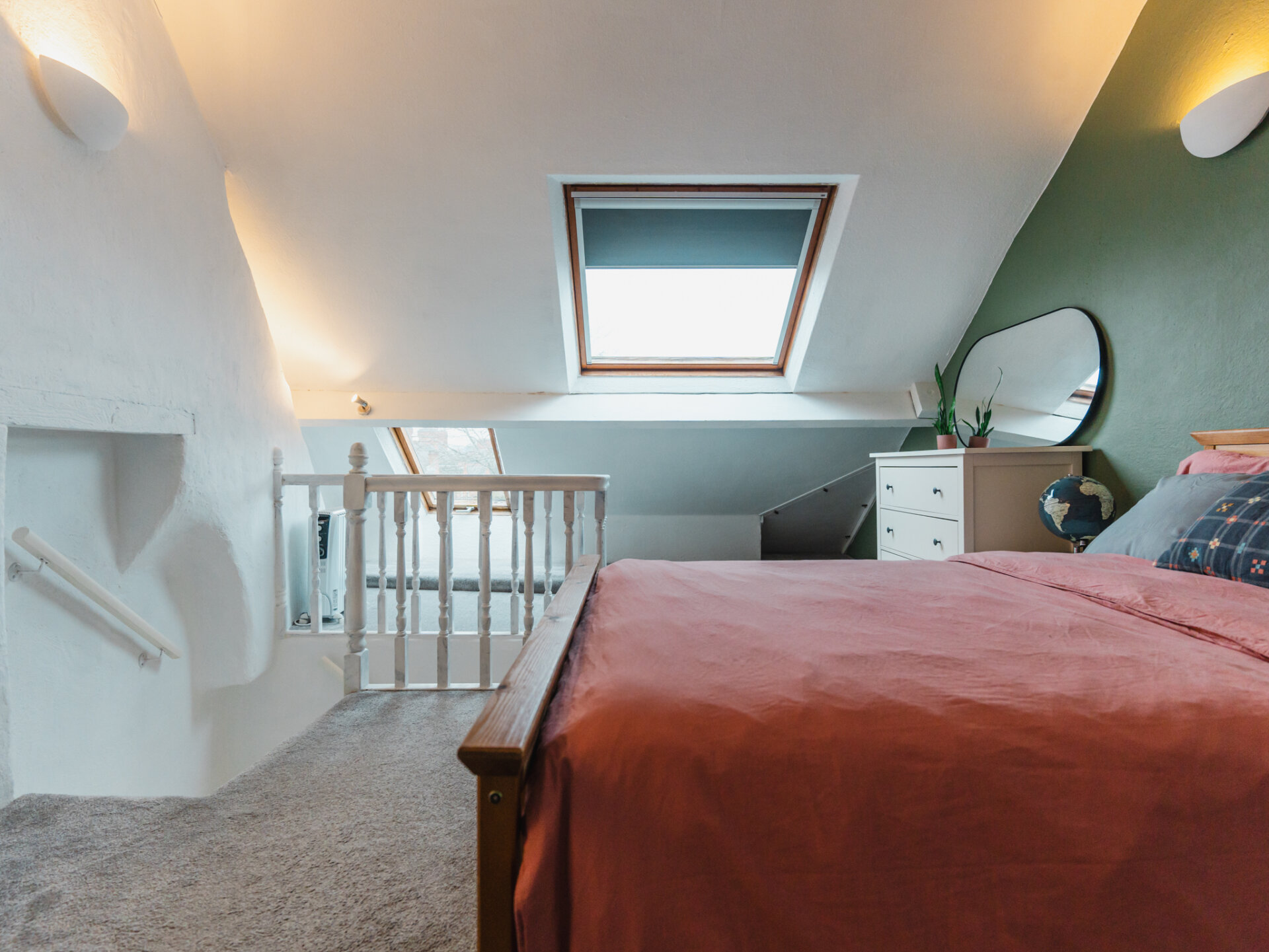 The first floor has two double bedrooms and a newly fitted, most spectacular, three-piece family bathroom. The larger of the two bedrooms is found at the front of the plan and has a wonderful quality of a large sash window to the front aspect and newly fitted wool carpets. A smooth fire surround rests on a sleek hearth with sufficient space for all relevant furniture. A second bedroom is centrally positioned, boasting stripped white-washed timber flooring, a cast-iron feature fireplace, and double-glazed windows to the side aspect overlooking the rear garden. An honourable mention of this fabulous home is the family bathroom, found to the far end of the first floor. With impeccable attention to detail, the space has had a complete transformation and includes parquet-inspired vinyl flooring, a low flush w/c, modern vanity unit, and a separate bath with a separate airing cupboard housing the Biasi Riva Plus boiler, installed in 2017. A second flight of stairs opens to a very clever loft conversion introducing the master bedroom; beautifully presented with the inclusion of dual-aspect VELUX windows with far-reaching views of the city. Every inch of this room has been considered with additional storage found towards the left-hand side of the space.