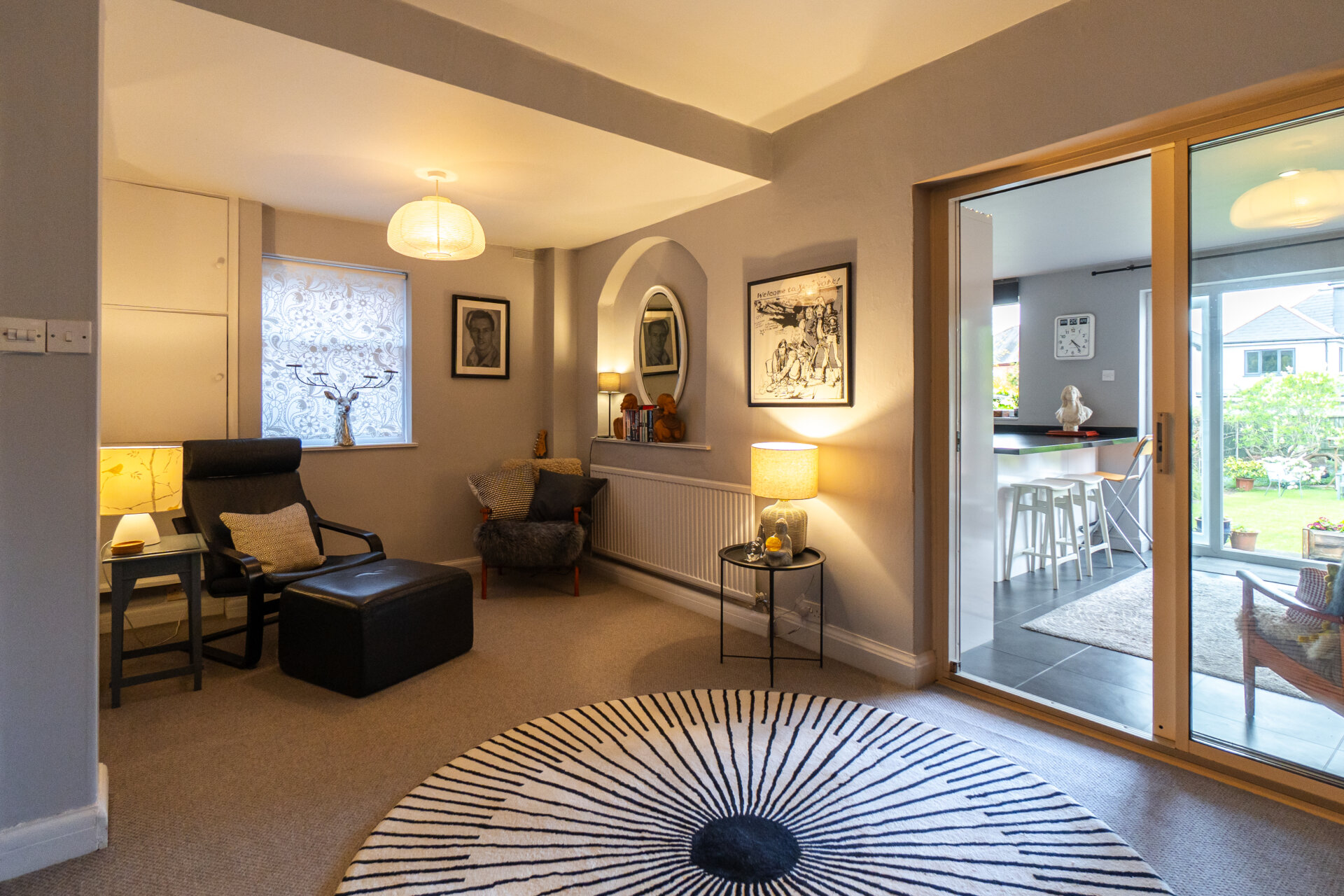 A considered reinvention of a 1930s semi-detached home, this property balances period integrity with a confident, contemporary aesthetic. Completely remodelled and carefully extended, the house embraces a refined yet expressive palette, with interiors that prioritise light, flow and a strong connection to the garden beyond.