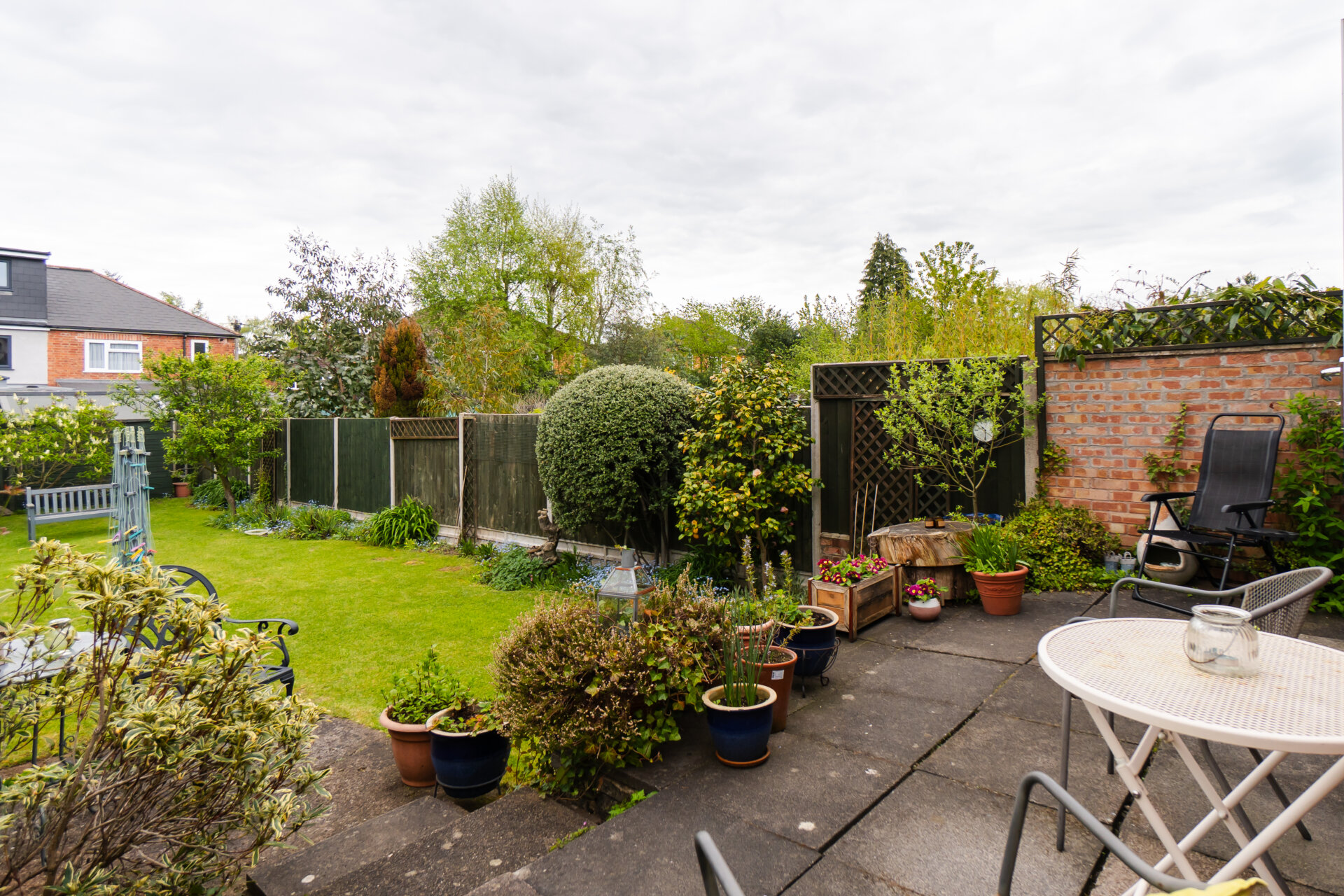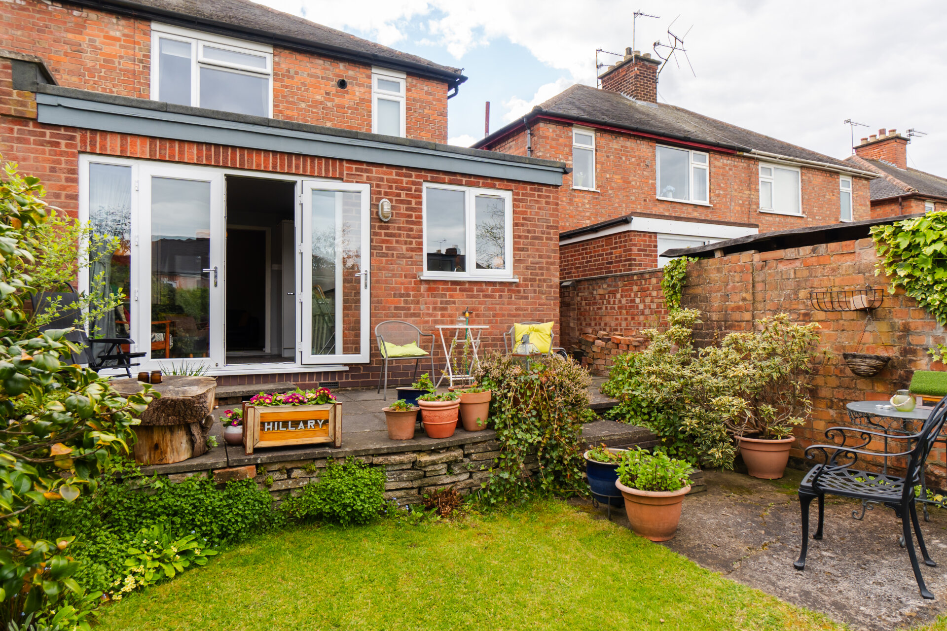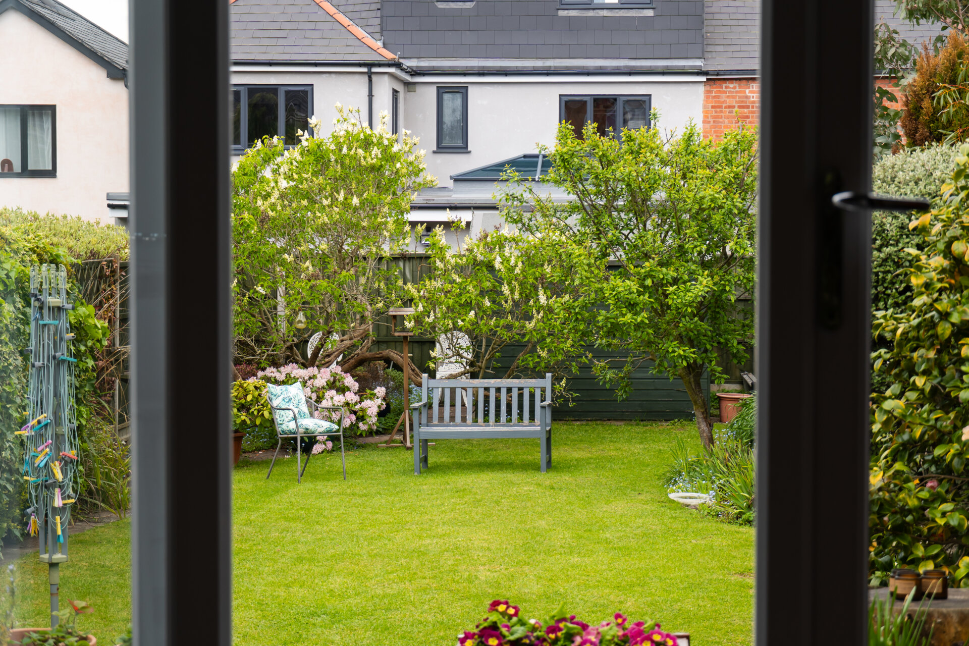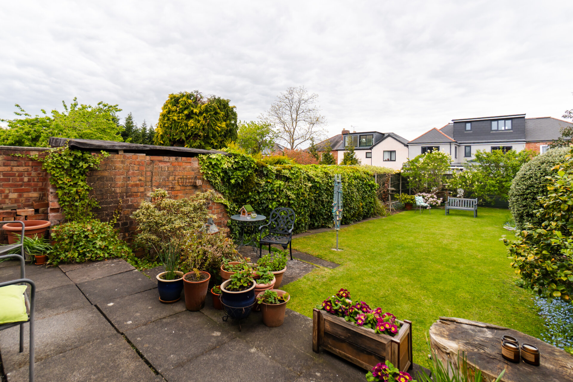 The garden is a defining element of the property, designed with a strong sense of structure and seasonality. A mix of fruit and blossom trees sit within established borders, creating both privacy and visual interest. A lawned area offers openness, while a slightly raised terrace provides a natural setting for outdoor dining and entertaining. To the front, readily available on-street parking can be found outside the property whilst there is also potential to configure a driveway for the property following the relevant consents.