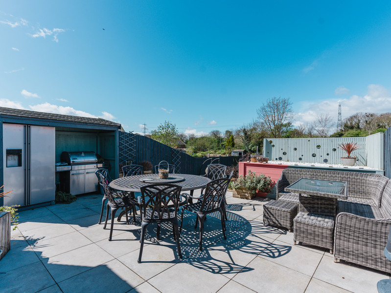 Upstairs, the three generous bedrooms offer comfortable accommodations for the whole family. The third bedroom has been thoughtfully converted into a walk-in wardrobe, providing ample storage space and adding a touch of luxury to the home. The master and second provide fitted wardrobes and unique decor.