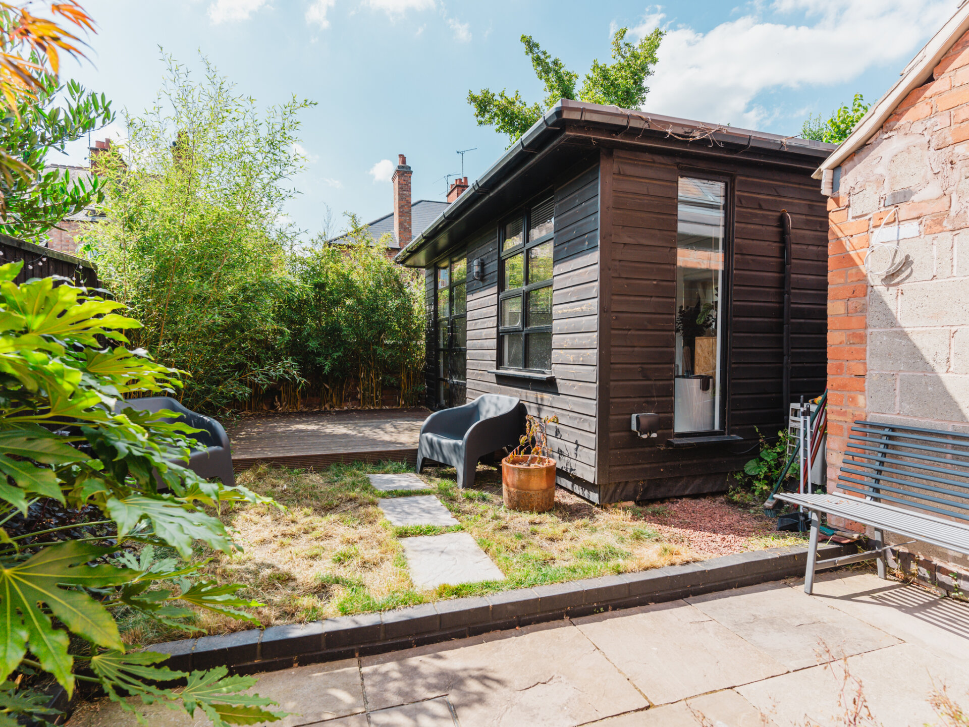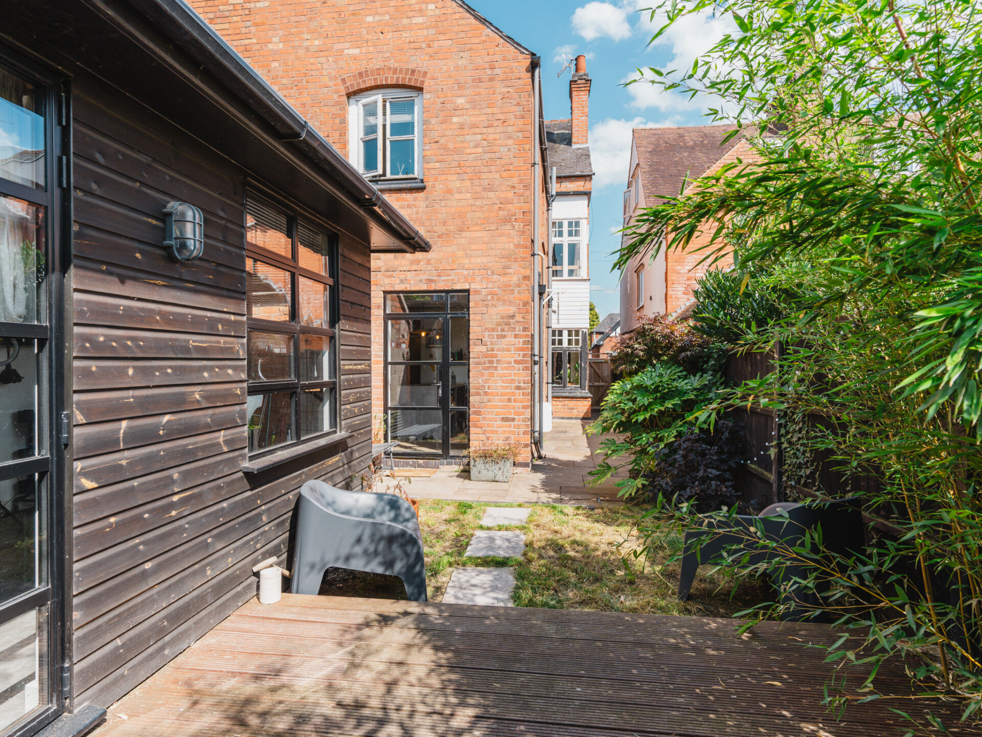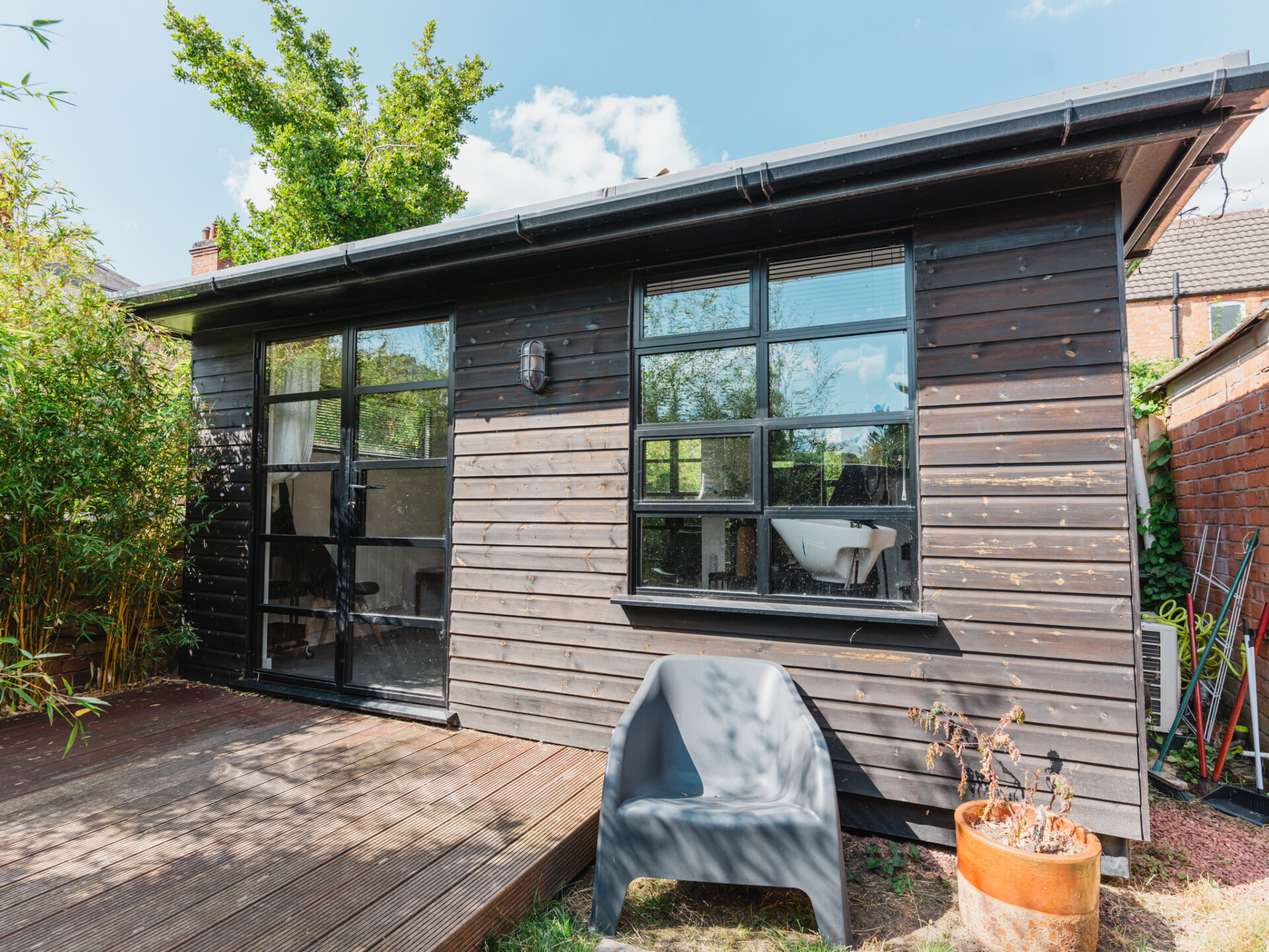 Outside, a brilliantly secluded, West-facing rear garden which is mainly laid-to-lawn is complete with a raised decking area acting as an excellent sun-trap with mature shrubbery and borders providing privacy from neighbouring properties. In recent years, the addition of a fully-compliant, well equipped home-studio has been built which is configured as a hair-salon, serving as excellent work-from-home accessibility or alternatively could be altered into a self-contained annexe (subject to necessary consents.) Readily available on-street parking can be found directly outside the property.