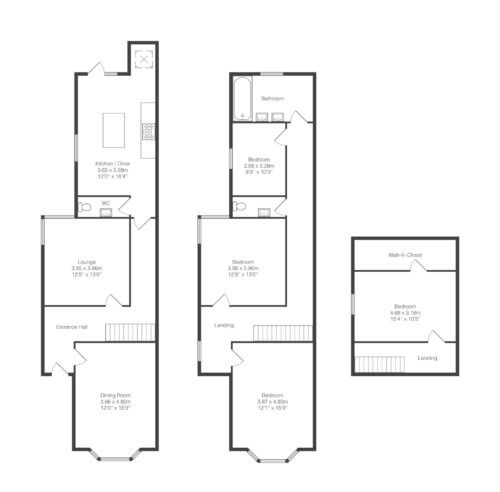 Double bay-fronted and with immediate kerb appeal whilst stretching over 1700 square foot of living accommodation, entry is through a wide entrance hall complete with stripped wooden flooring and a composite door that opens to two reception rooms and access to the kitchen diner to the rear. To the front of the plan, a bright and airy principal reception room, well equipped with a large double-glazed uPVC bay window allowing natural light to take centre stage. An original wrought-iron feature fireplace with decorative surround is positioned to the centre of the space, making an excellent focal point complete with high ceilings and original picture rails. A second reception room is beautifully presented, framing views onto the rear through wooden-framed sash-windows to the side elevation. A stylish log-burner fireplace is positioned to the centre with a brick surround alongside stripped wooden flooring, providing sufficient space for all necessary furniture. To the rear of the property, a simply spectacular, bright and airy, open plan breakfast fitted kitchen has been paired with a bold material use of stainless steel. A large island unit to the centre is combined with a large rangemaster oven to the side with double-glazed aluminium doors to the rear providing access and pleasant views to the garden. A further extension has created a separate utility room with the inclusion of a wide skylight allowing an influx of natural light into the space. A downstairs w/c completes the ground-floor accommodation. To the first floor, an impressive landing opens to three double bedrooms and a three-piece family bathroom. All three bedrooms are incredibly spacious, with two boasting stripped wooden flooring and a third carpeted, all serviced by the three-piece family bathroom found to the far-end of the first floor. A second flight of stairs opens to a fourth and final double bedroom, again, with stripped wooden flooring and a separate walk-in dressing room. The property has the added benefit of a newly fitted boiler (fitted in 2021.)