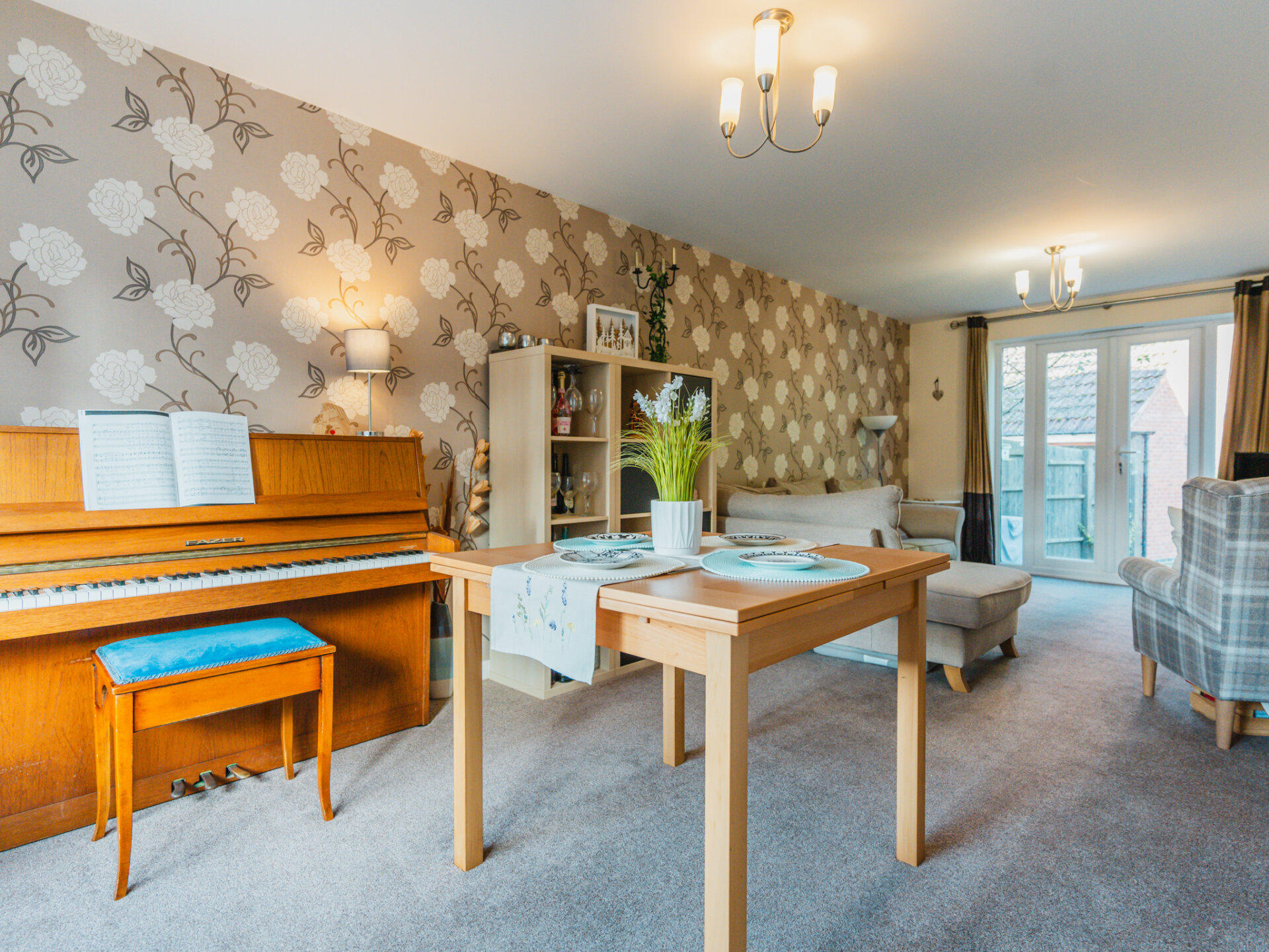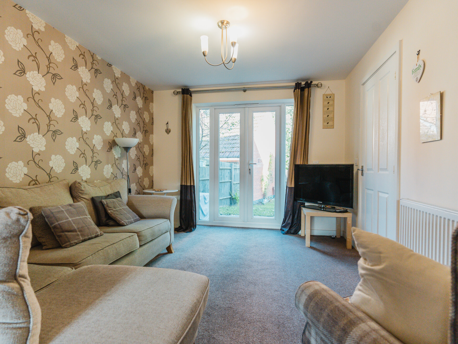 Upon entering the property, you are welcomed into a spacious entrance hall with access to the kitchen, a through lounge that serves as both a living and dining area, and a downstairs WC. The through lounge stretches from the front to the rear of the house, providing a bright, open space with easy access to the kitchen via an additional internal doorway. The kitchen can also be accessed directly from the entrance hallway and the side of the property, offering both convenience and functionality.