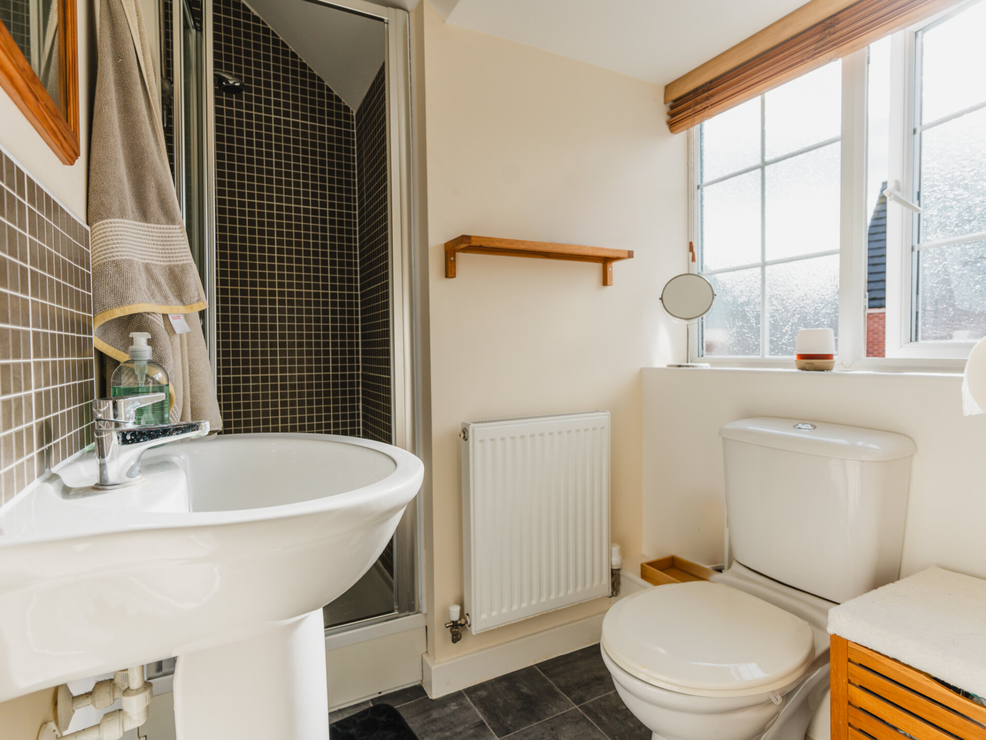 The first floor features three well-sized bedrooms, including two generous doubles and one single (currently used as a study), all served by a family bathroom. On the second floor, you’ll find two further double bedrooms, both with en-suite shower rooms.