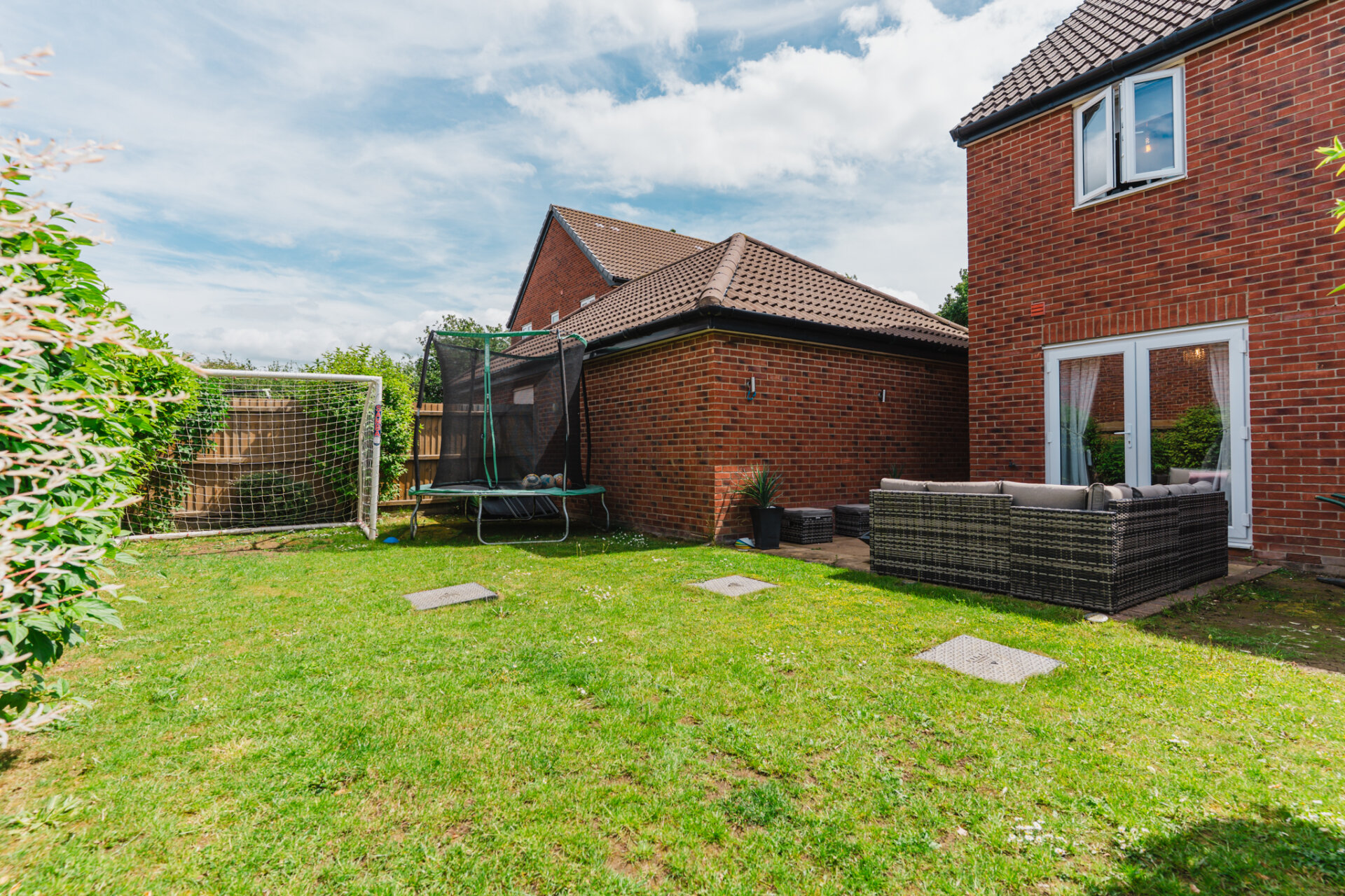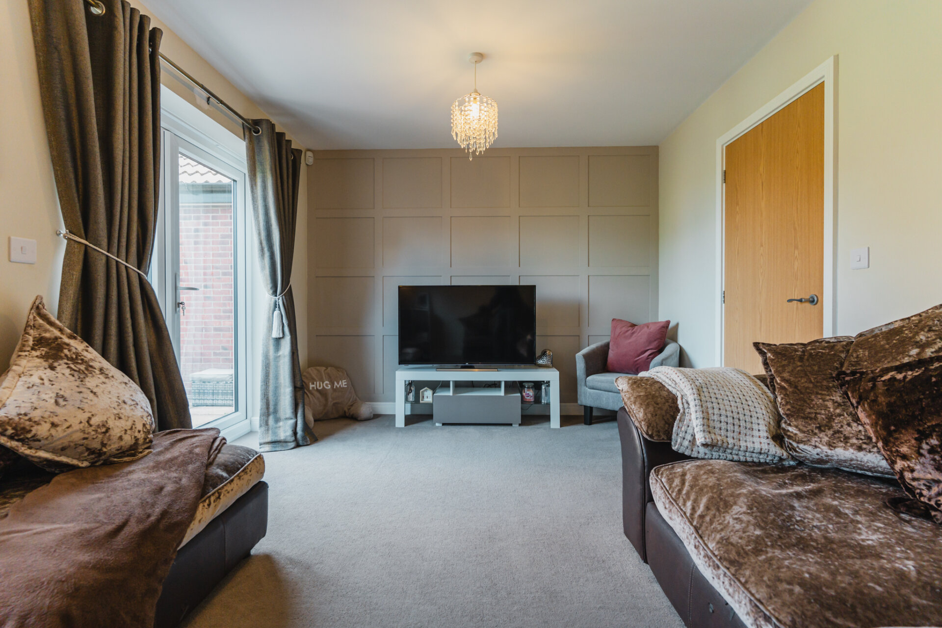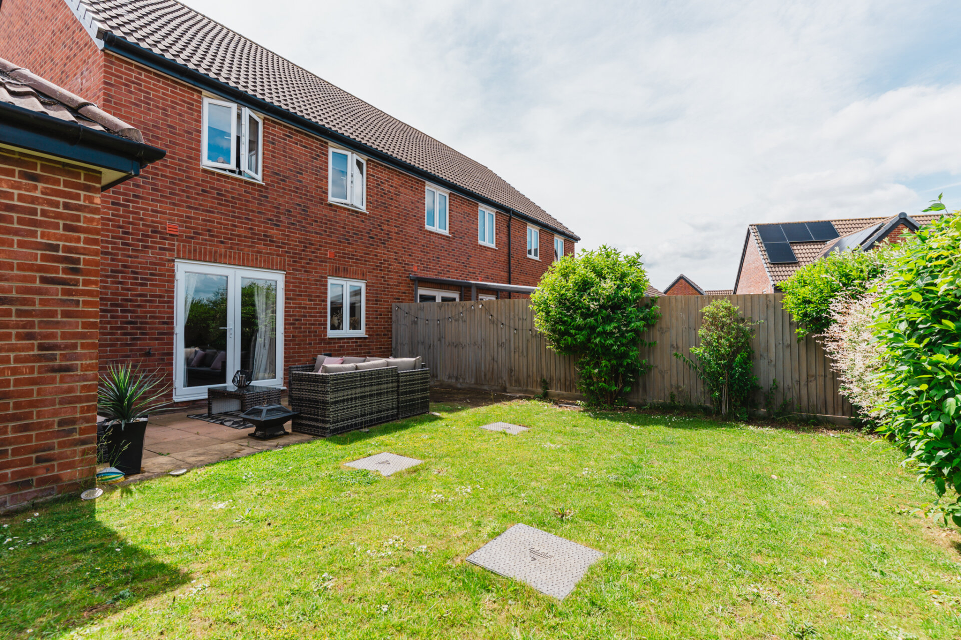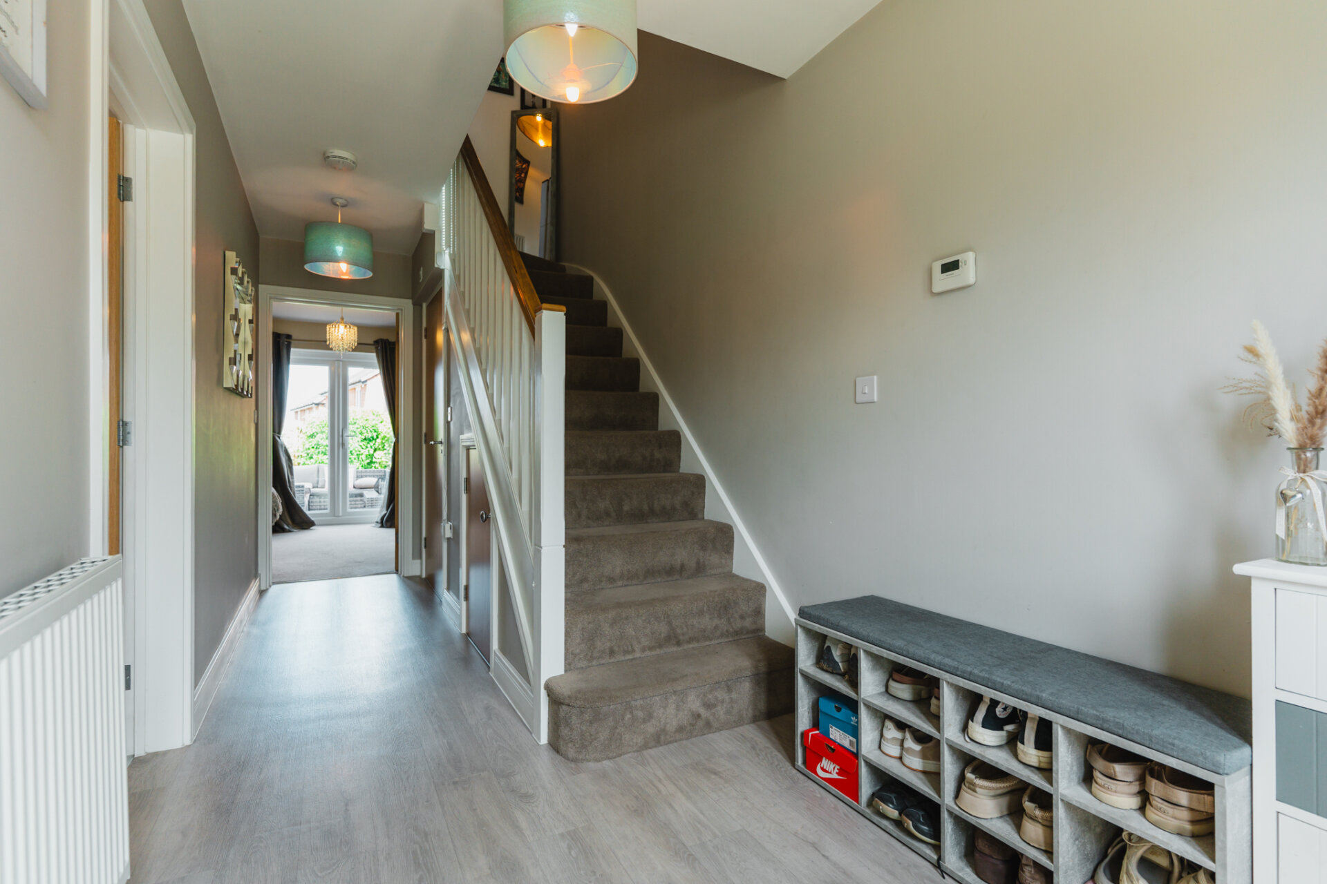 You’re welcomed into a generous entrance hallway, complete with a convenient storage cupboard; perfect for coats, shoes, and everyday essentials. The hallway leads into the home: including a well-proportioned lounge to the rear, featuring French doors that open directly onto the private rear garden.