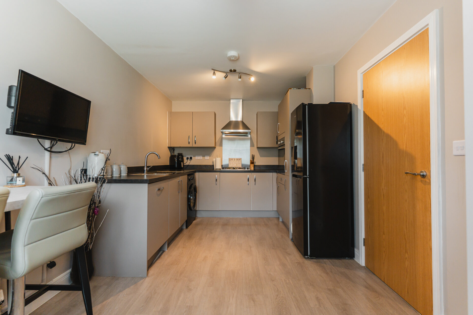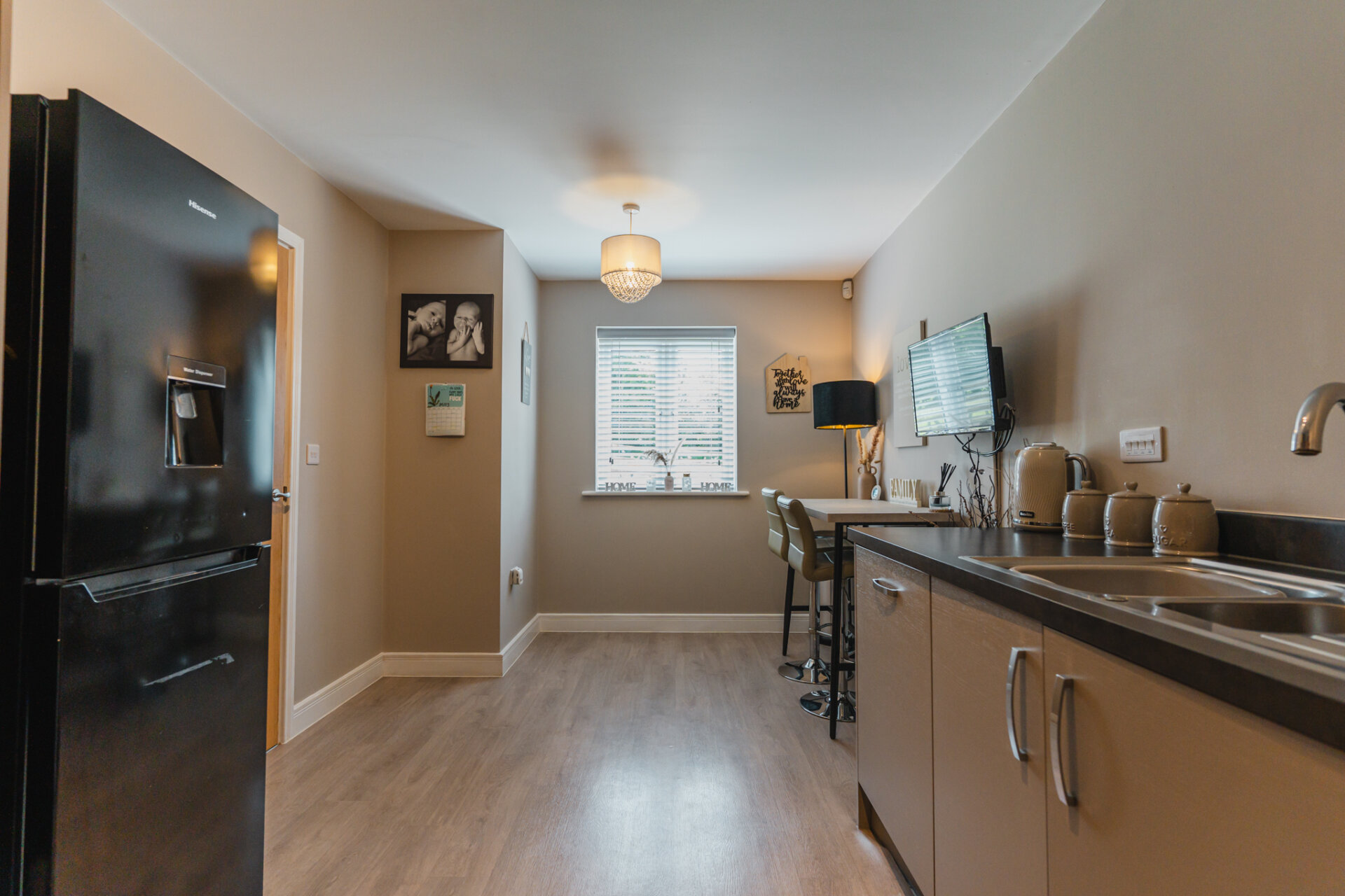 To the front of the property, you’ll find a stylish kitchen/diner, finished to a high standard with modern units, quality worktops, and integrated appliances. With ample space for a dining table, this area is perfect.