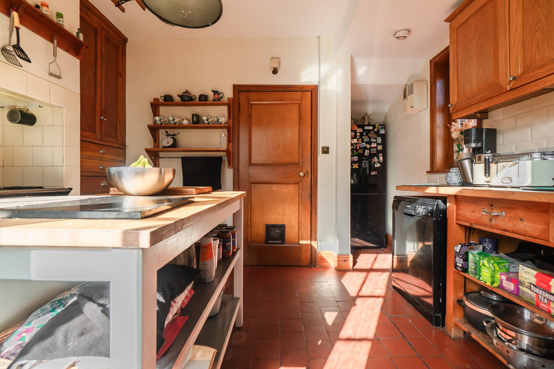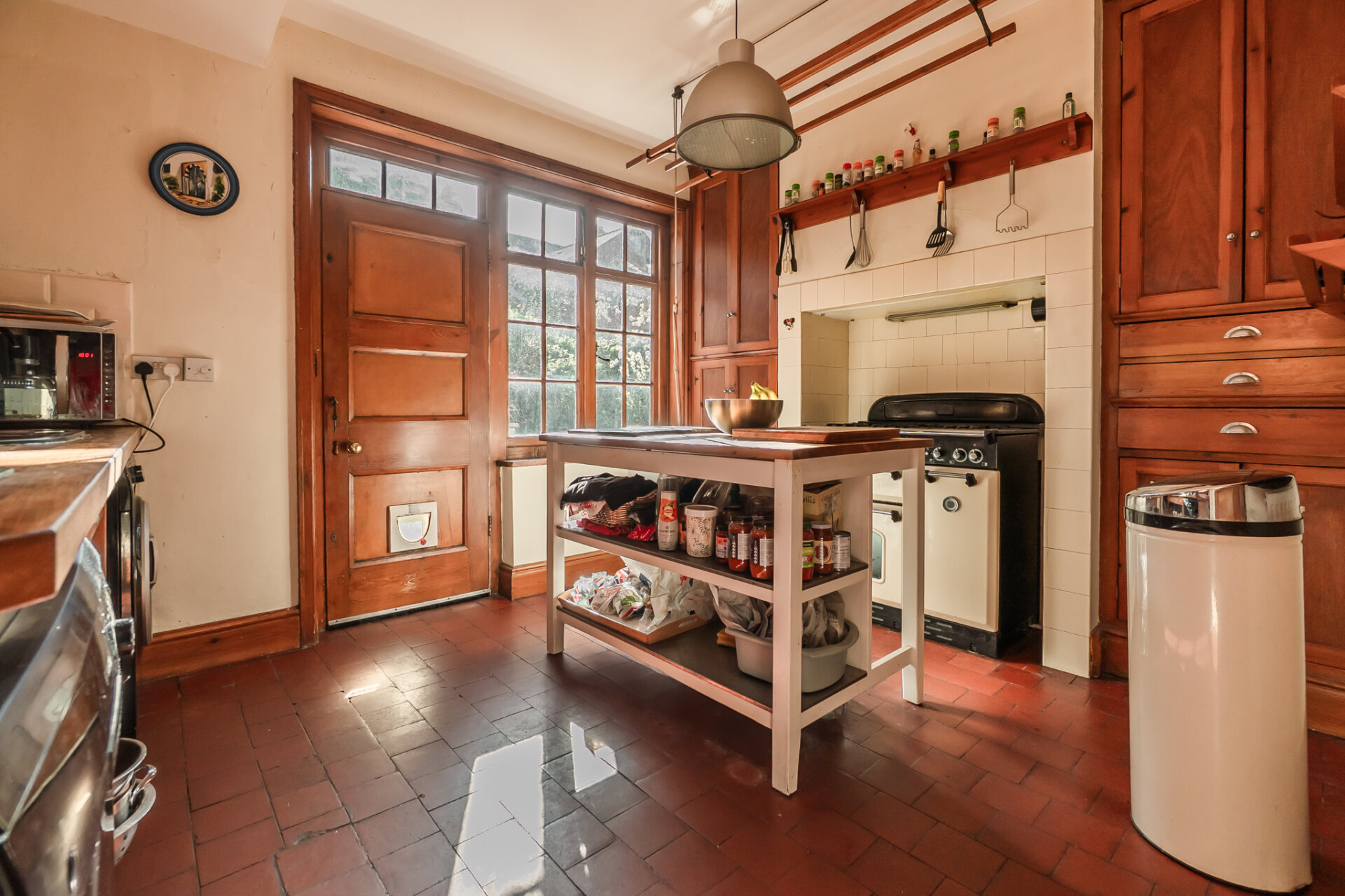 To the rear, the kitchen is a true celebration of character and functionality - a space that feels both authentic and highly usable. Original tiled flooring, a traditional range cooker, and bespoke cabinetry combine to create a setting that will appeal to those who appreciate craftsmanship and individuality. Direct access to the garden enhances the connection between inside and out.