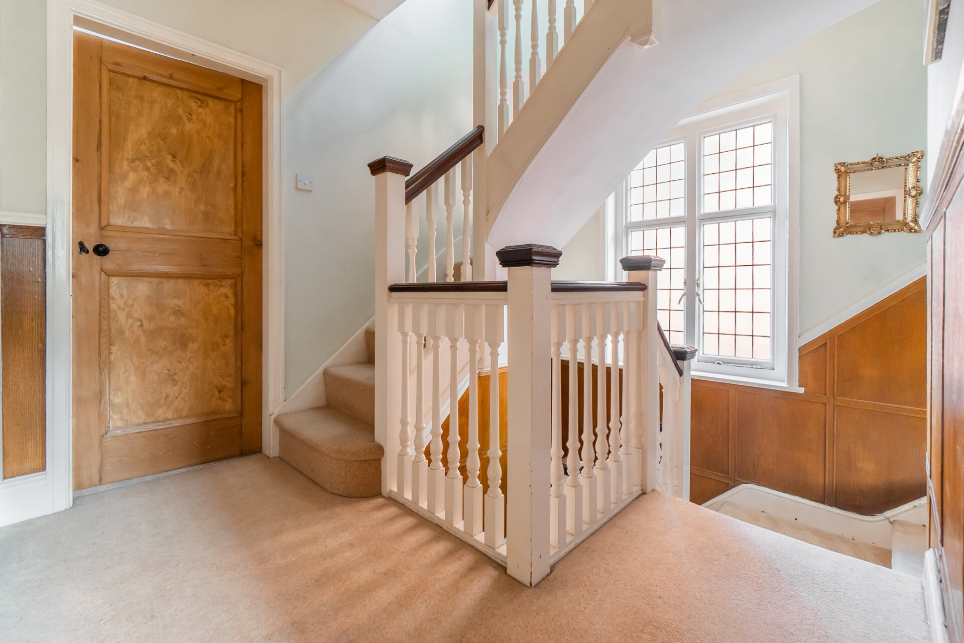 Stepping inside, the entrance hall is nothing short of striking. Original wood panelling wraps the space in warmth and texture, beautifully complemented by classic tiled flooring underfoot. It is a moment of arrival that immediately sets the tone for the rest of the home - timeless, considered, and full of personality.