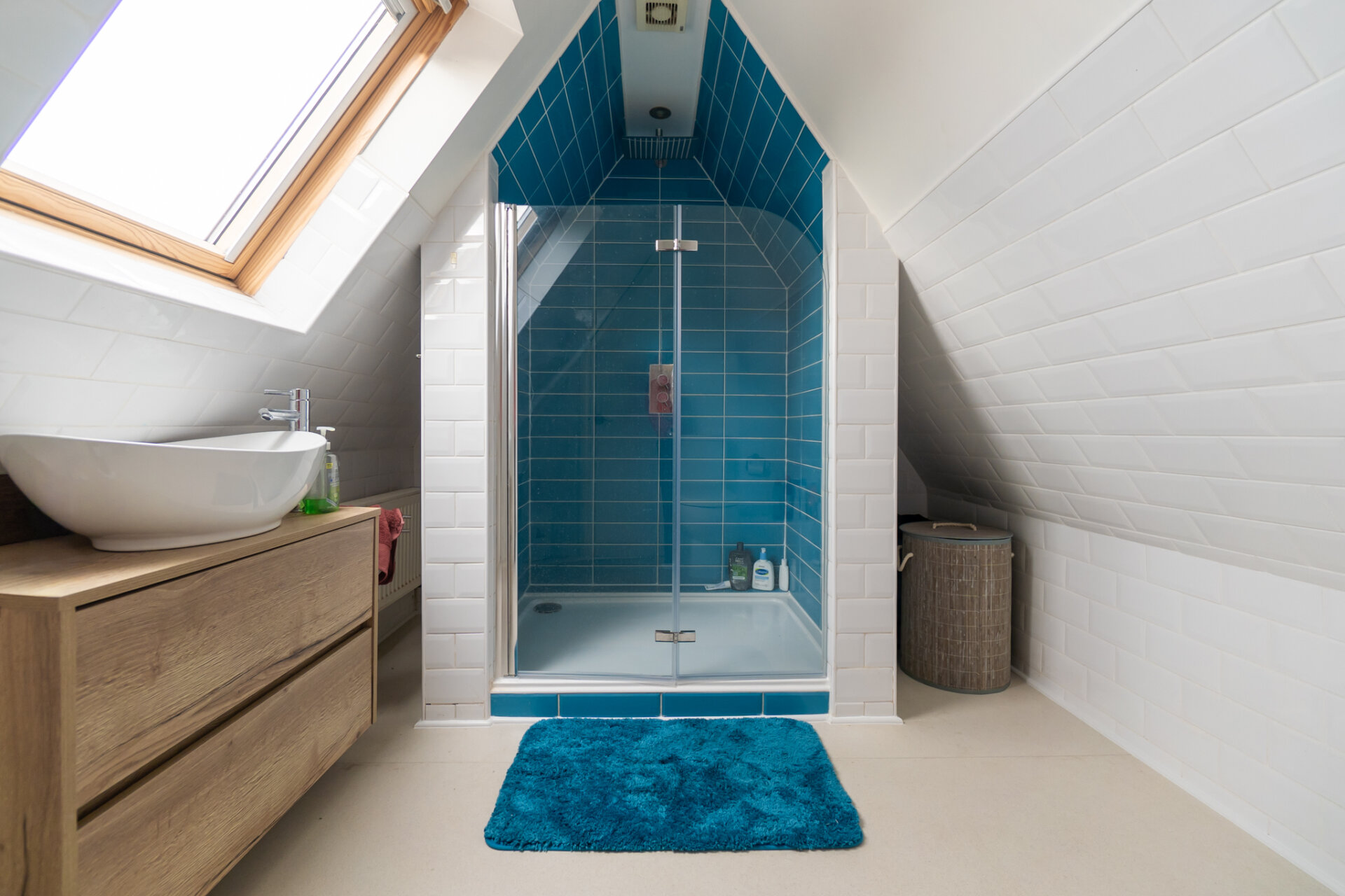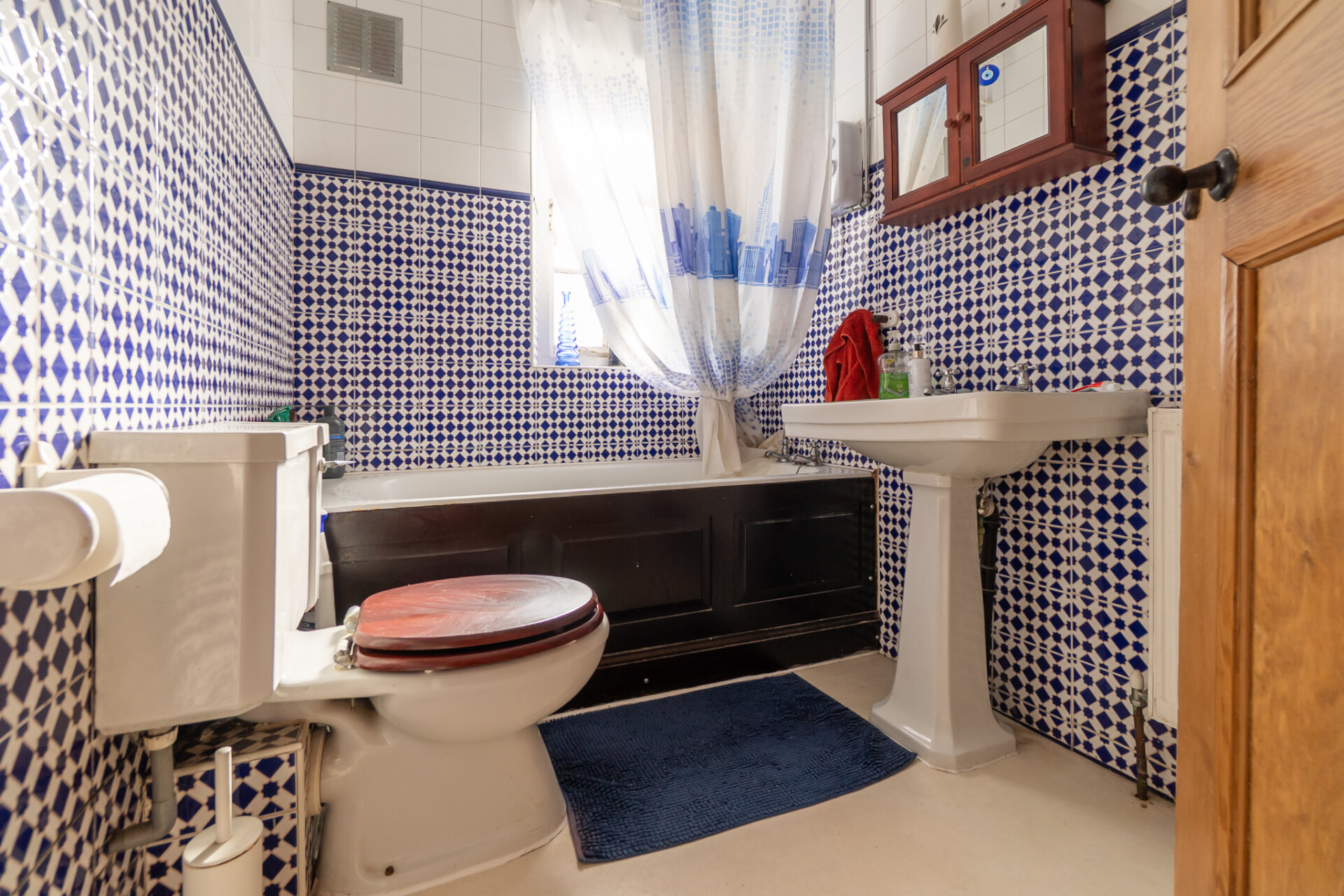 The family bathroom continues the narrative of the home, where heritage features and distinctive design choices create a room full of charm and character.