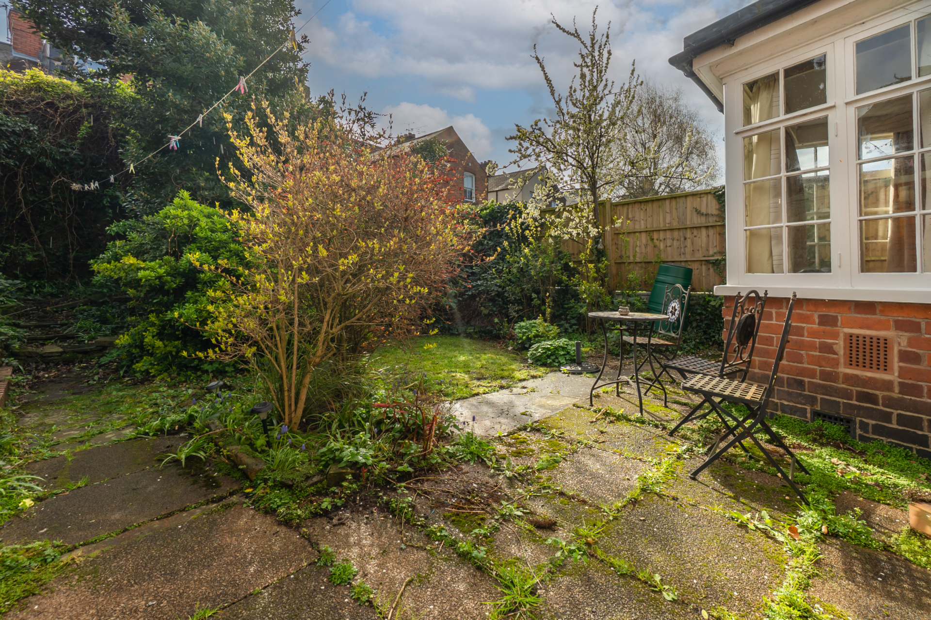 Externally, the rear garden is both mature and private, an established outdoor space framed by greenery and offering a peaceful escape from the city. There is also the benefit of additional storage, enhancing practicality without compromising the setting.