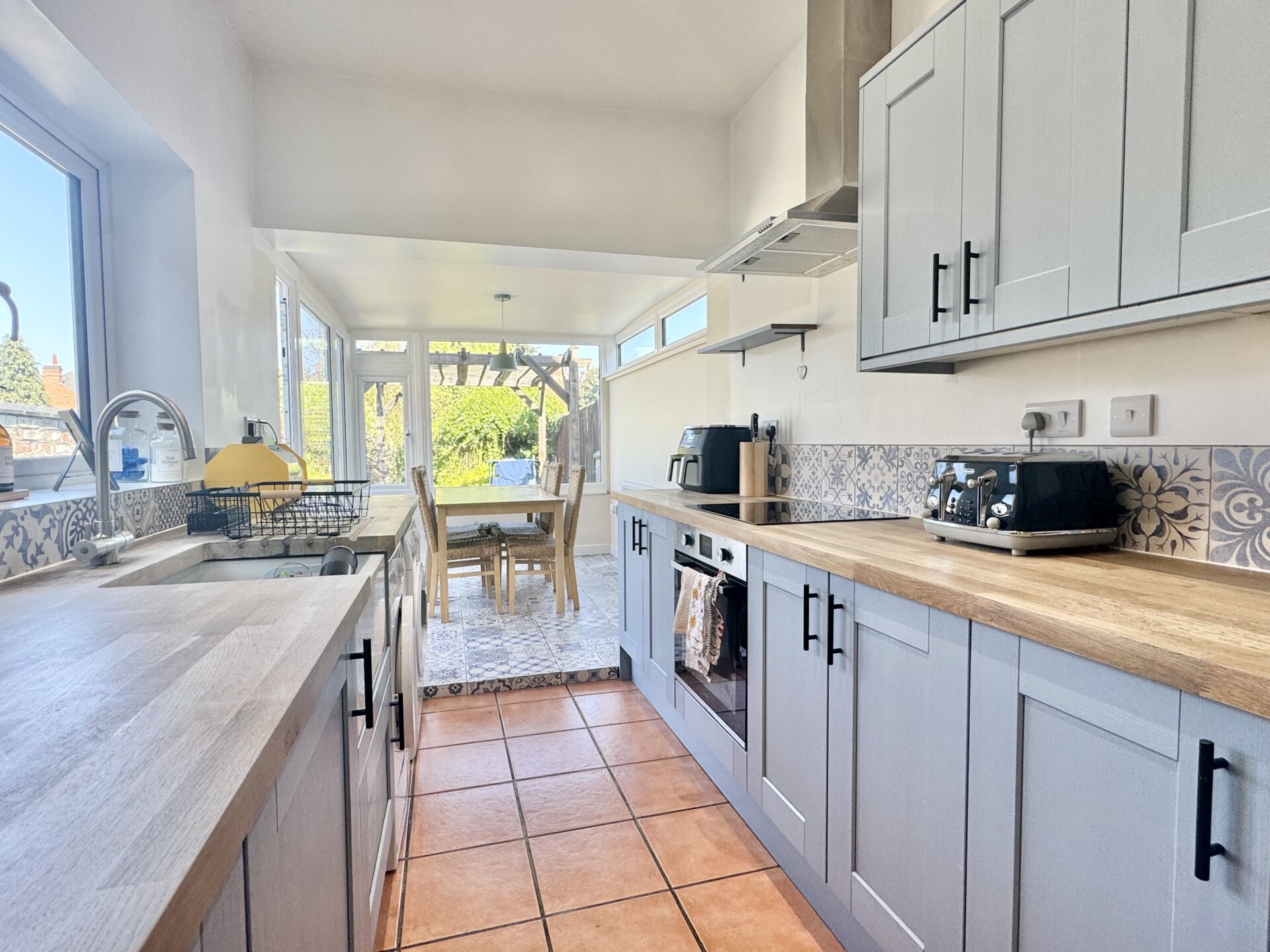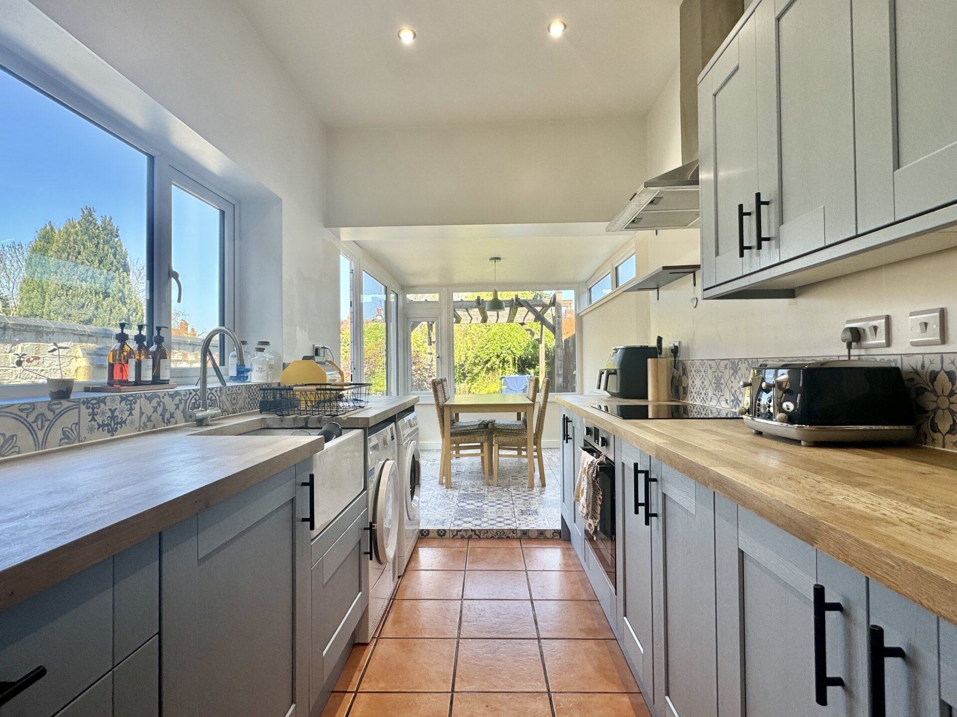 Upon arrival, residents are greeted by a private driveway, providing convenient off-street parking. Stepping inside, the ground floor unfolds into a welcoming ambience, comprising two generously sized reception rooms that offer versatile living spaces for relaxation and entertainment. Continuing through, the recently extended kitchen, featuring a sun room, is a focal point of the home, exuding modernity and functionality. The sun room floods the space with natural light.