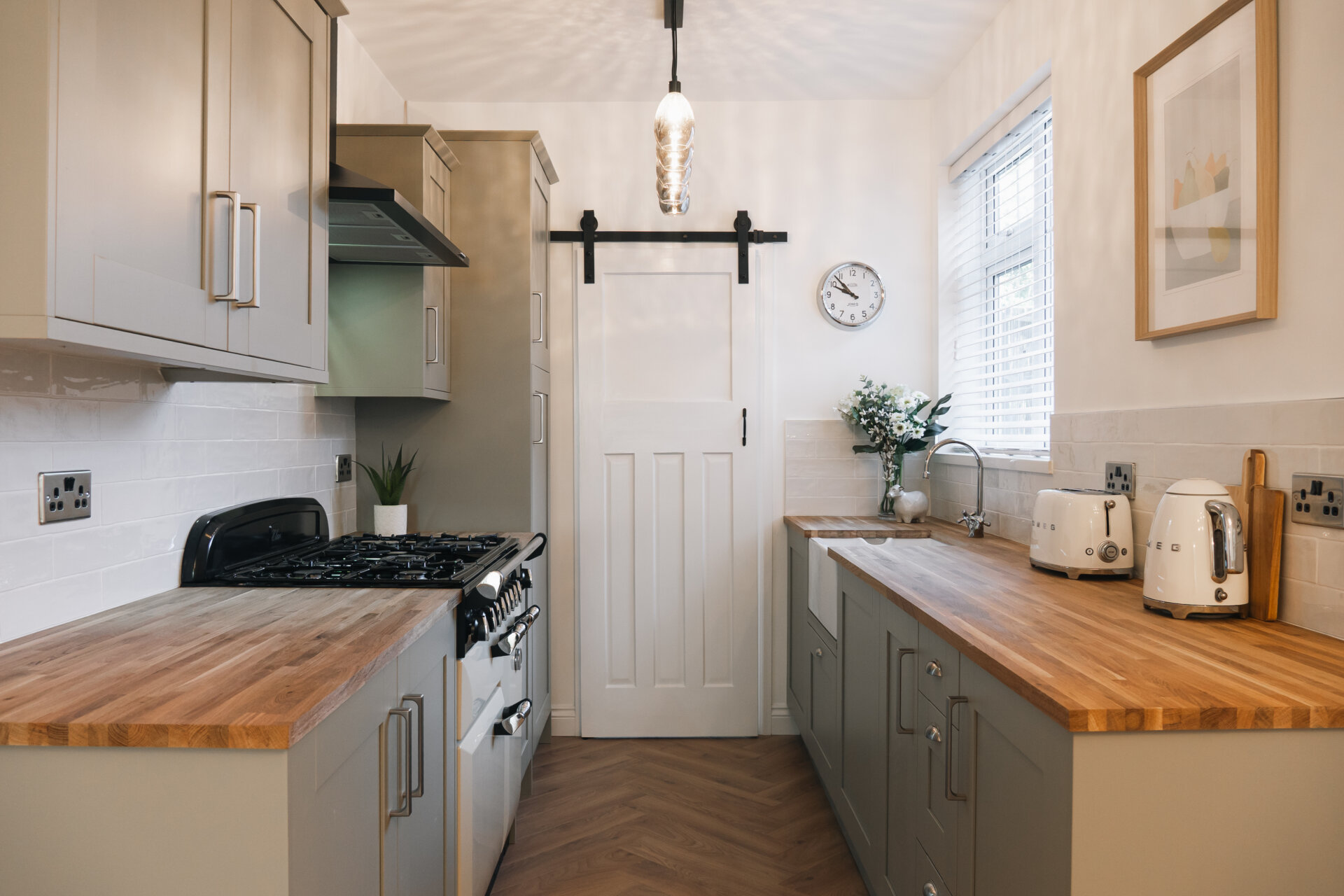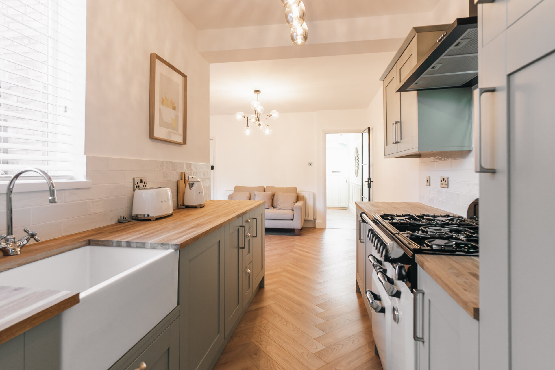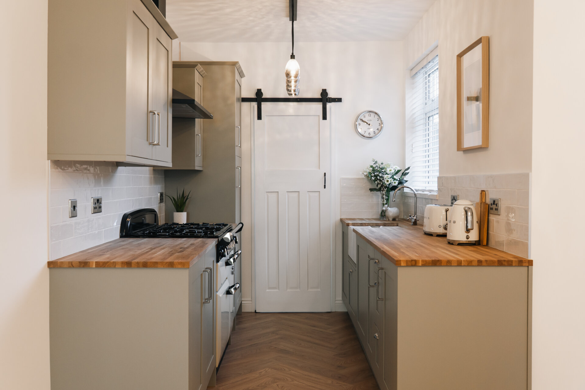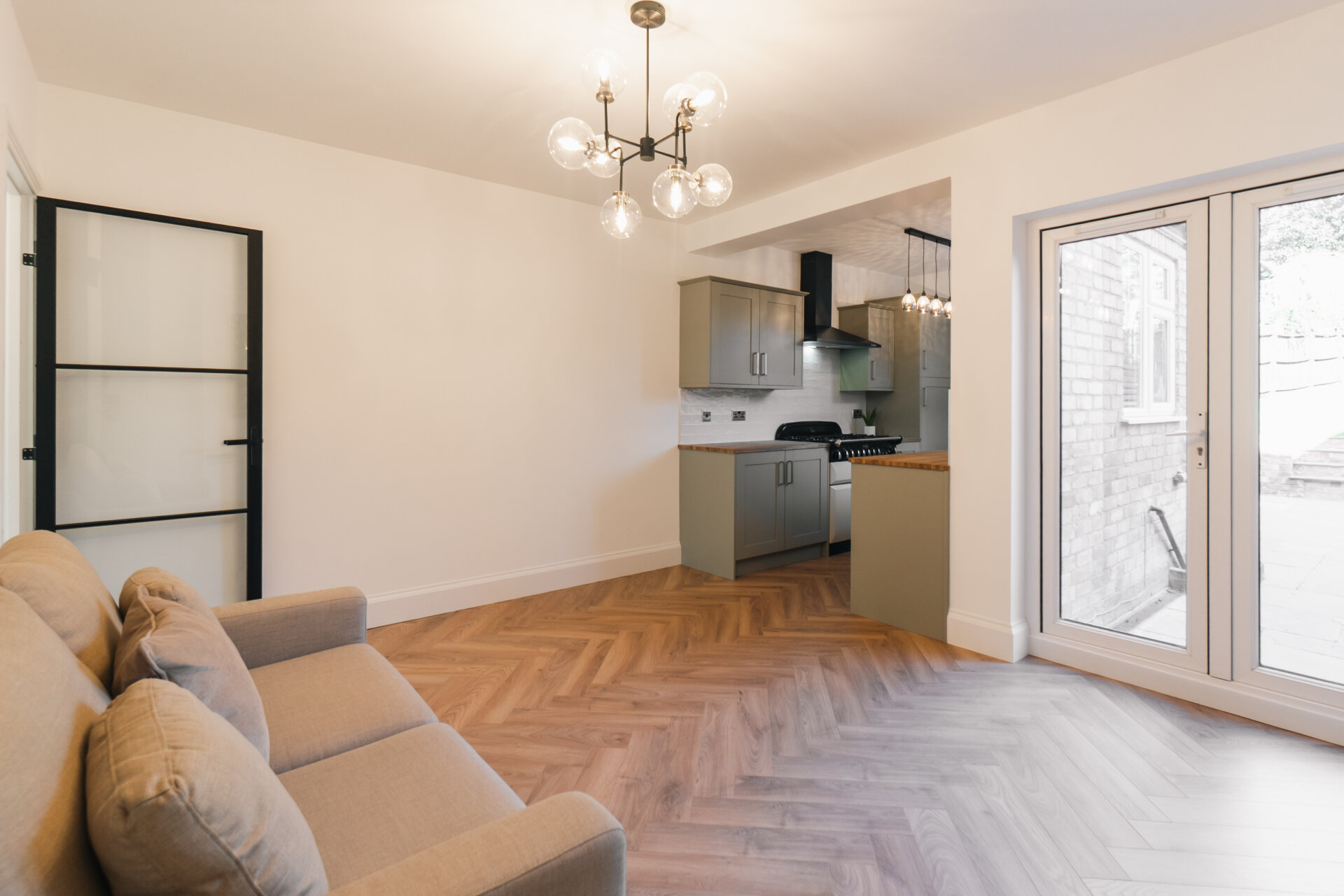 The heart of this home lies in the open-plan kitchen/dining area located at the rear of the property. This space seamlessly transitions to the beautifully landscaped rear garden through French doors, offering a perfect harmony between indoor and outdoor living. The newly fitted kitchen offers space for integrated fridge freezer, as well as plumbing for an integrated washing machine and dishwasher. A ground floor shower room, housing a walk in shower, w/c and wash basin can also be located on the to the rear aspect.
