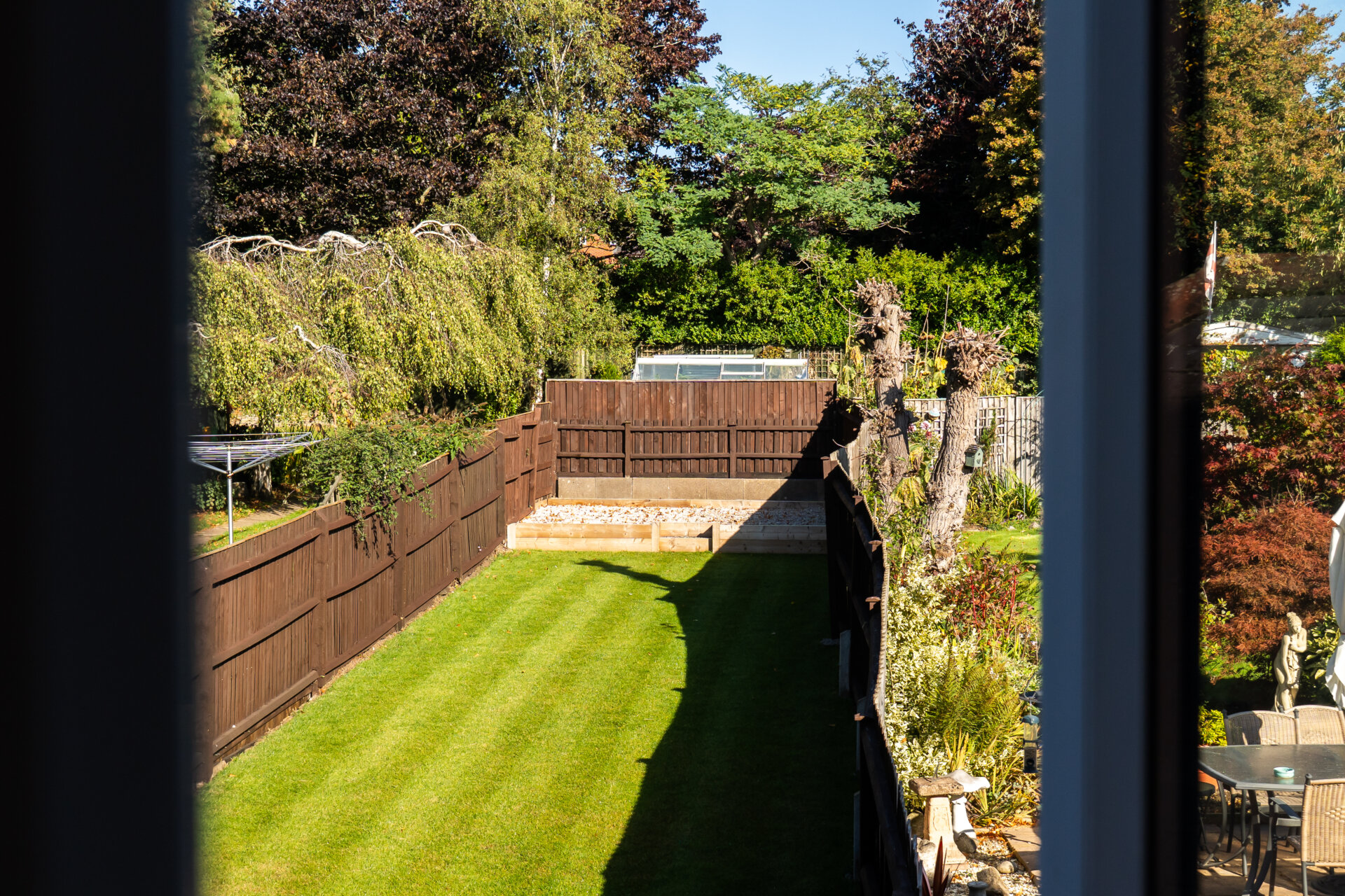 Outside, the rear garden beckons with its meticulously crafted design. Featuring a charming patio area, a lush lawn, and a secluded seating space, this outdoor haven provides the ideal setting for unwinding.