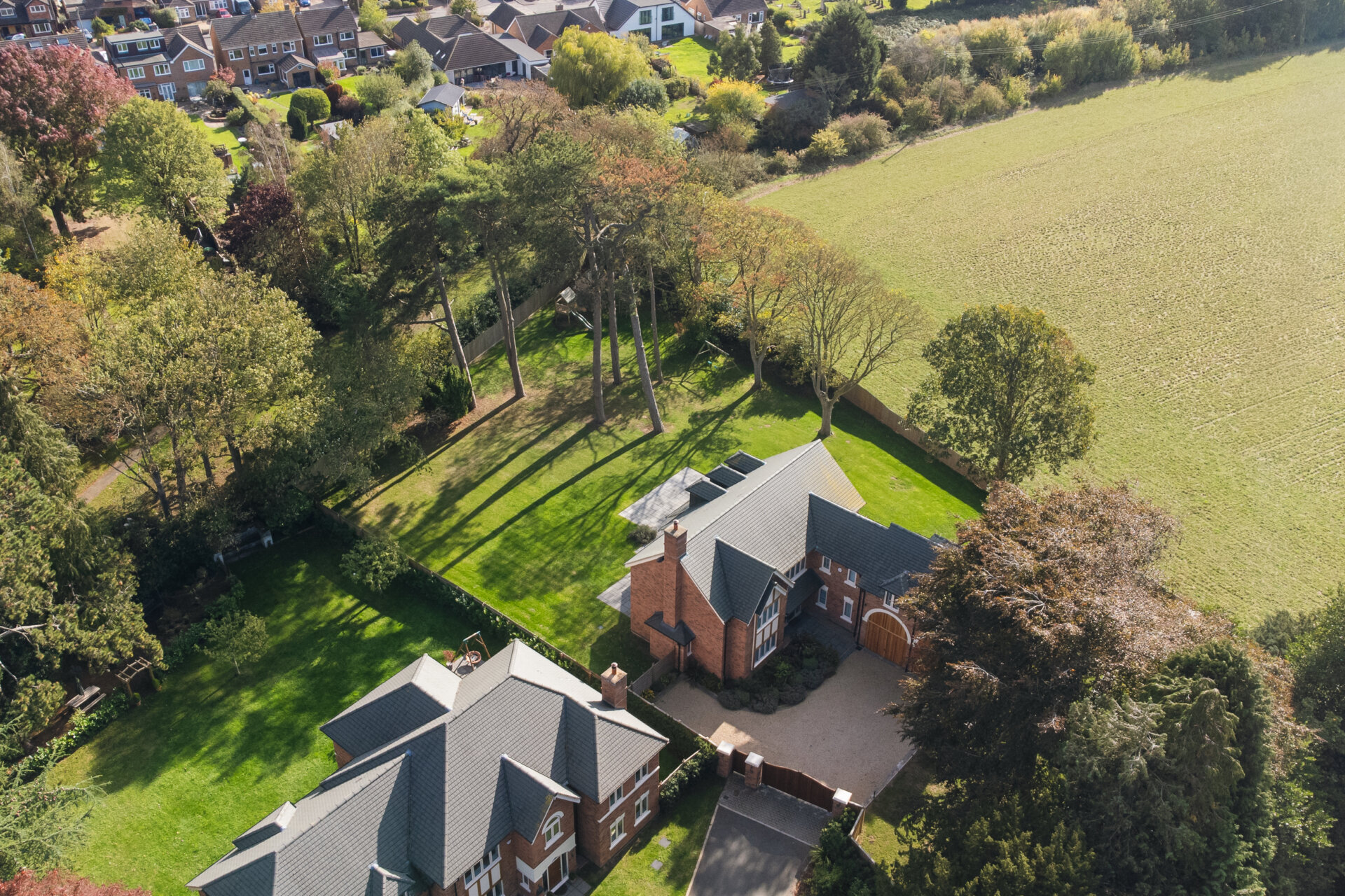 A five-bedroom detached family home of over 3,000 sq feet on a half-acre plot, home office/gym with breathtaking views, nestled behind its own gates on a small exclusive development, no upward chain,