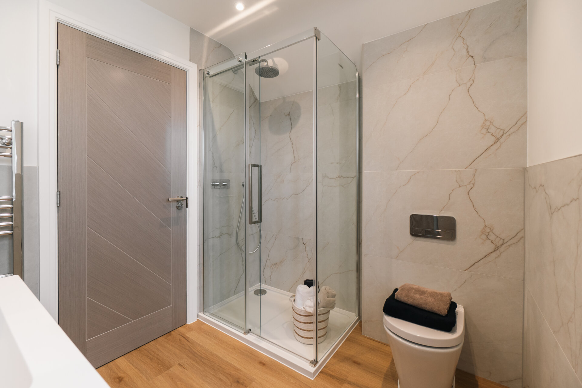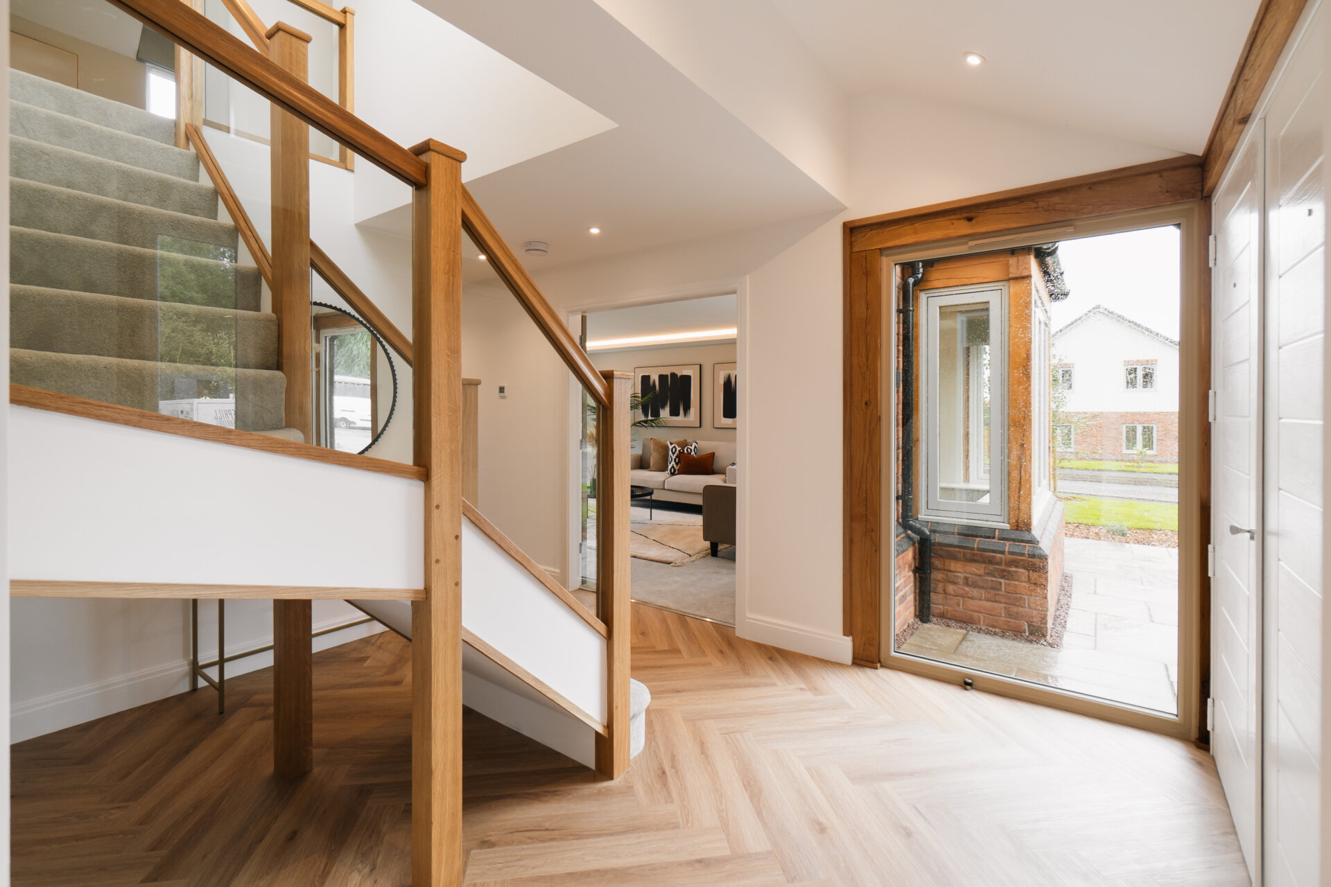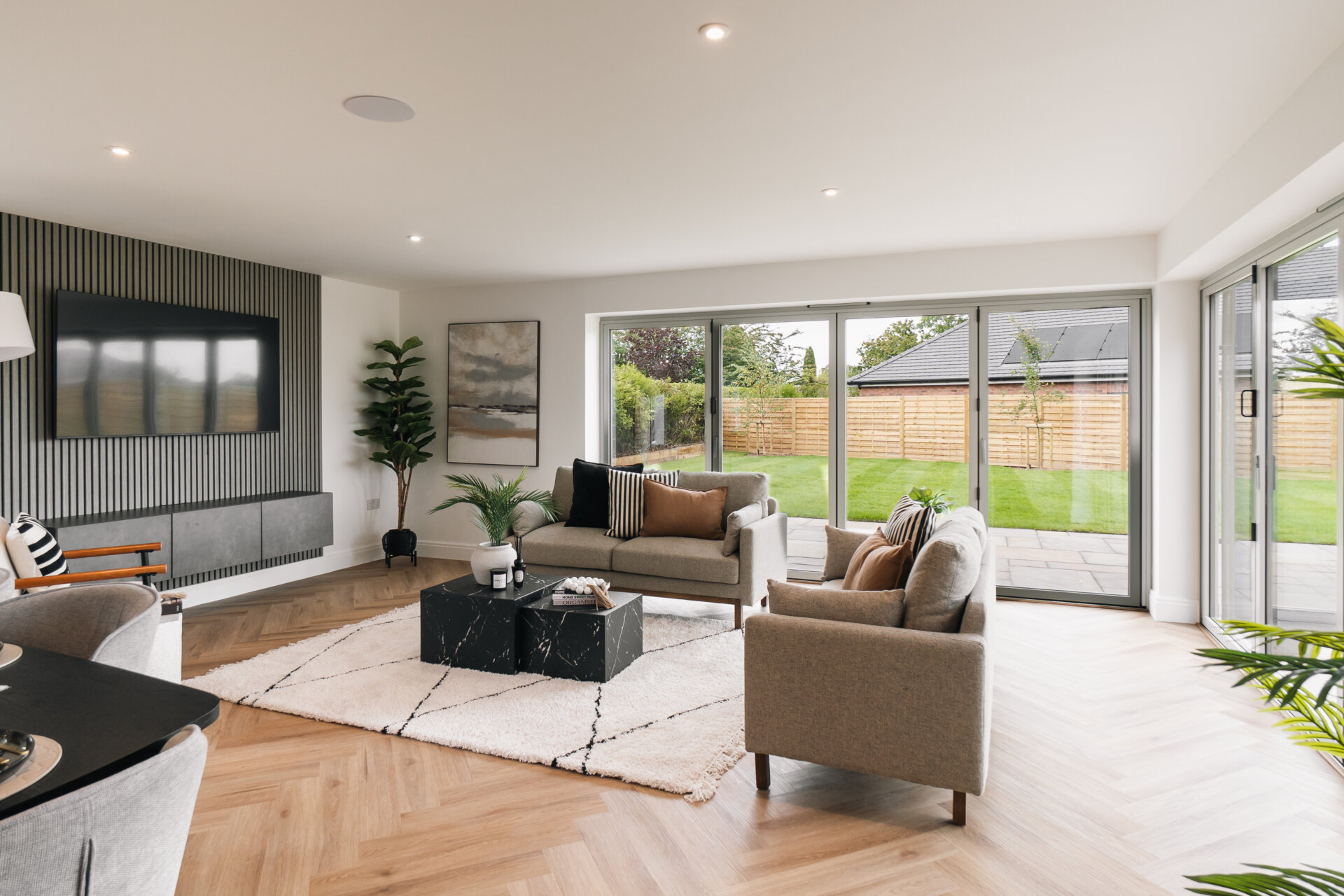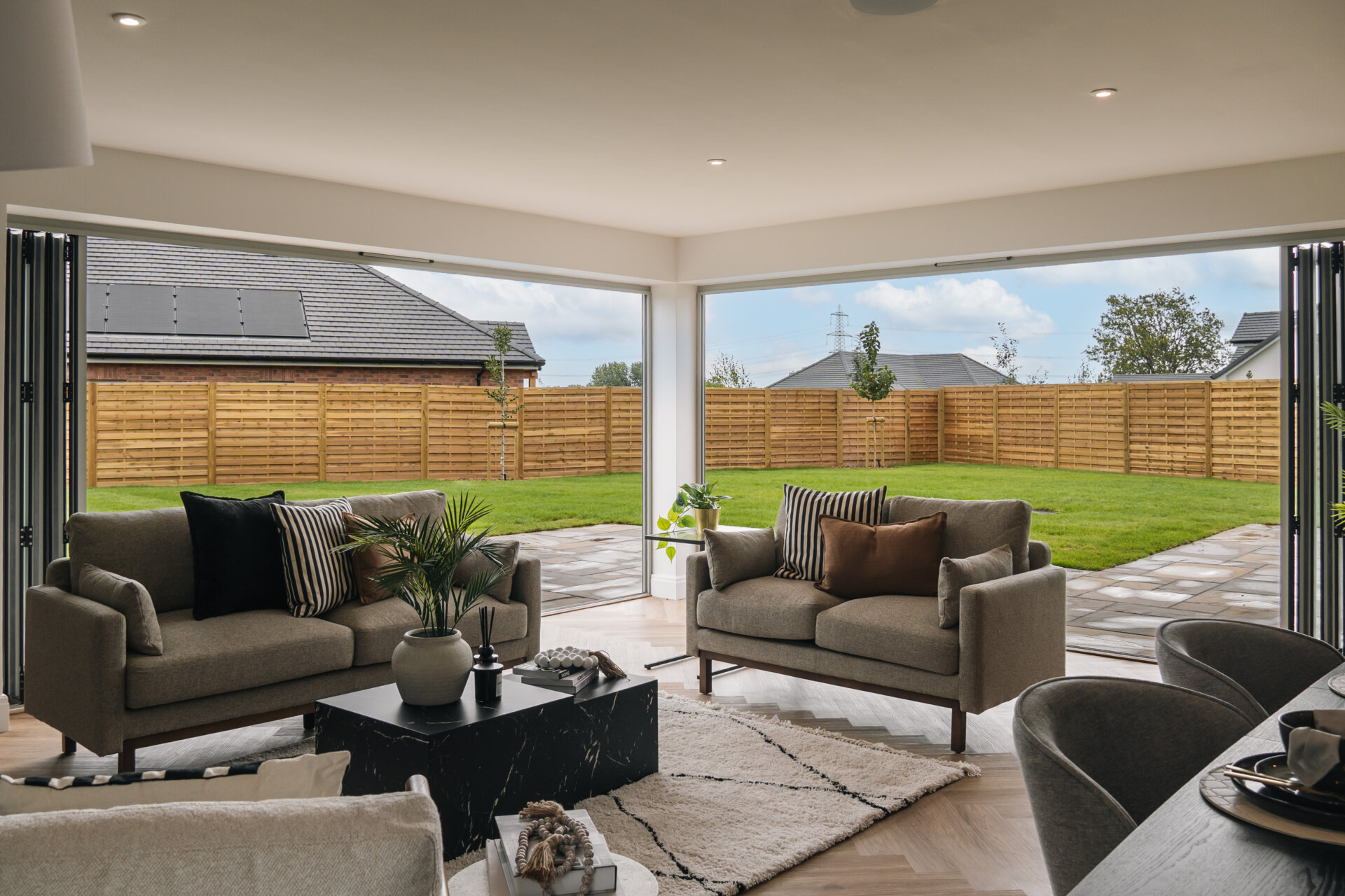 Plot 5 has been designed with efficiency in mind, making it as practical to run as it is beautiful to live in. Fitted with solar panels and an air source heat pump, the home benefits from renewable energy sources that reduce running costs while ensuring year-round comfort. Underfloor heating extends throughout the ground floor, adding a discreet layer of everyday luxury.