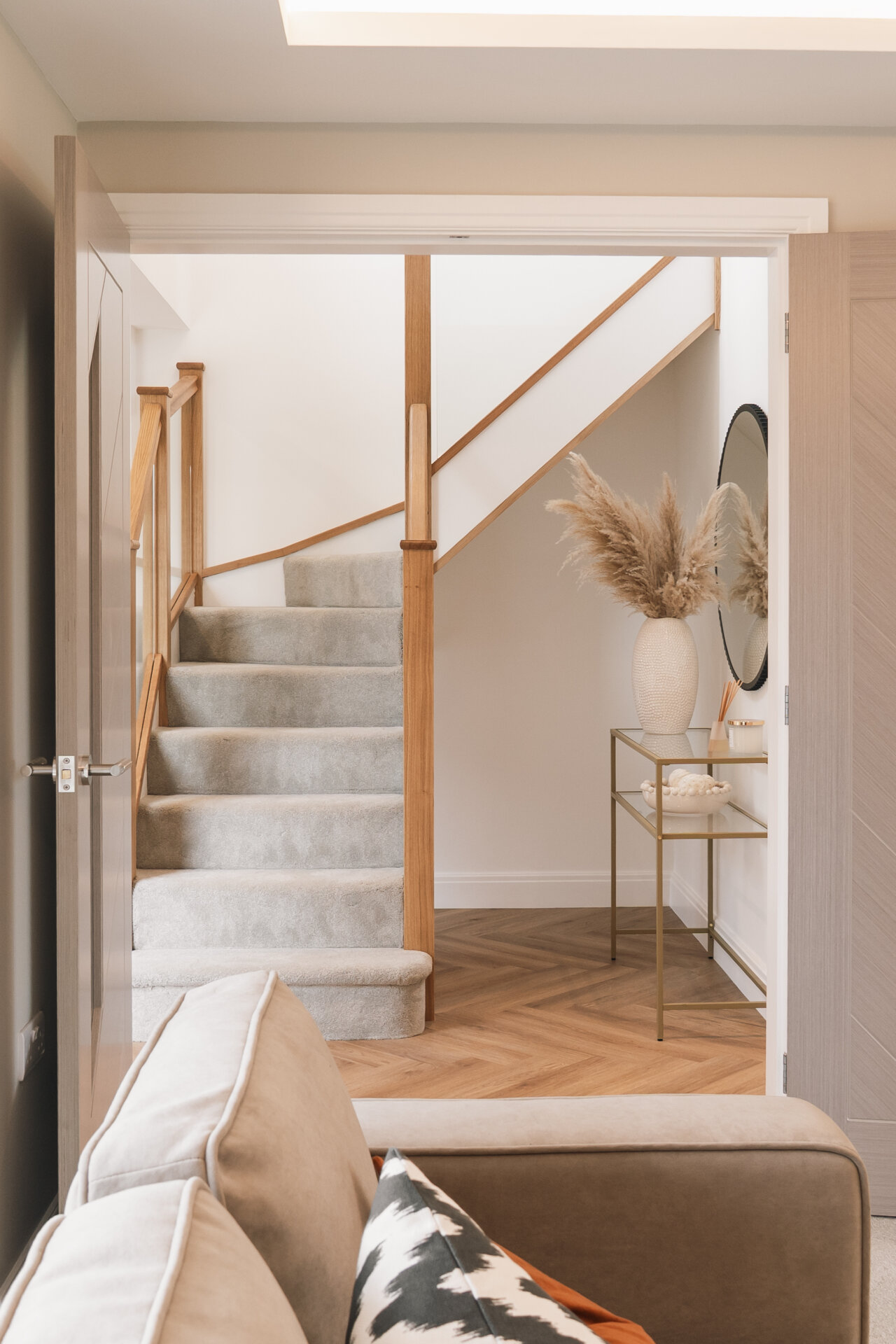 On arrival, the generous proportions of the home are immediately clear. A striking double-height entrance hall creates an instant sense of scale and light, setting the tone for the interiors beyond.