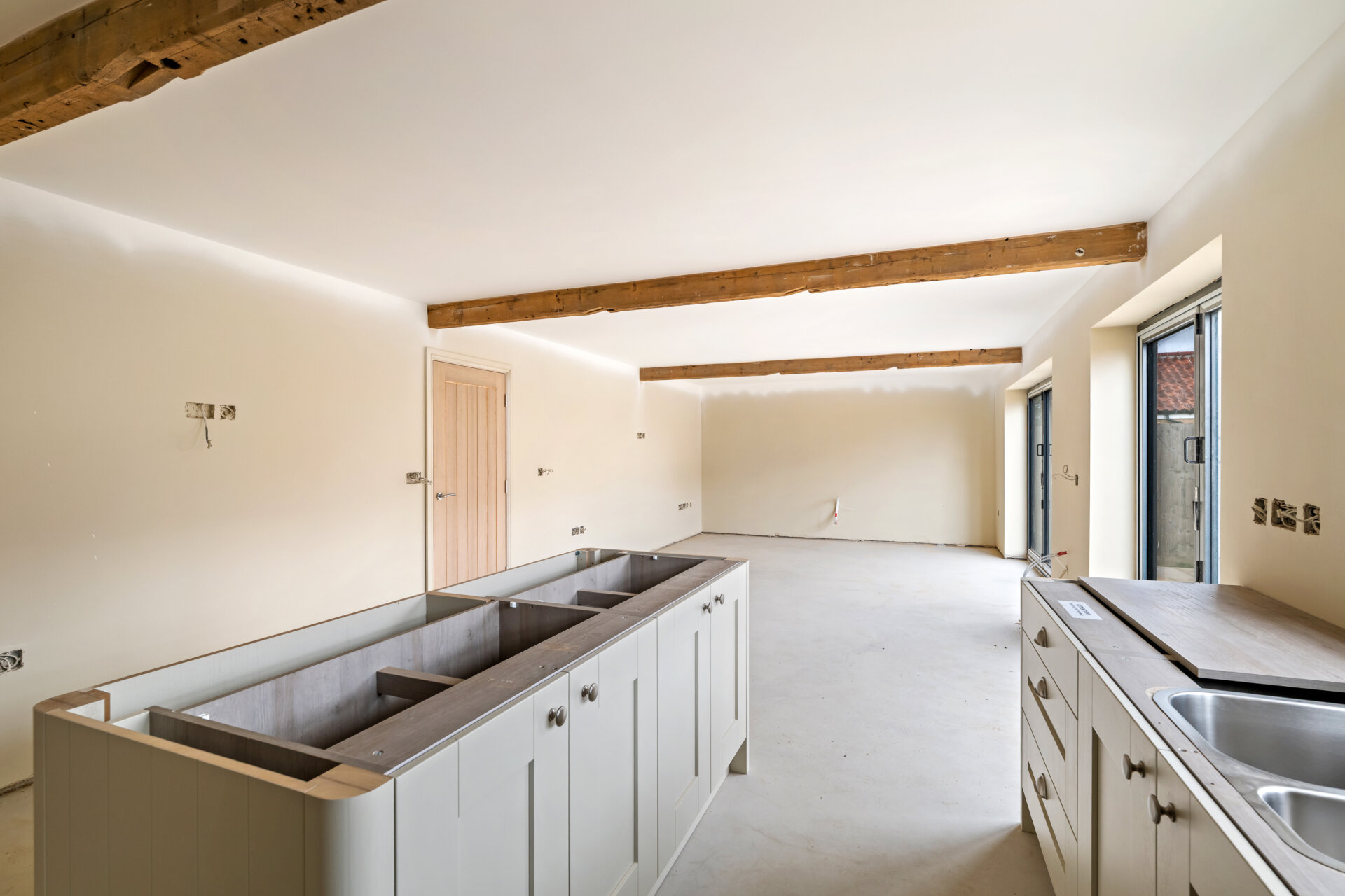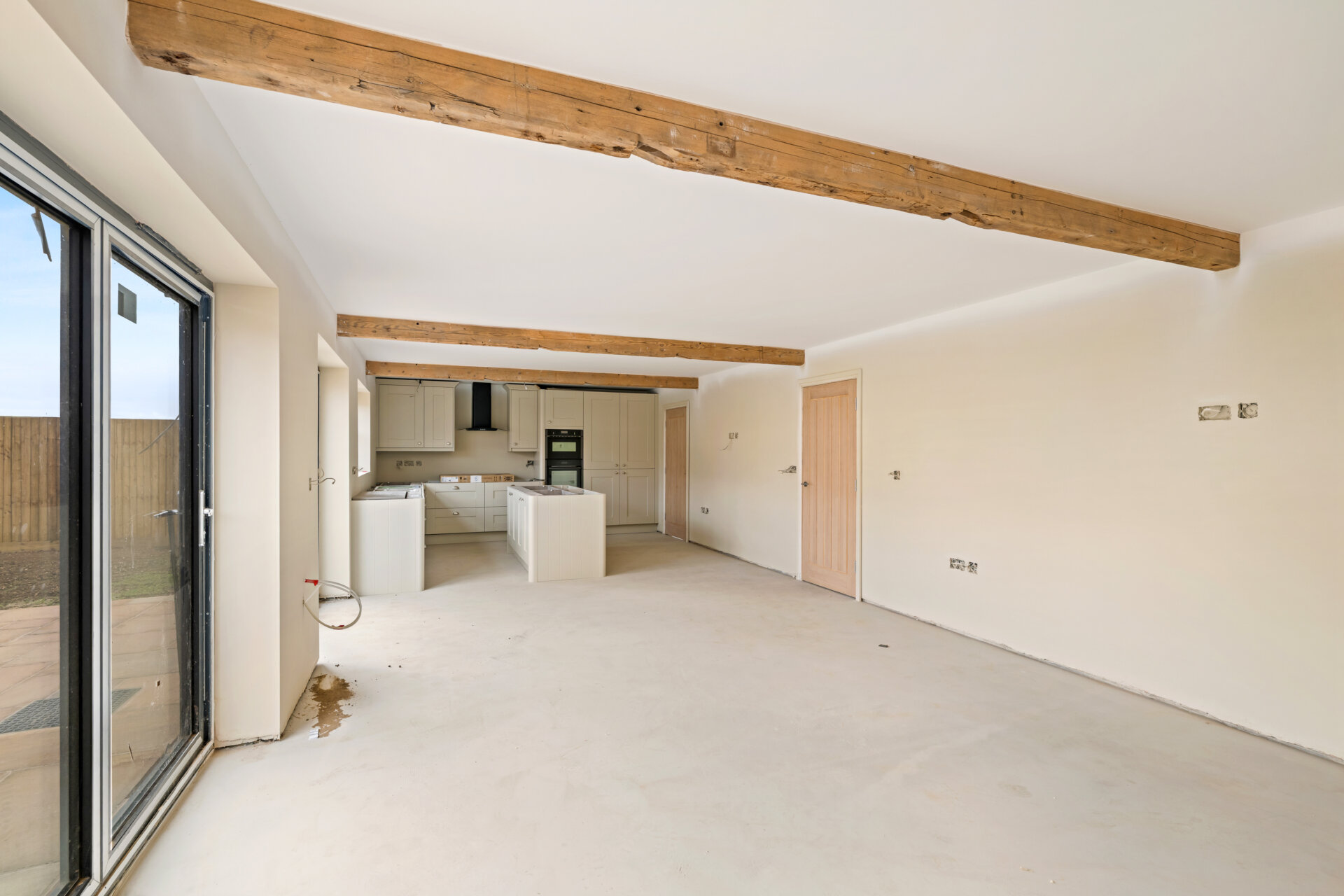 Stunning feature beams to open plan kitchen/diner/lounge