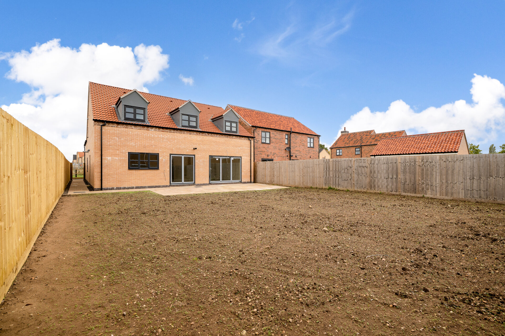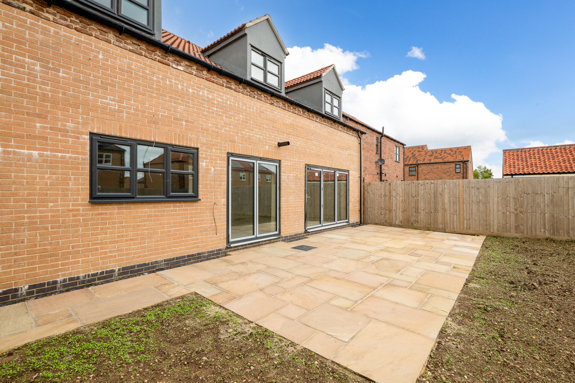 Indian Sandstone patio and seeded front and rear garden