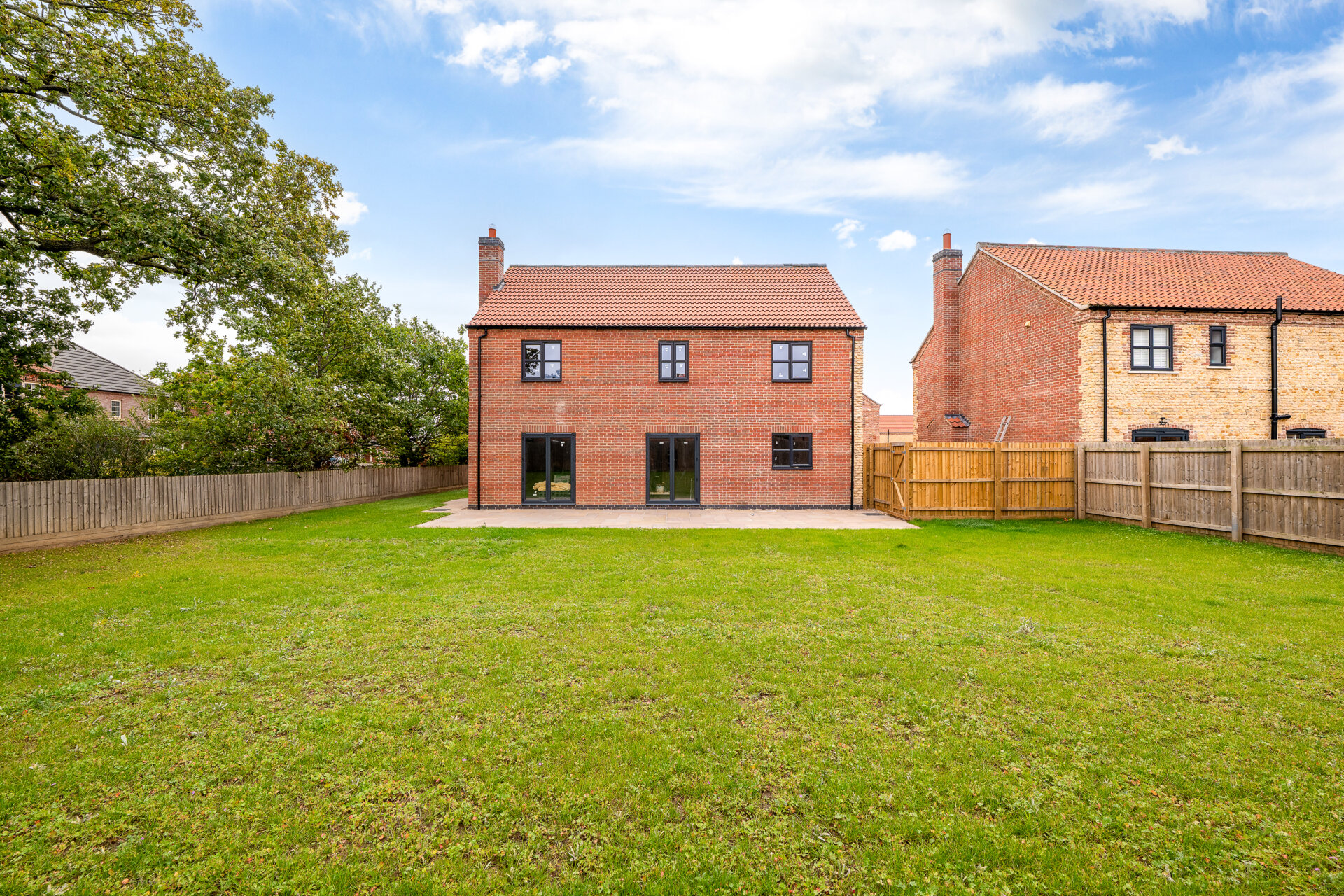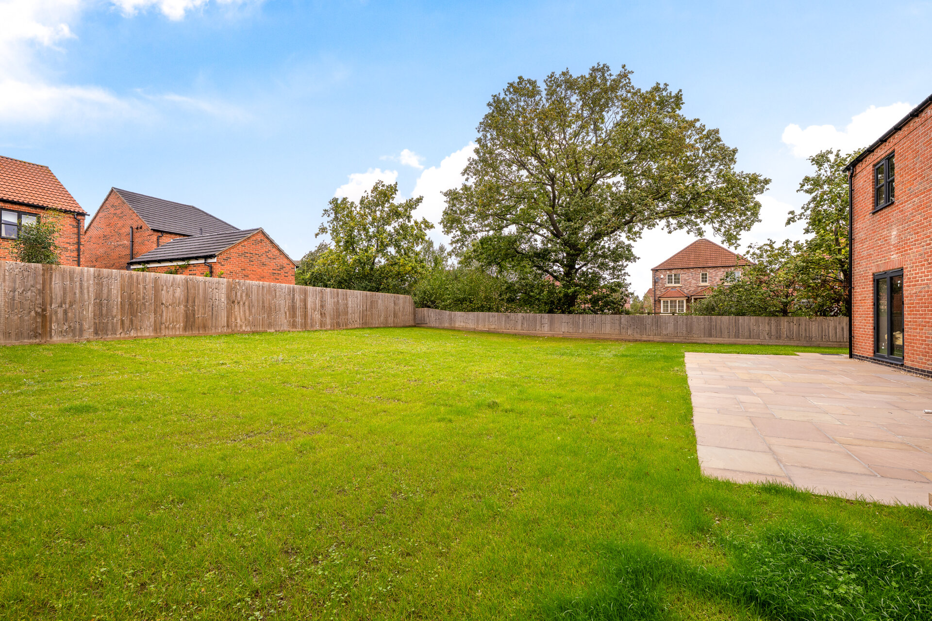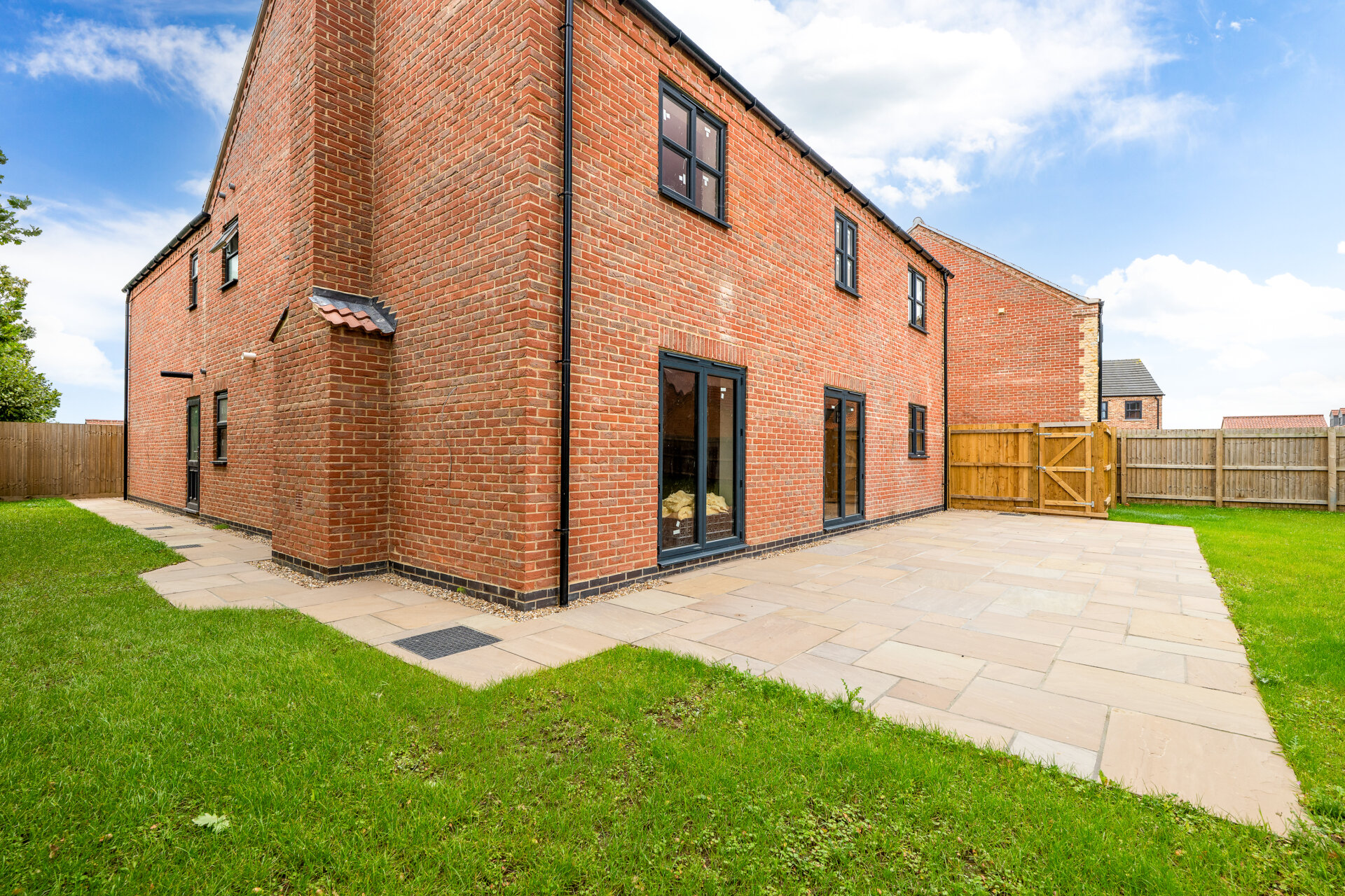 Indian Sandstone patio and seeded front and rear garden