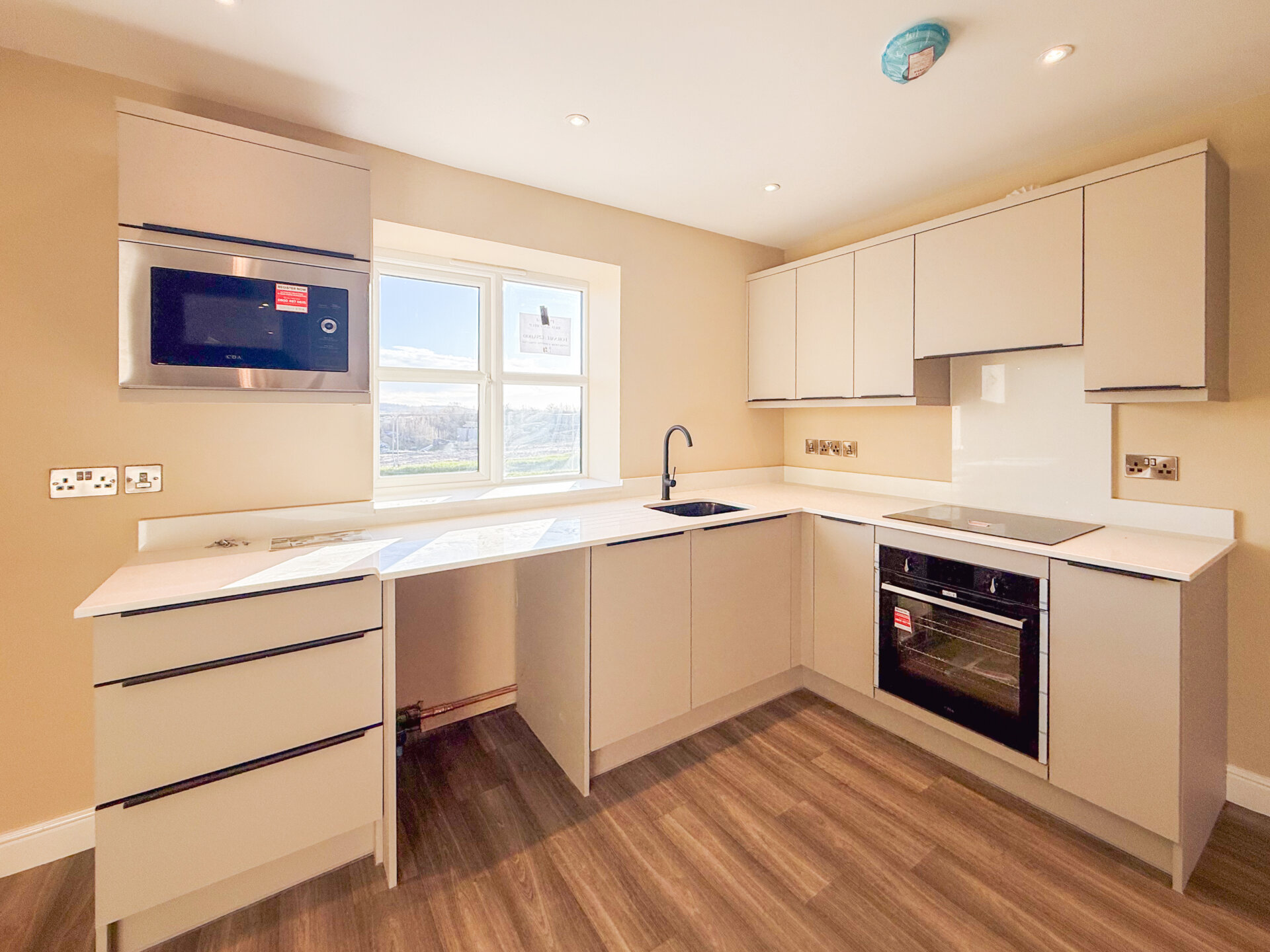 Integrated CDA appliances included: microwave, oven, induction hob, dishwasher and extractor fan