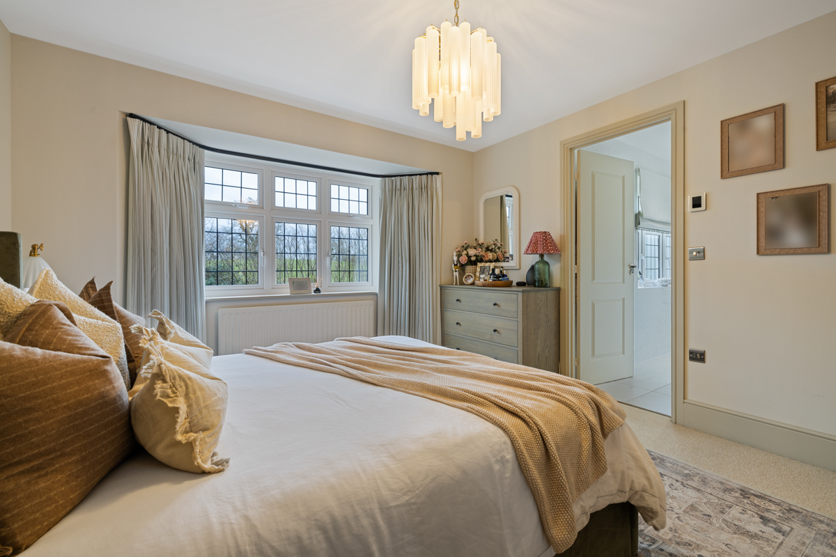 The principal bedroom is particularly spacious and benefits from a bespoke walk-in wardrobe and a en-suite bathroom with a separate rainfall shower, creating a comfortable and well-appointed retreat.