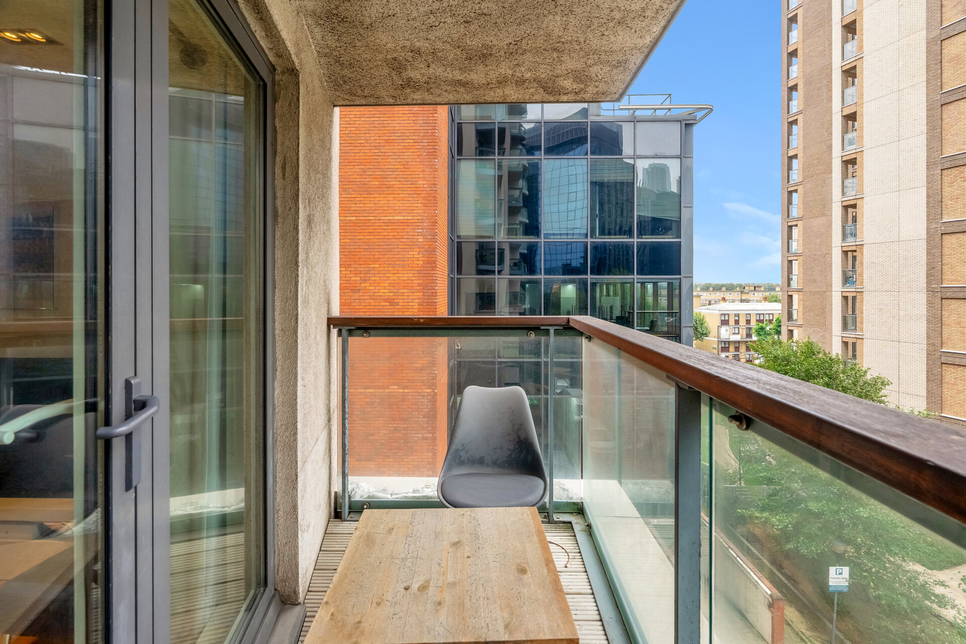 The property offers bright, well-proportioned living spaces enhanced by floor-to-ceiling windows, allowing an abundance of natural light throughout. The double bedroom includes fitted wardrobes, and the bathroom is modern. The open-plan kitchen/reception provides ample space for living, dining and cooking. The reception room opens onto the balcony.