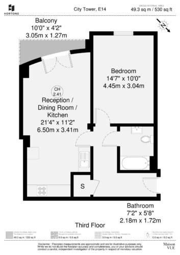 1 bed Canary Wharf apartment on the 3rd floor with private balcony. Bright living spaces, double bedroom, open-plan kitchen/reception. Close to shops, restaurants, transport links.