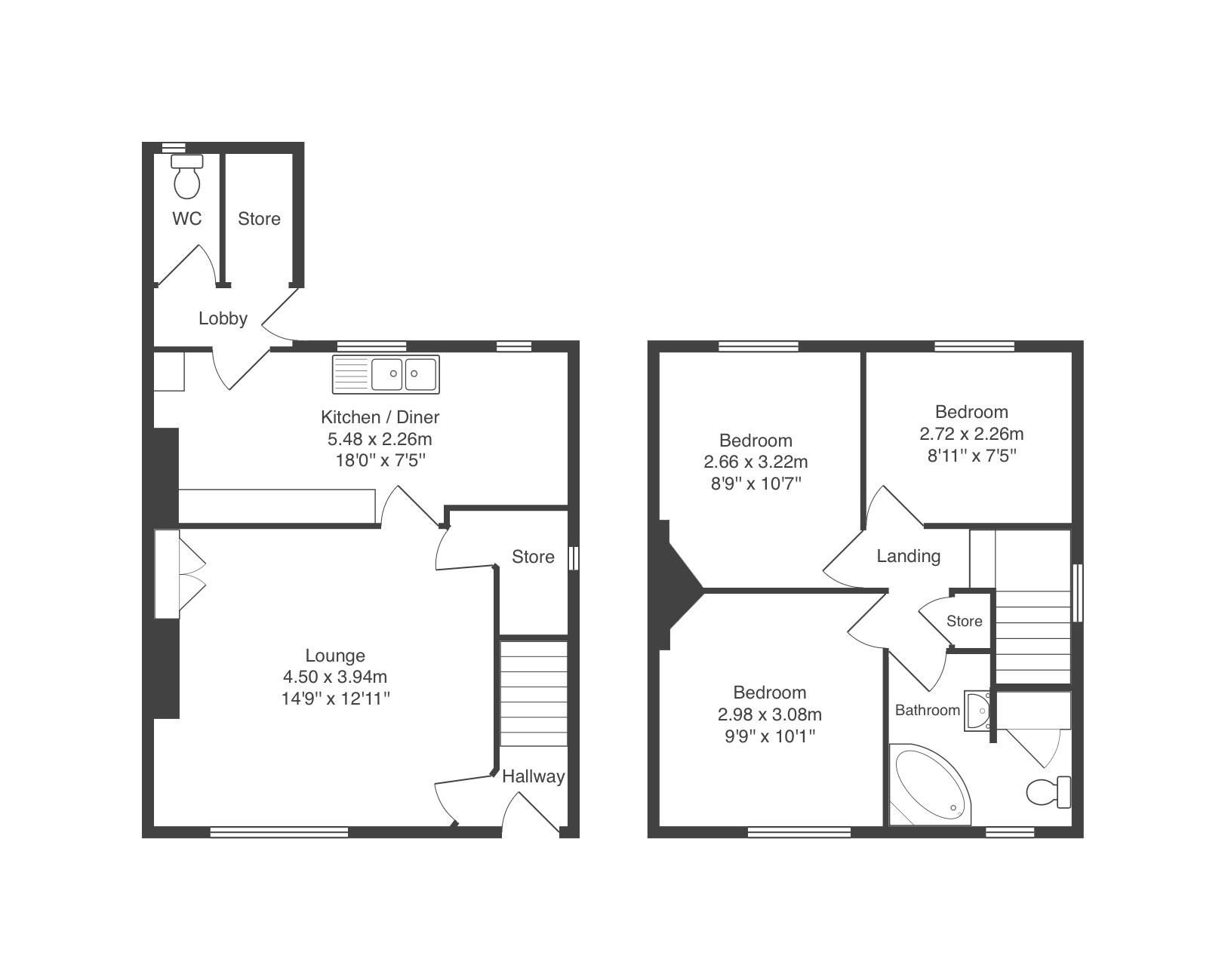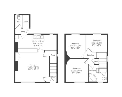 Upon entering the property, you are greeted by a traditional layout including a hallway lounge and kitchen and diner. Theres a small lobby beyond the kitchen giving access to a WC and storage room. On the first floor are three bedrooms along with the bathroom.