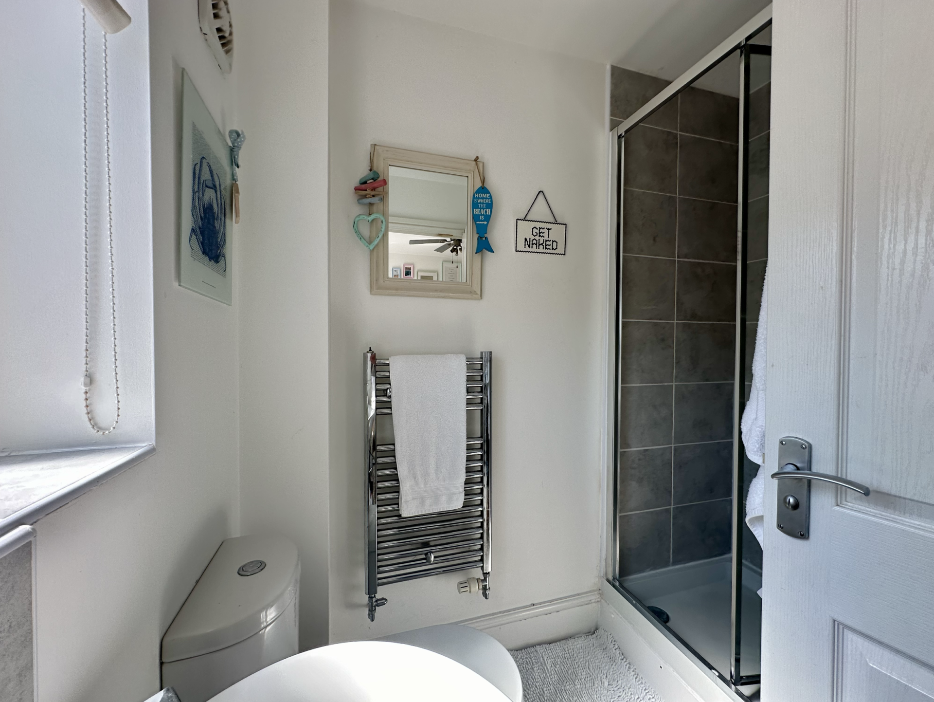 Upstairs, you will find three well-proportioned bedrooms and a family bathroom. The master bedroom is a standout feature, boasting an ensuite shower room and fitted storage. Natural light floods the property, creating a bright and airy atmosphere throughout.
