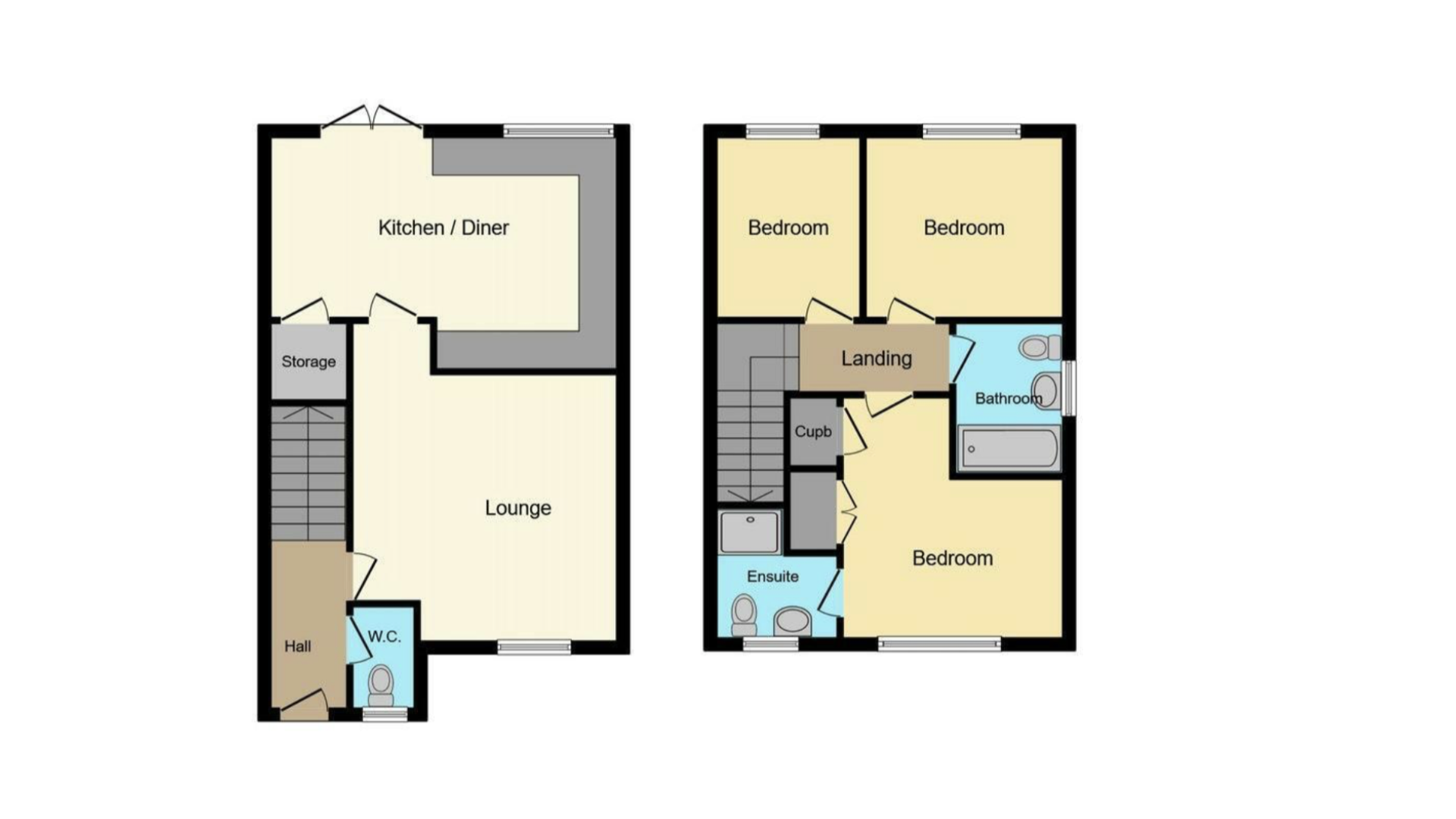 Upon entering, you are greeted by an entrance hall, which provides access to a convenient WC, the staircase to the first floor, and the comfortable lounge. The lounge leads seamlessly to a spacious kitchen diner, a perfect space for family meals and entertaining. The kitchen diner opens onto the rear garden, allowing for easy indoor-outdoor living.