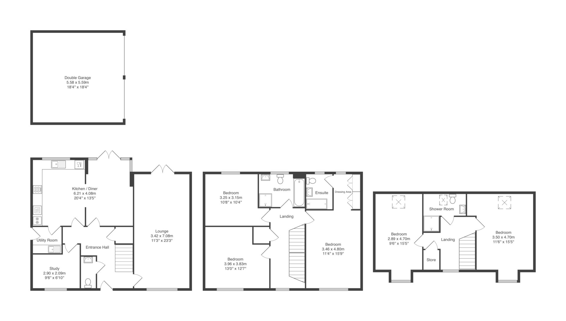 Ascend to the first floor where there are three double bedrooms and family bathroom. The principle bedroom is generous in size with a dressing area, plentiful clothes storage and an en-suite shower room.