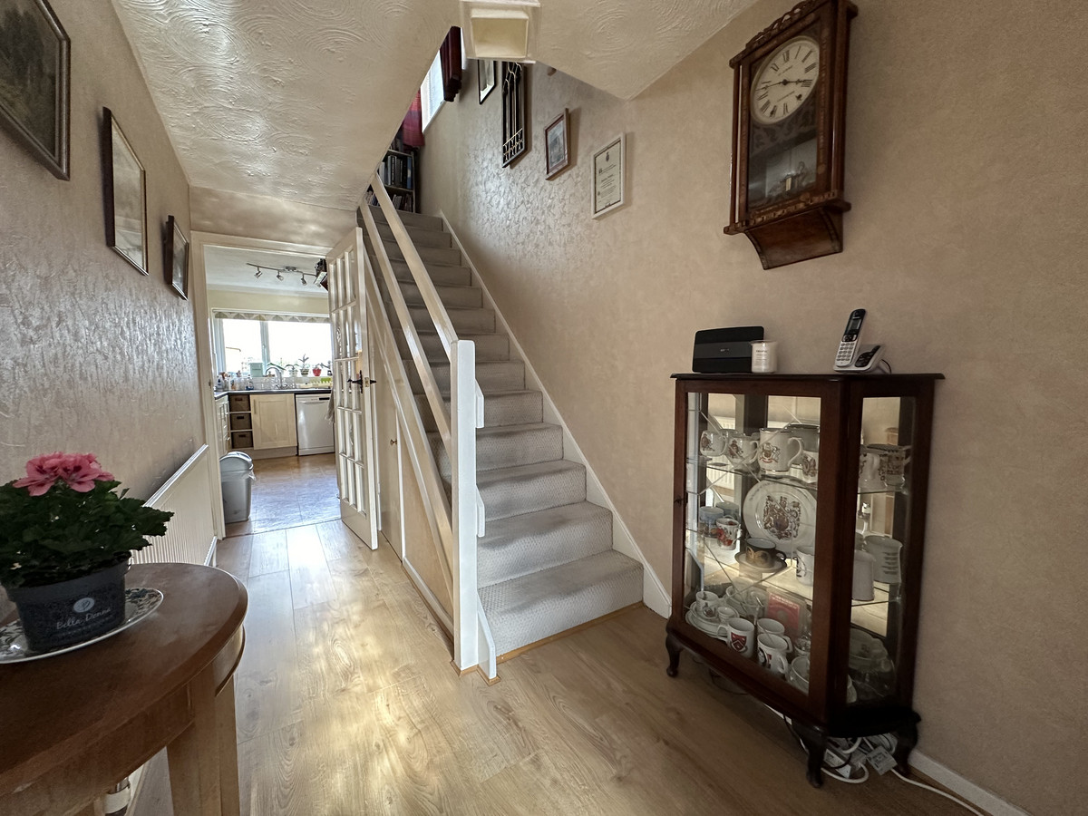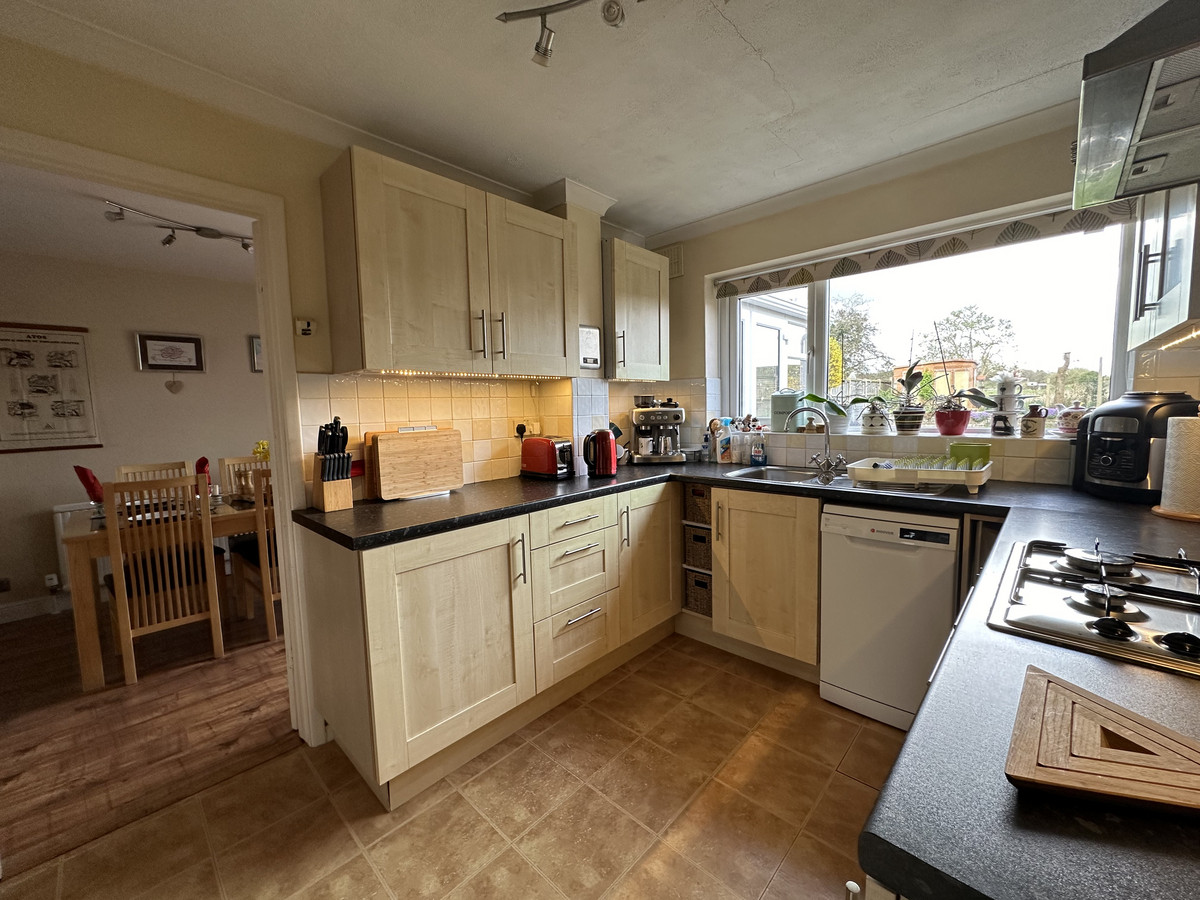 Flowing seamlessly from the lounge is the dining room, offering an ideal space for entertaining guests or enjoying family meals. From here, access is granted to the well-equipped kitchen. with delightful garden views.