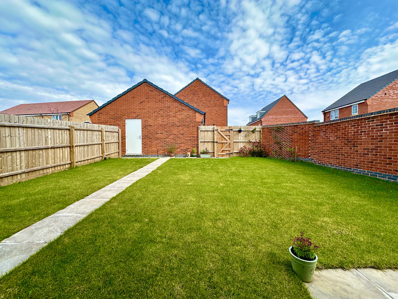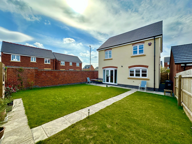 Starting with the rear garden, you'll find it's a great space, particularly for a newer build, mainly laid lawn with a patio area. There is a single detached garage, as well as off-road parking in front of the garage.