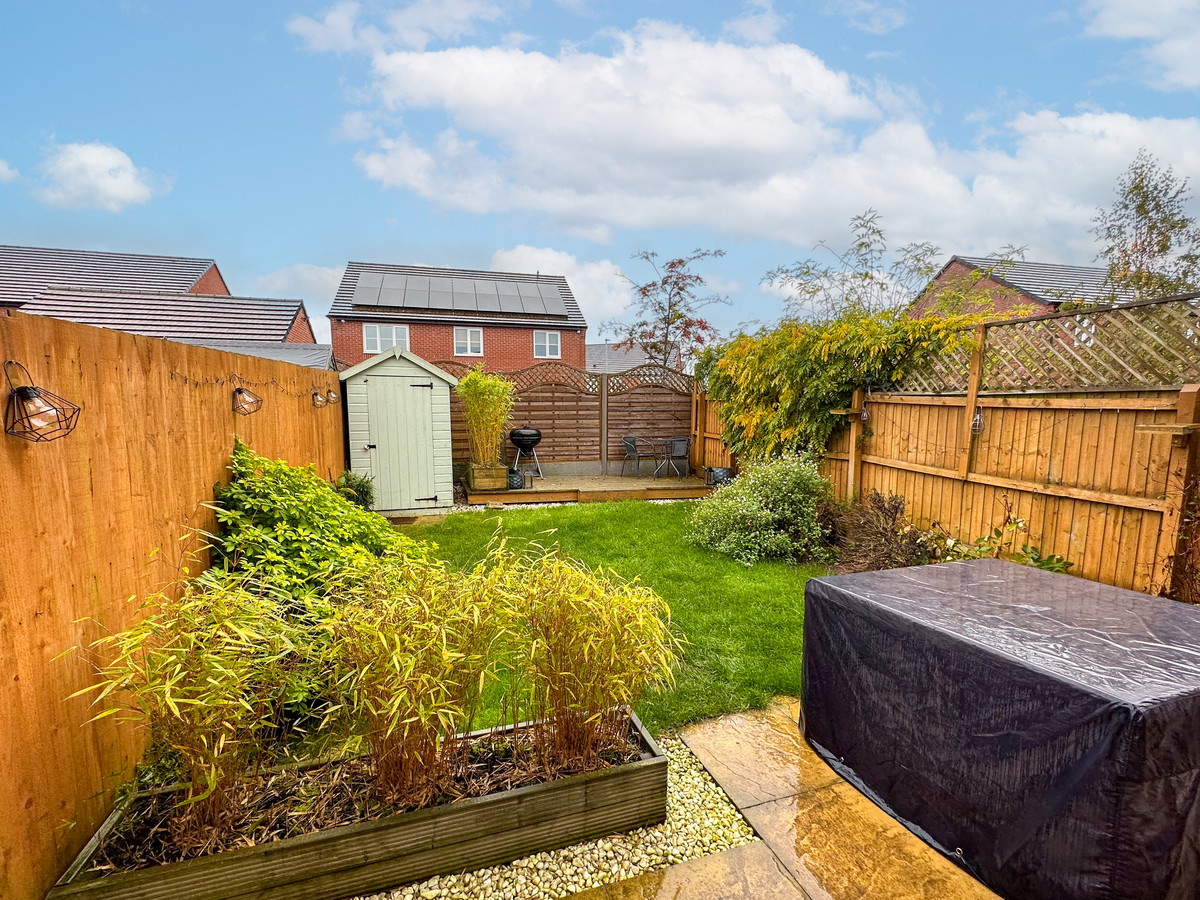 Outside, the property is tucked away in a peaceful cul-de-sac with room for two cars to park off-road. The landscaped rear garden features a patio area, a lush lawn, a decking area, a convenient storage shed, and side gated access.