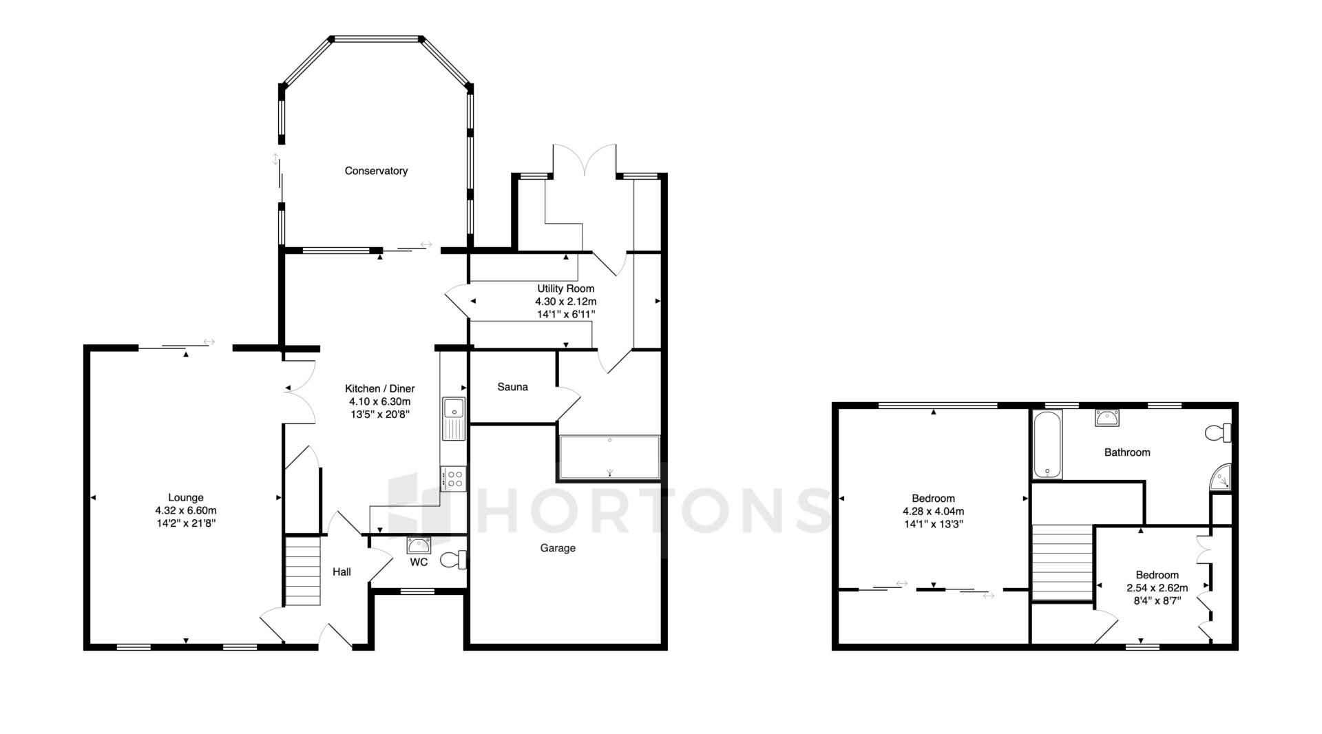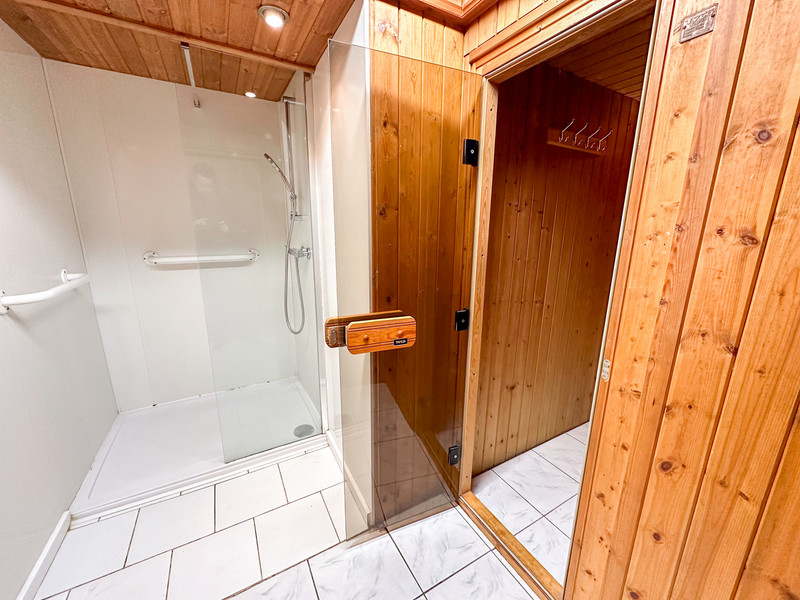 Step through the entrance hall, recognising the potential for light modernisation. A downstairs WC leads to a spacious lounge and kitchen, offering a canvas for your creative vision. The addition of a conservatory brings natural light, highlighting the potential for a warm and inviting living space. The kitchen extends to two utility rooms, providing practical solutions, while an unexpected inner hallway reveals a sauna and shower.