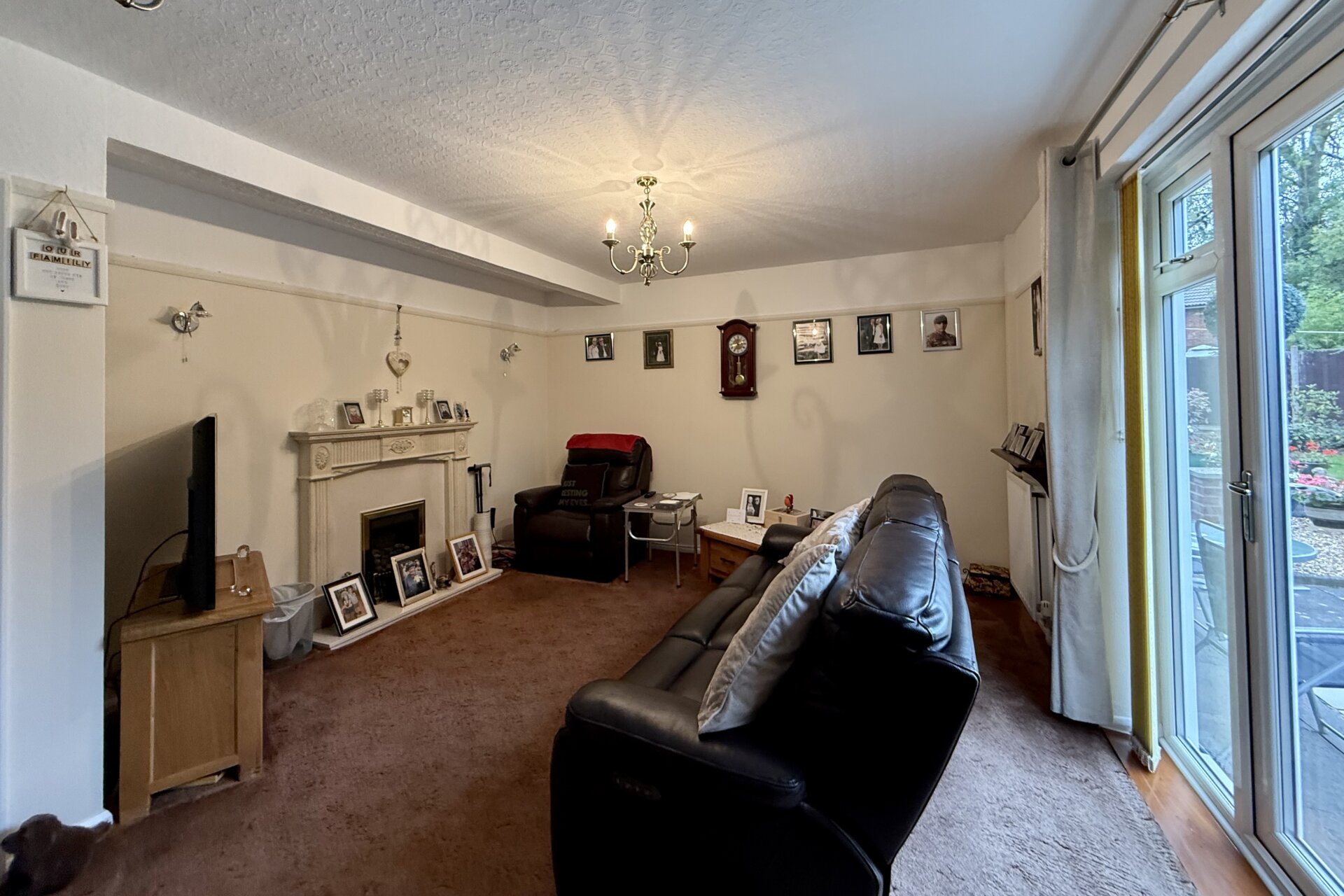The spacious lounge sits to the rear of the property and enjoys a pleasant outlook over the garden through a patio door with windows either side. This light-filled room offers plenty of space for both living and dining furniture, making it a comfortable and sociable space to relax and entertain.
