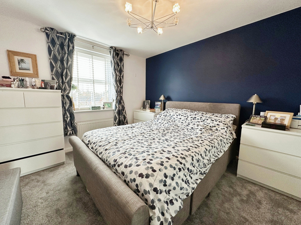 Upstairs, discover three inviting bedrooms. The master suite offers a peaceful retreat with its own ensuite bathroom and fitted wardrobes, ensuring a blend of luxury and convenience. Two additional bedrooms offer versatility, while a well-appointed family bathroom caters to everyday needs.