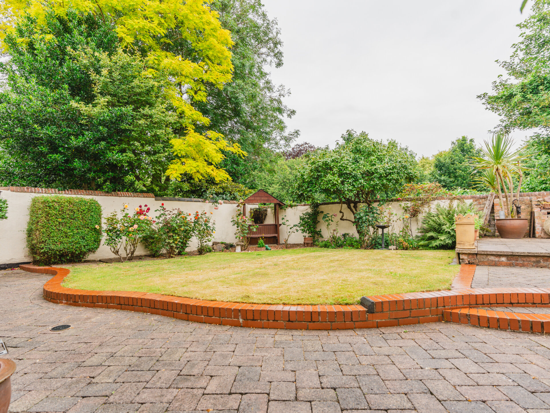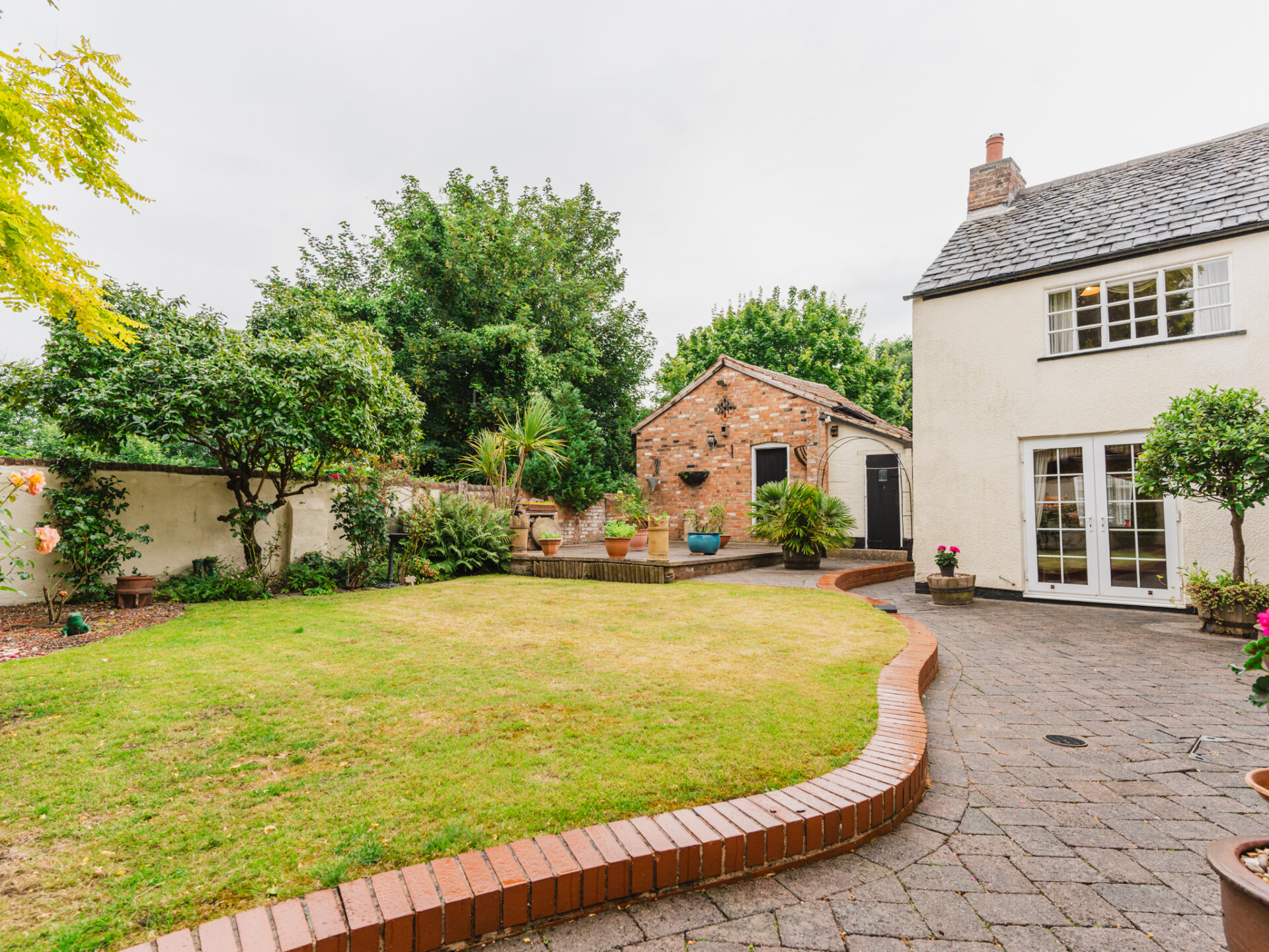 Outside, a well established, private, East-facing garden has been beautifully landscaped with a leafy backdrop surrounding the entire space. The garden has been designed with mindful intention, ensuring the outside spaces are enjoyed as much as the interior. The east-facing raised paved patio area is a quiet sun-trap, while the dining area on the lower terrace is perfect for alfresco dining from midday until sunset. Raised shrubbery, established fruit trees, and rosebuds provide lasting colour and interest through to the late autumn months.