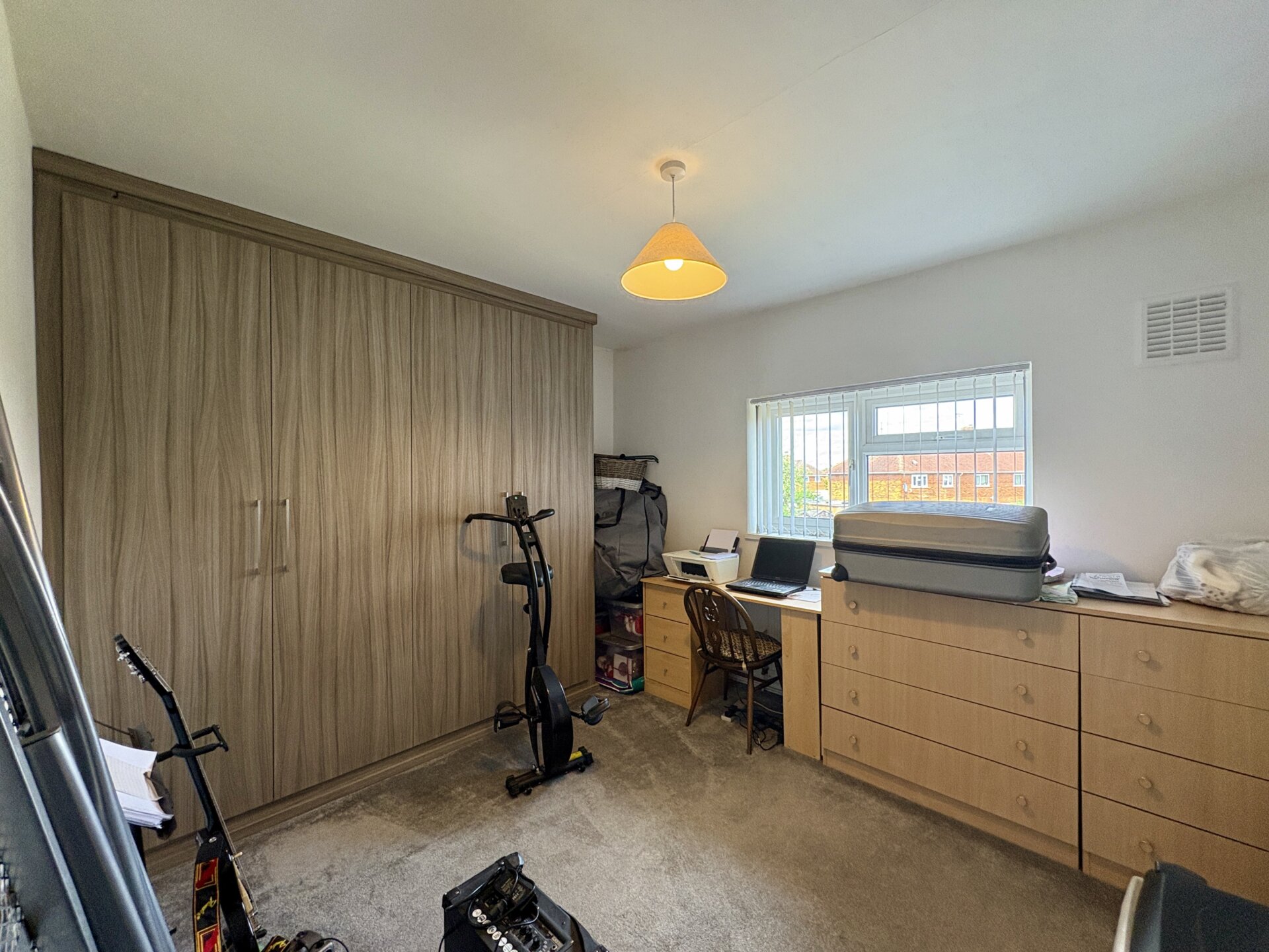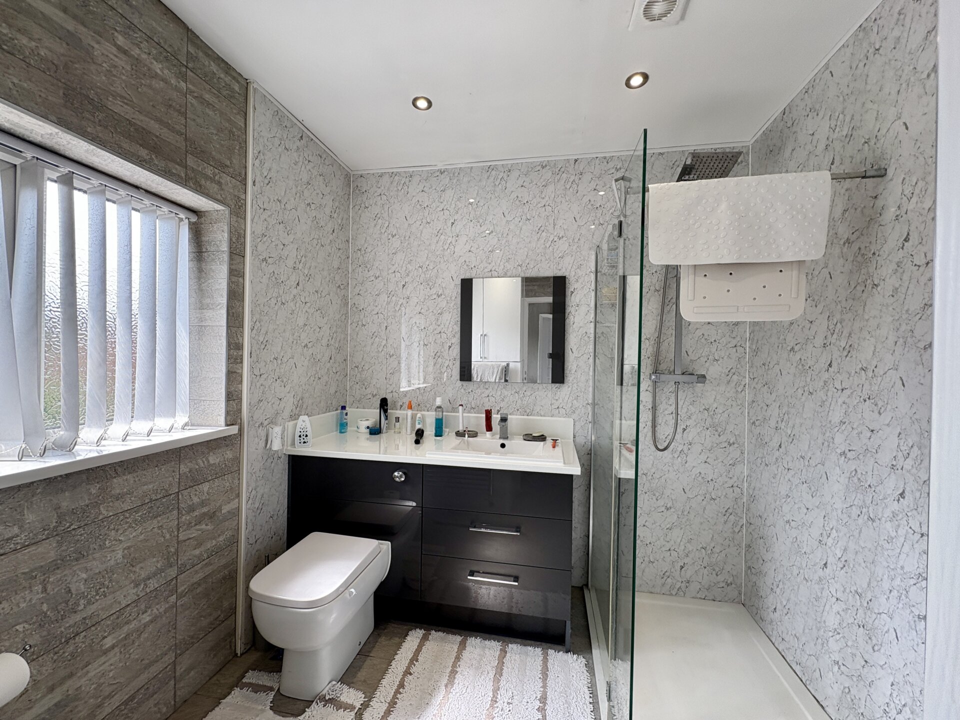 Upstairs, there are three double bedrooms, each offering generous proportions and versatility, along with a sleek and contemporary bathroom suite that completes the home’s stylish interior.