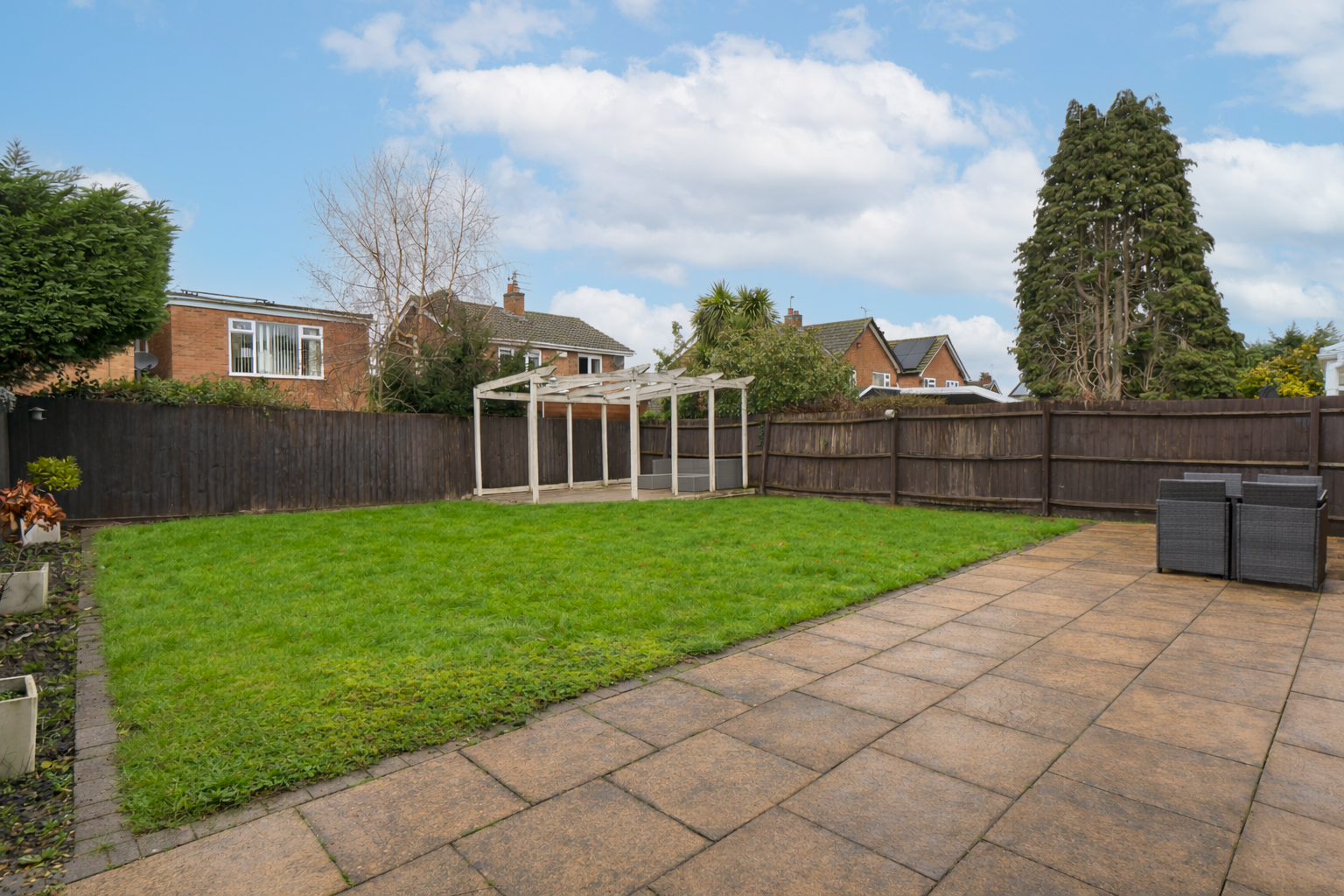 Outside, the property enjoys a delightful and secure rear garden, predominantly laid to lawn with a paved patio - perfect for children to play, summer entertaining and relaxed family time. To the front, the property is equally well presented, with a block paved driveway providing ample off road parking for two vehicles and access to the double garage, ideal for secure parking or additional storage. A well maintained lawn enhances the kerb appeal, while gated side access leads conveniently to the rear garden. The overall plot offers plenty of space for keen gardeners or families to enjoy outdoor living.
