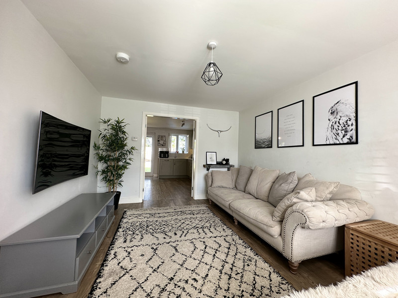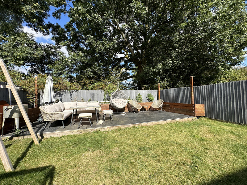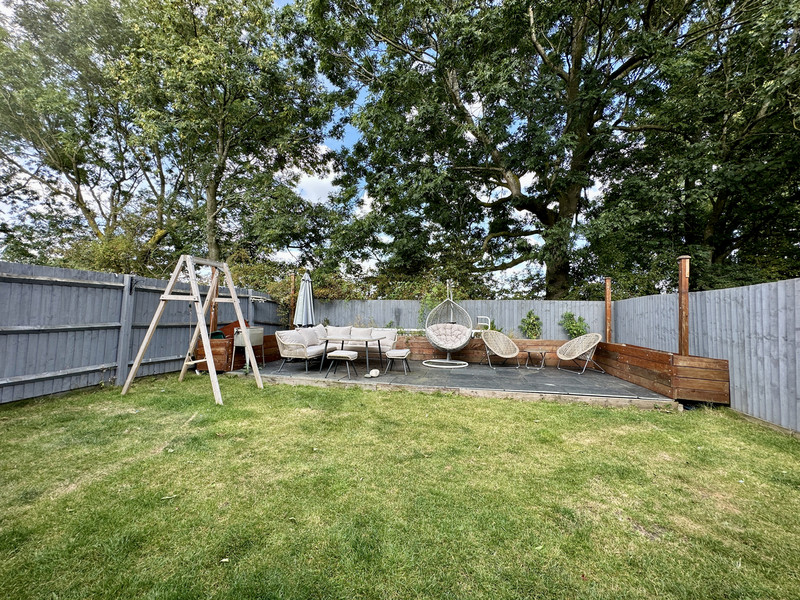 Outside, there is a lawned frontage with perimeter hedging and a driveway that leads to a single garage with an up and over door. The rear garden is lovely outside space that has a raised seating area that backs onto open fields and provides a great outside entertaining area. The remaining garden is laid to lawn and there is an outside water tap and lighting.
