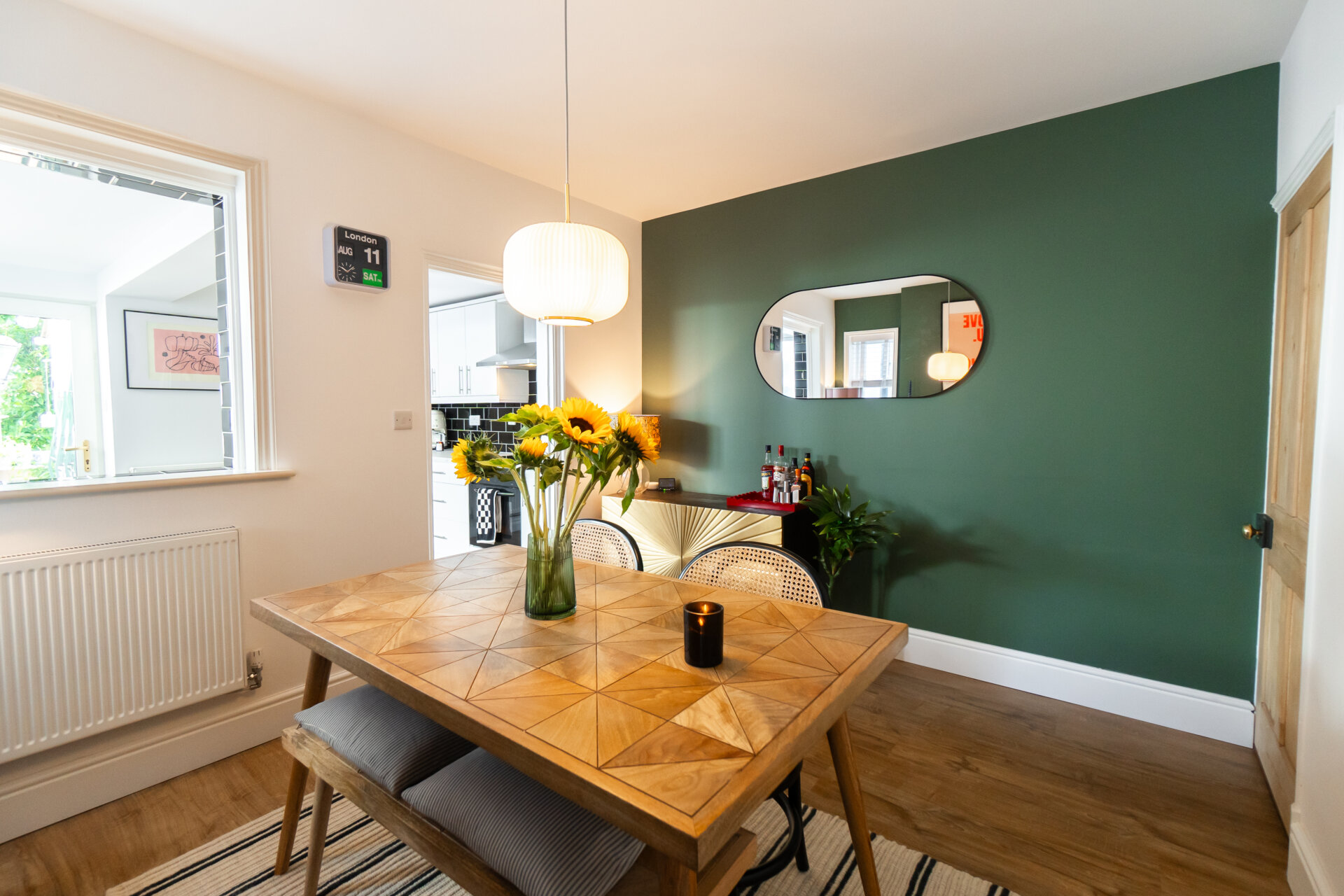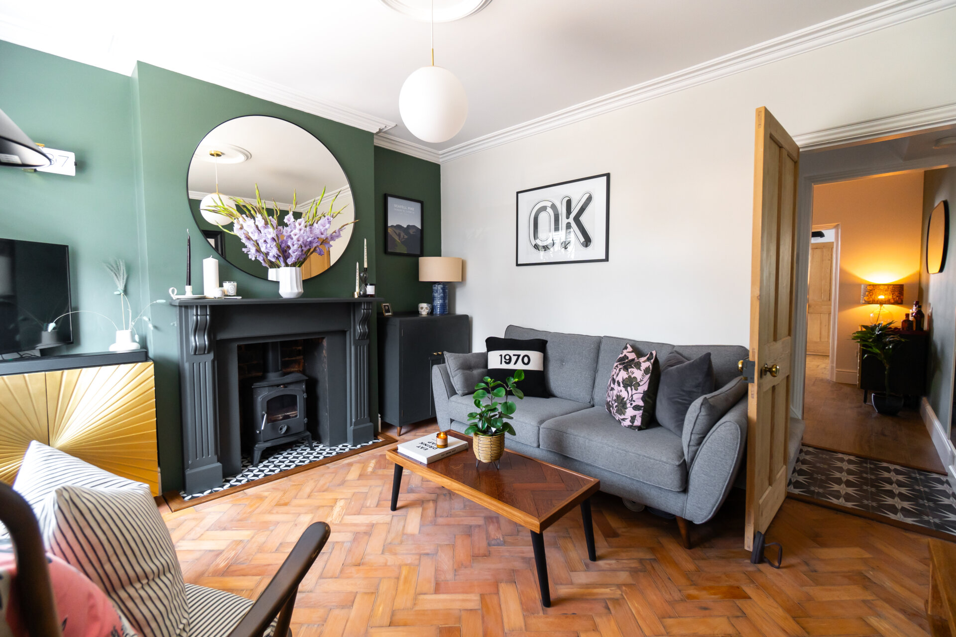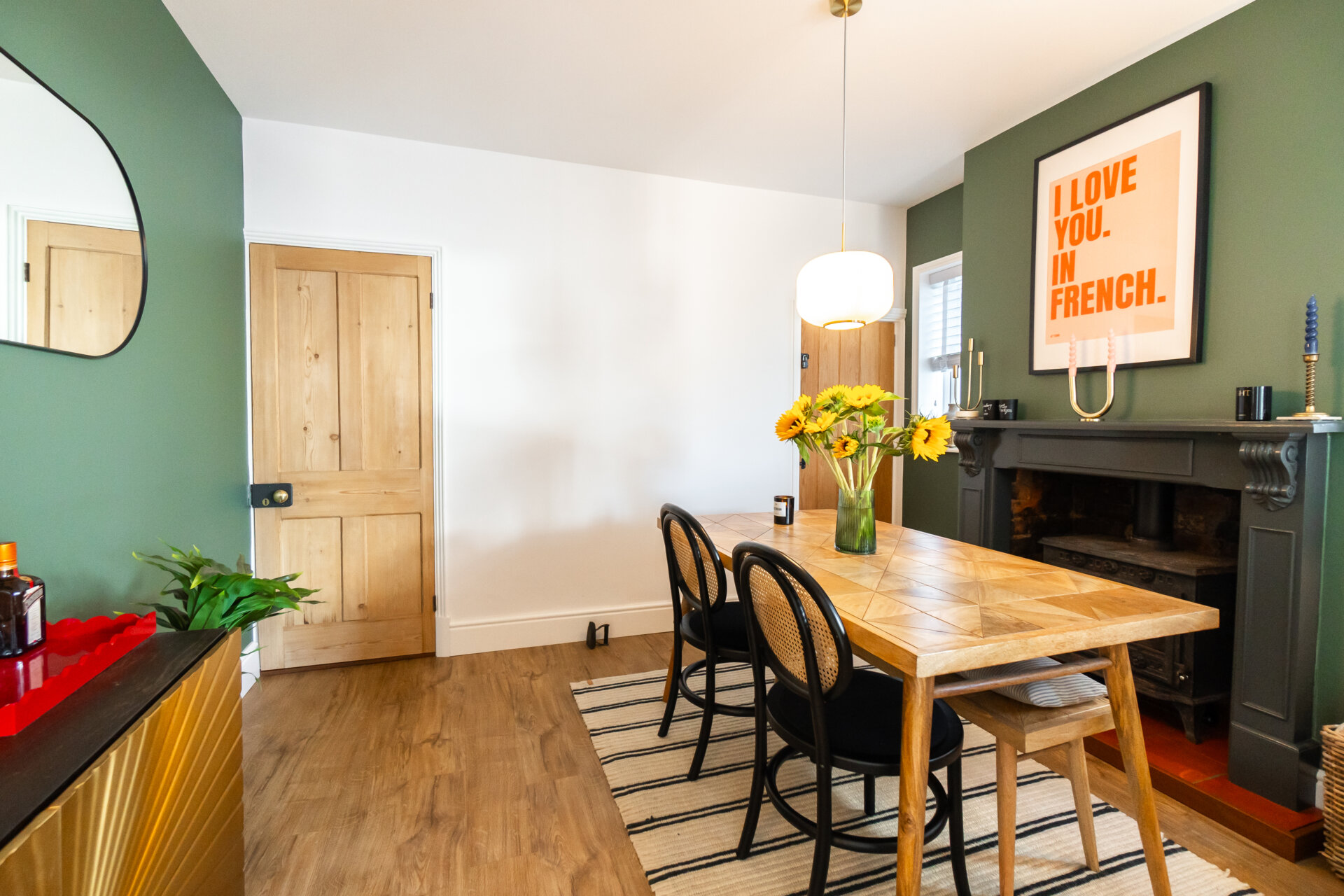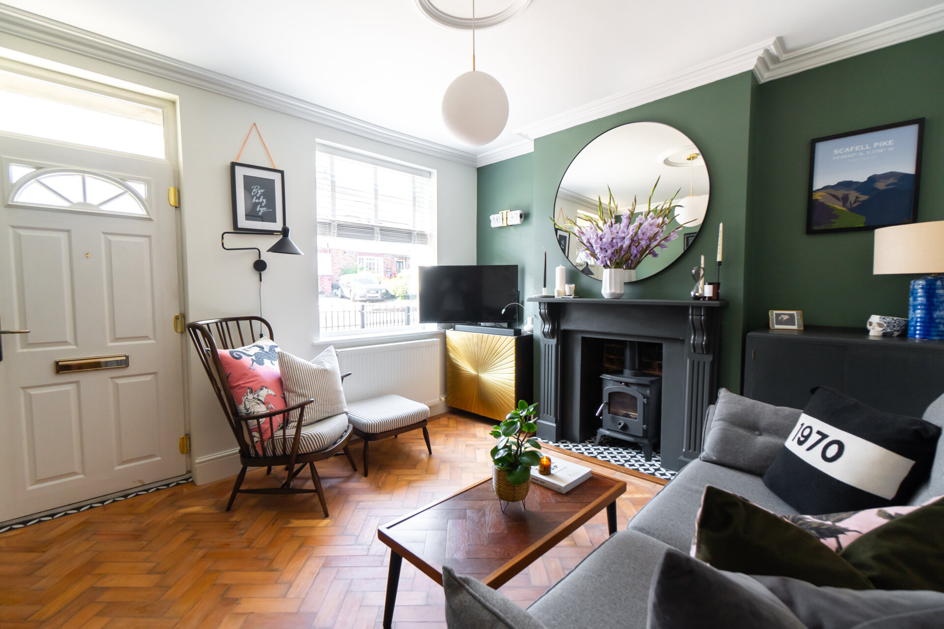 Enter into the lounge through the front door, you will find a log burner with tiled hearth and Victorian surround. There is a large window to the front elevation letting in lots of natural light and a radiator. With reclaimed wooden parquet flooring and ceiling rose this room really sets the tone for the whole house.