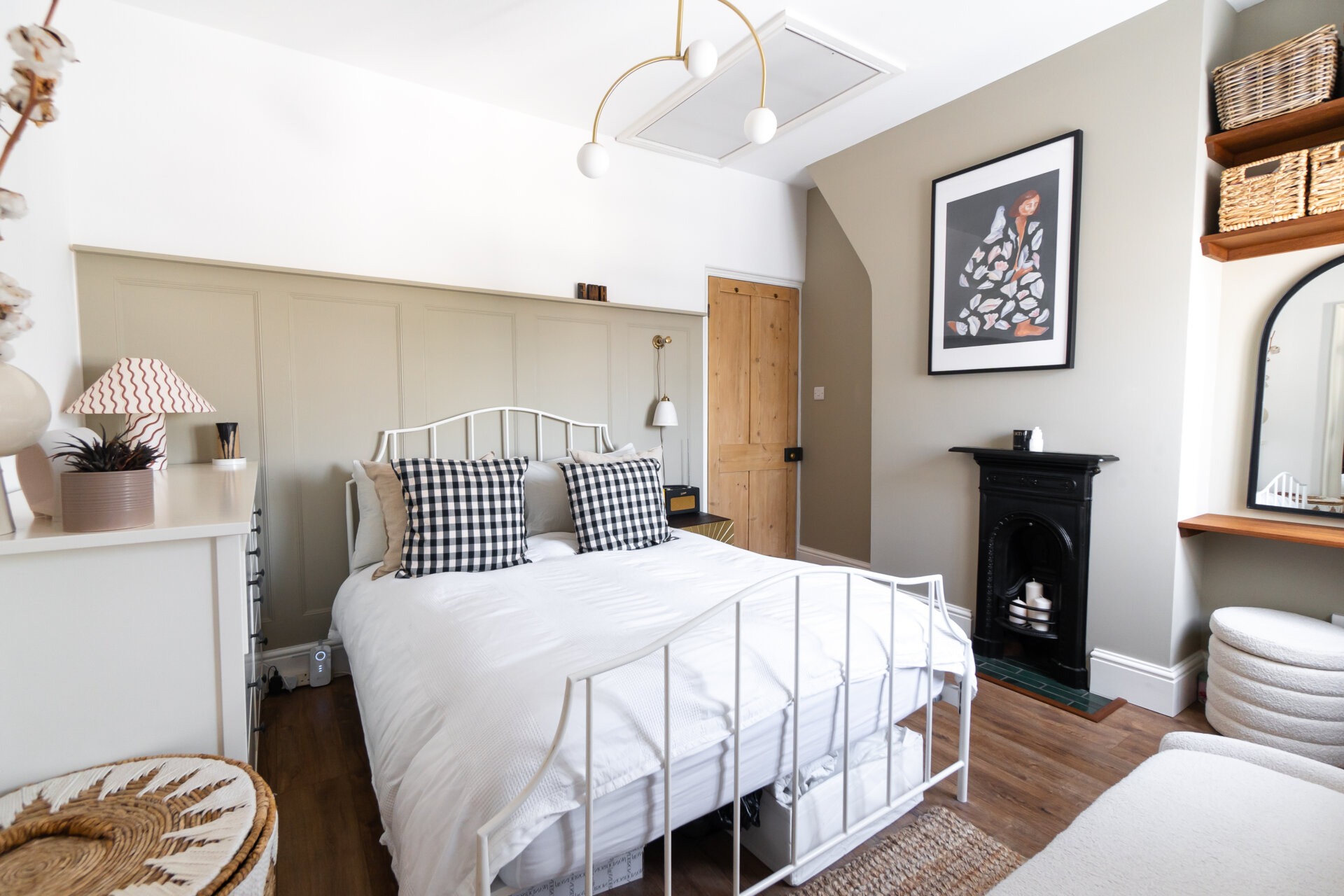 As you come up the newly carpeted stairs, turning left you enter into the main bedroom, this room benefits from an original Victorian fireplace with tiled hearth, wooden panelling, a radiator and an original restored pine door. There is a window to the front elevation.